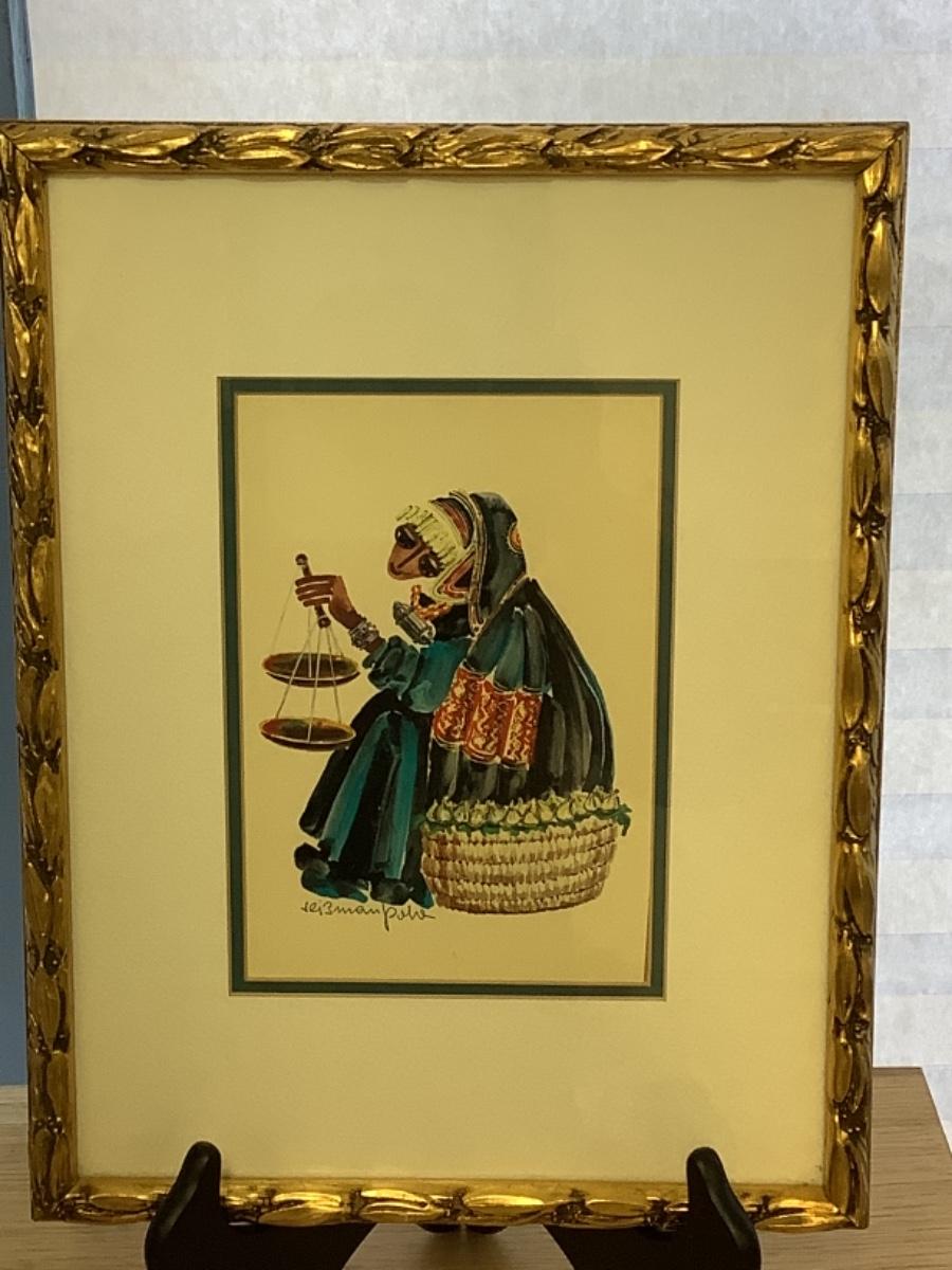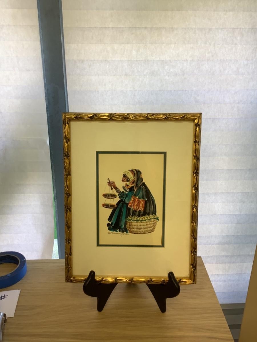 259. Gold Framed Signed Painting of a Woman on a Basket