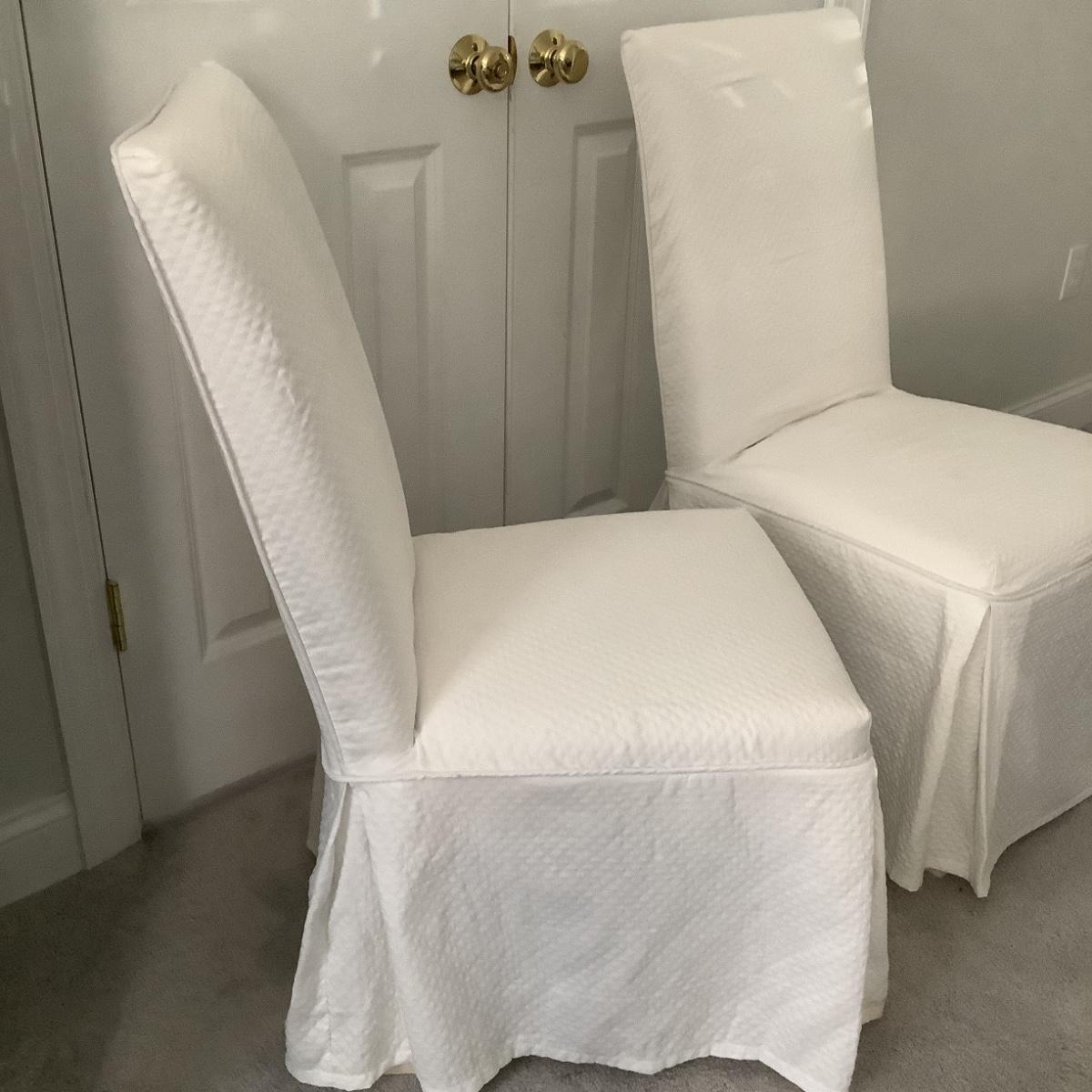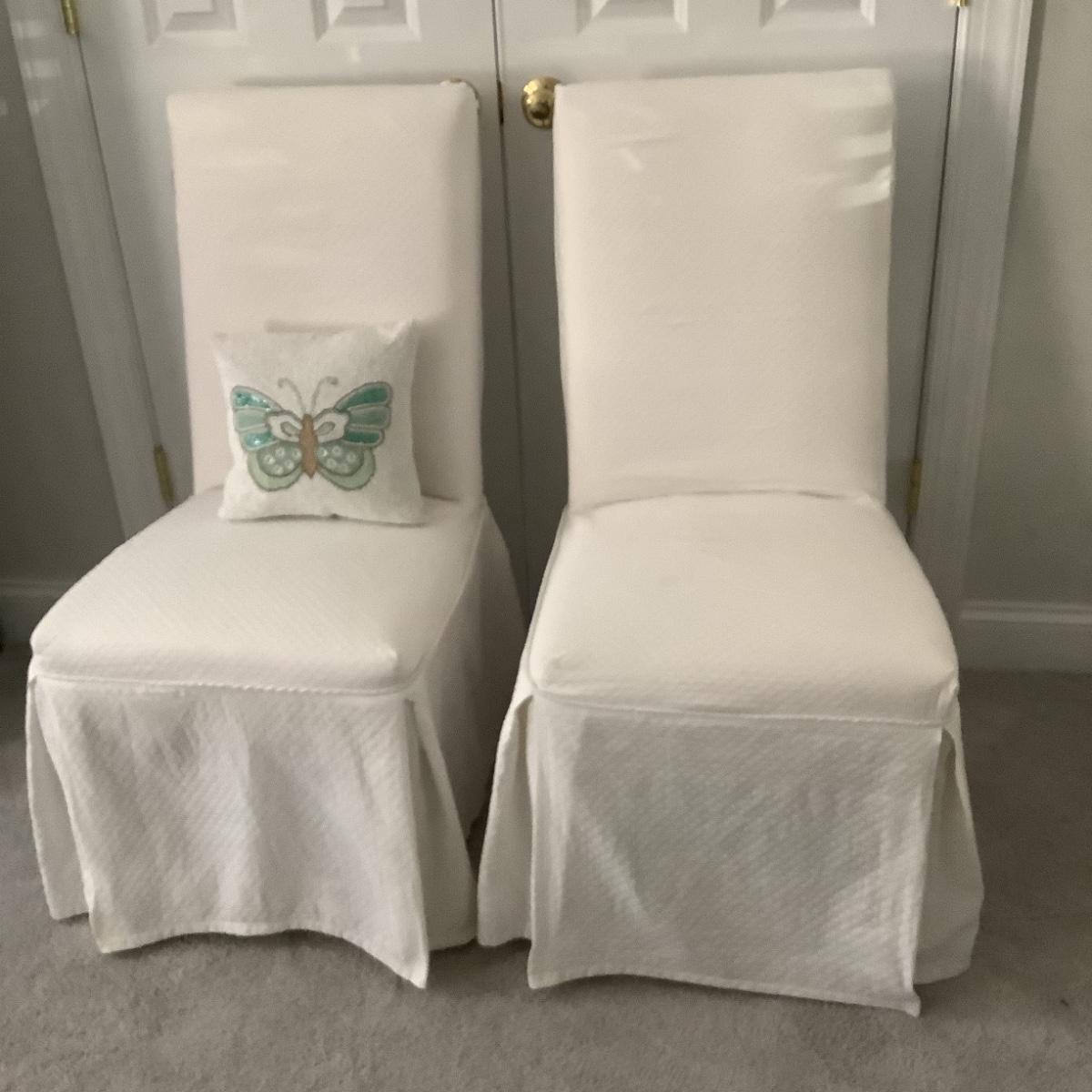 With white quilted slip covered parsons chair measuring 38"h x 18"w x 17" seat depth