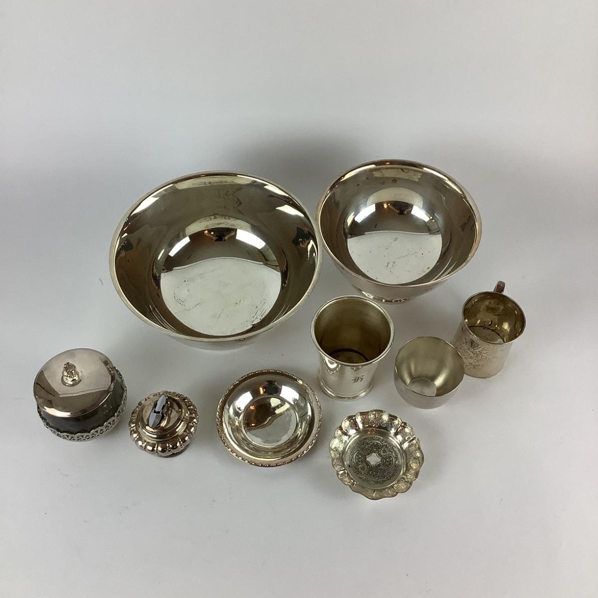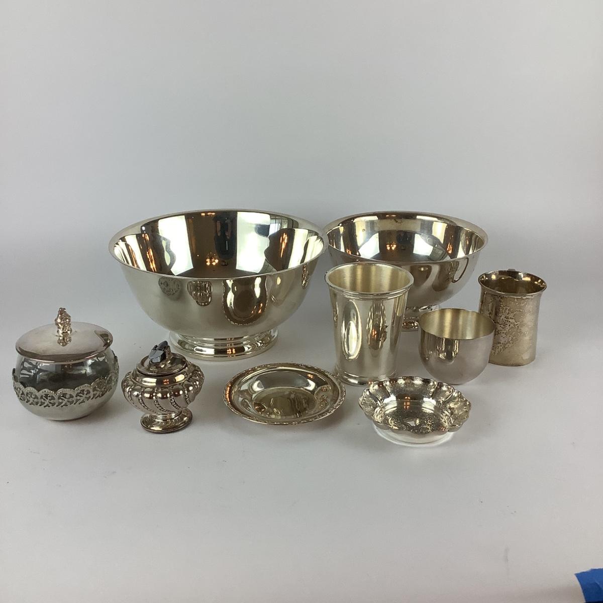 All silver plate and one silver small bowl
