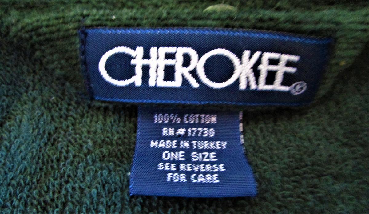 Forest Green terry cloth robe 100% cotton, Cherokee brand, NEW with tags One size fits most