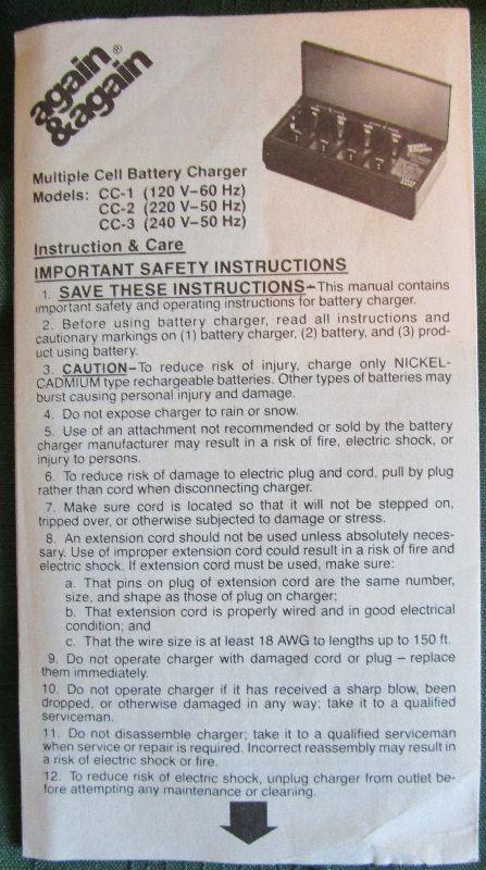 Again and Again Battery Charger with instruction manual; Looks new without box