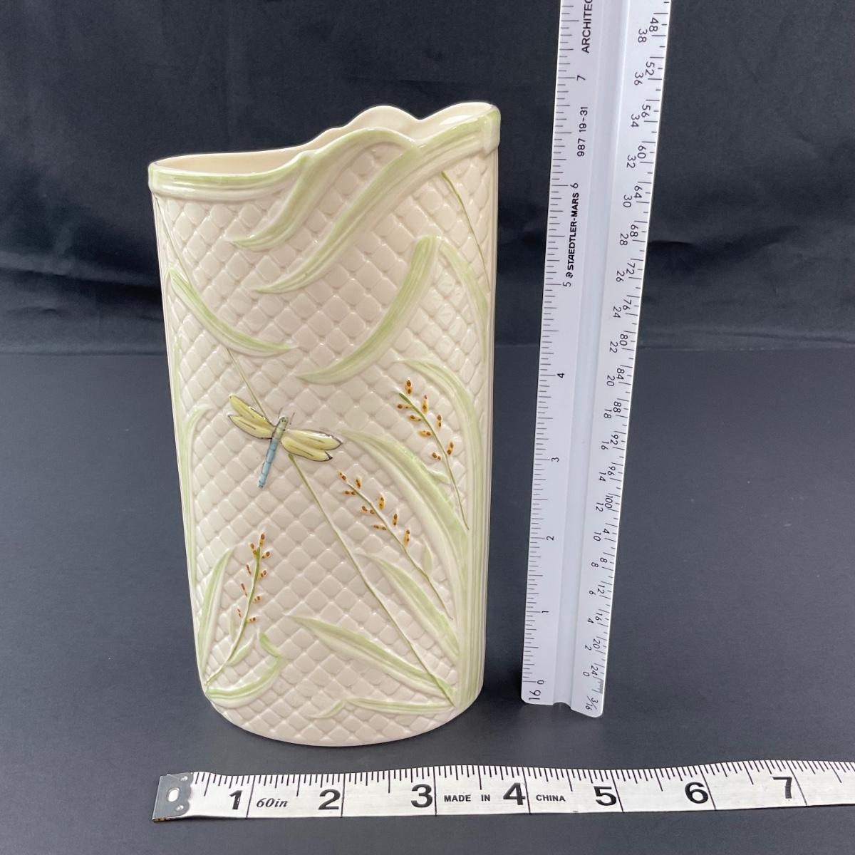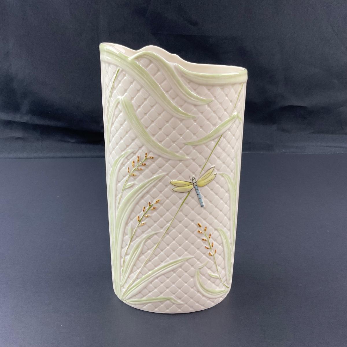 -26- BELLEEK | Pottery Dragonflies Vase | 7th Mark