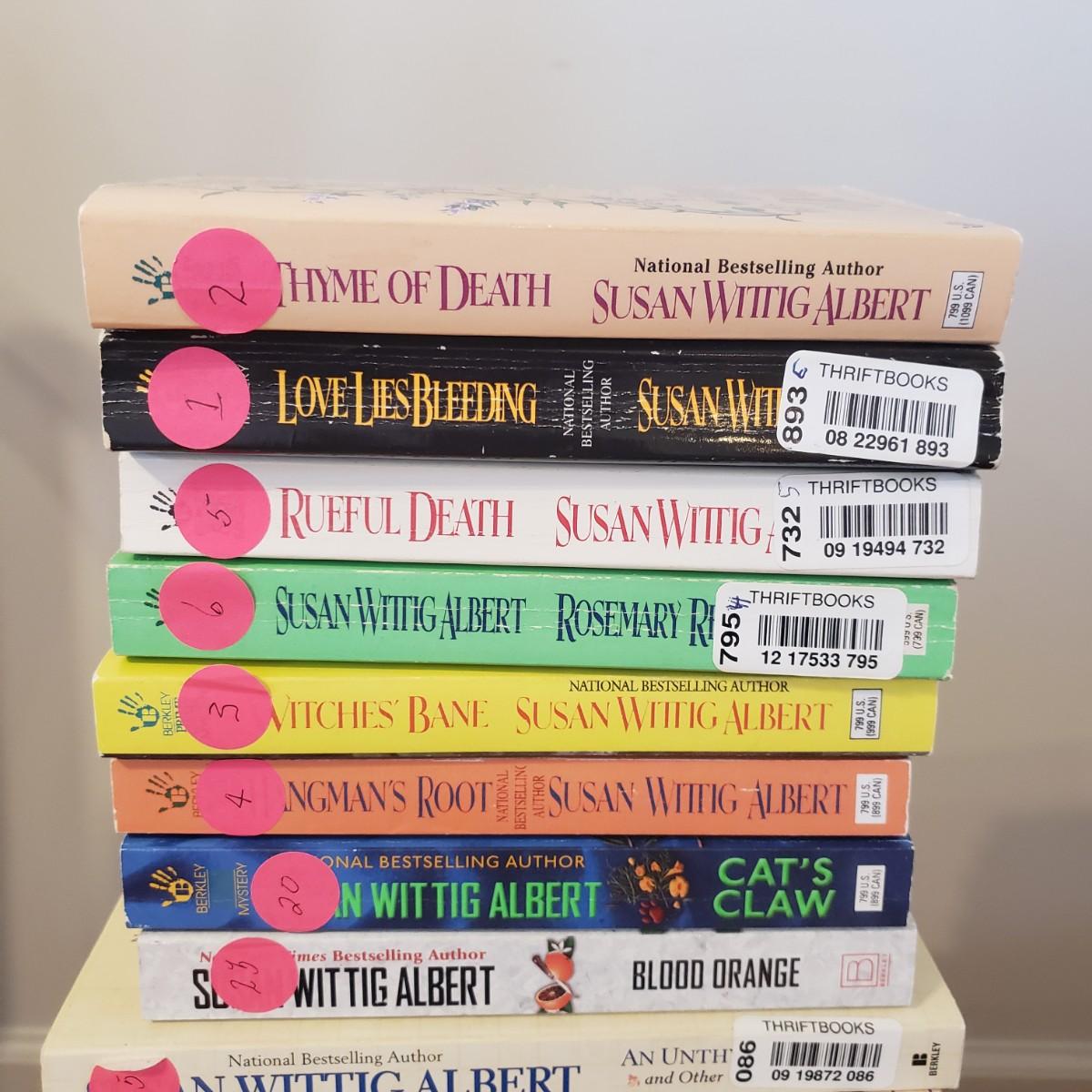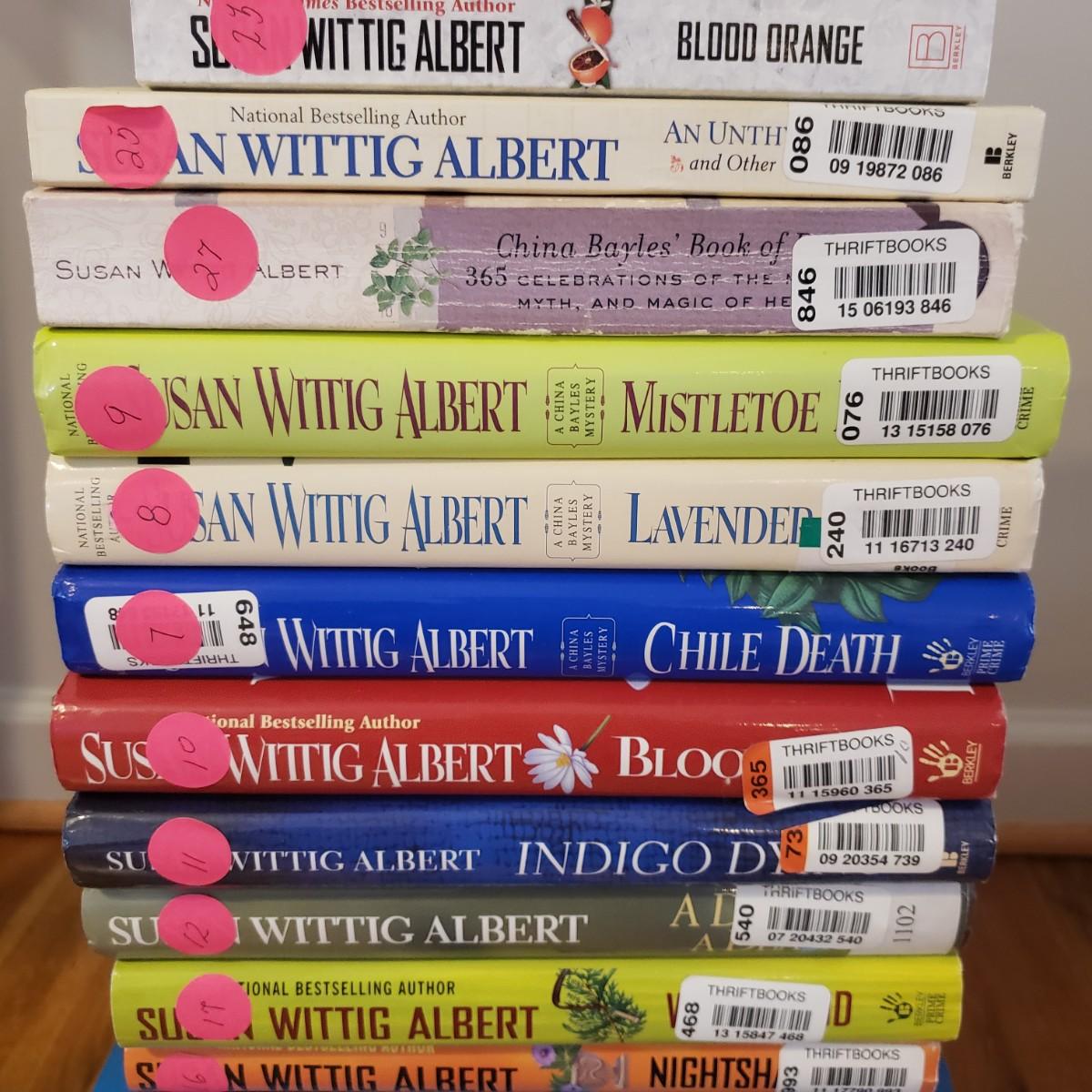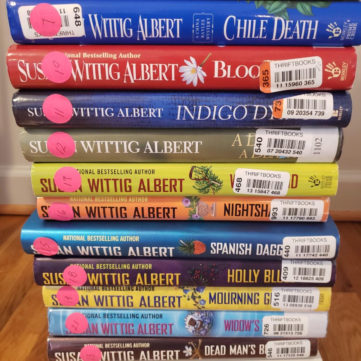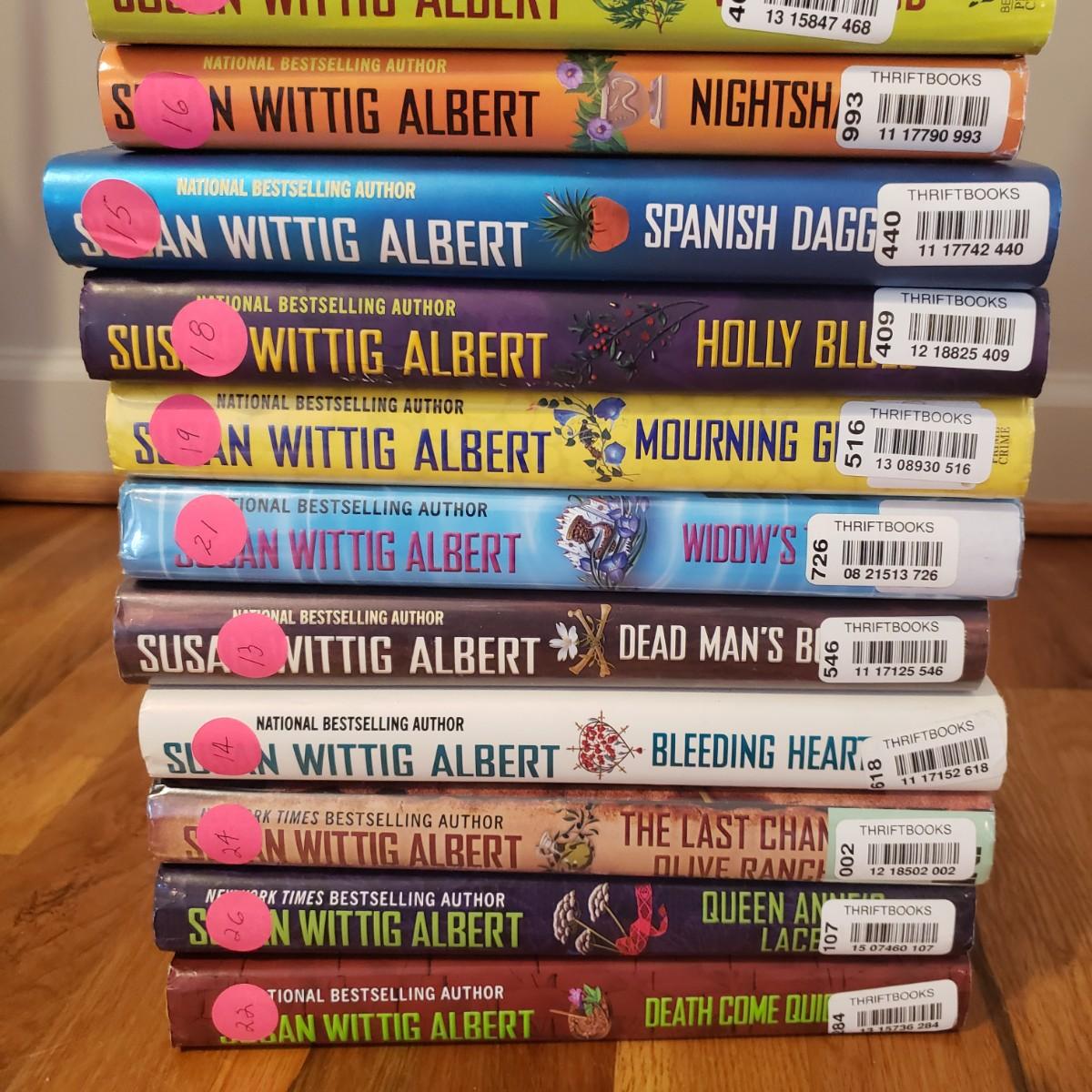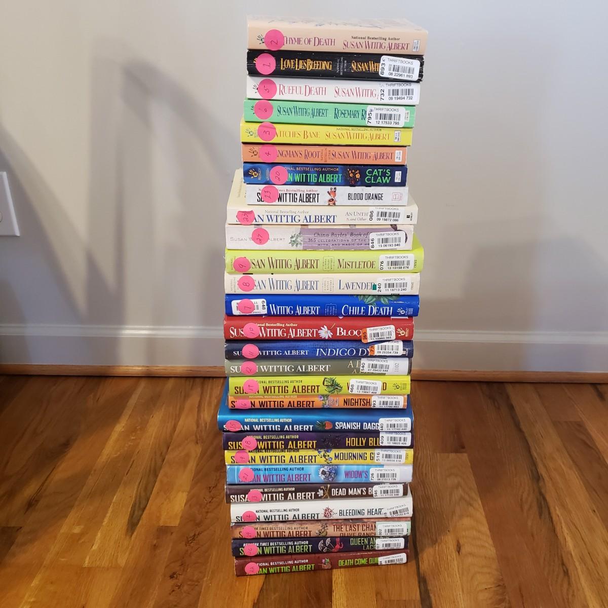 This 26 piece book lot by author Susan Wittig Albert contains nine paperback and 17 hardback books. See pictures for titles.