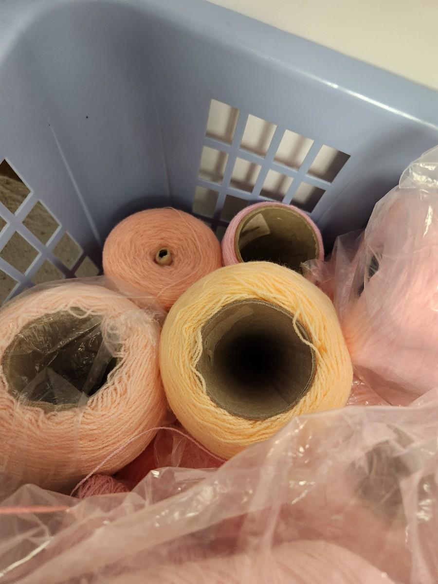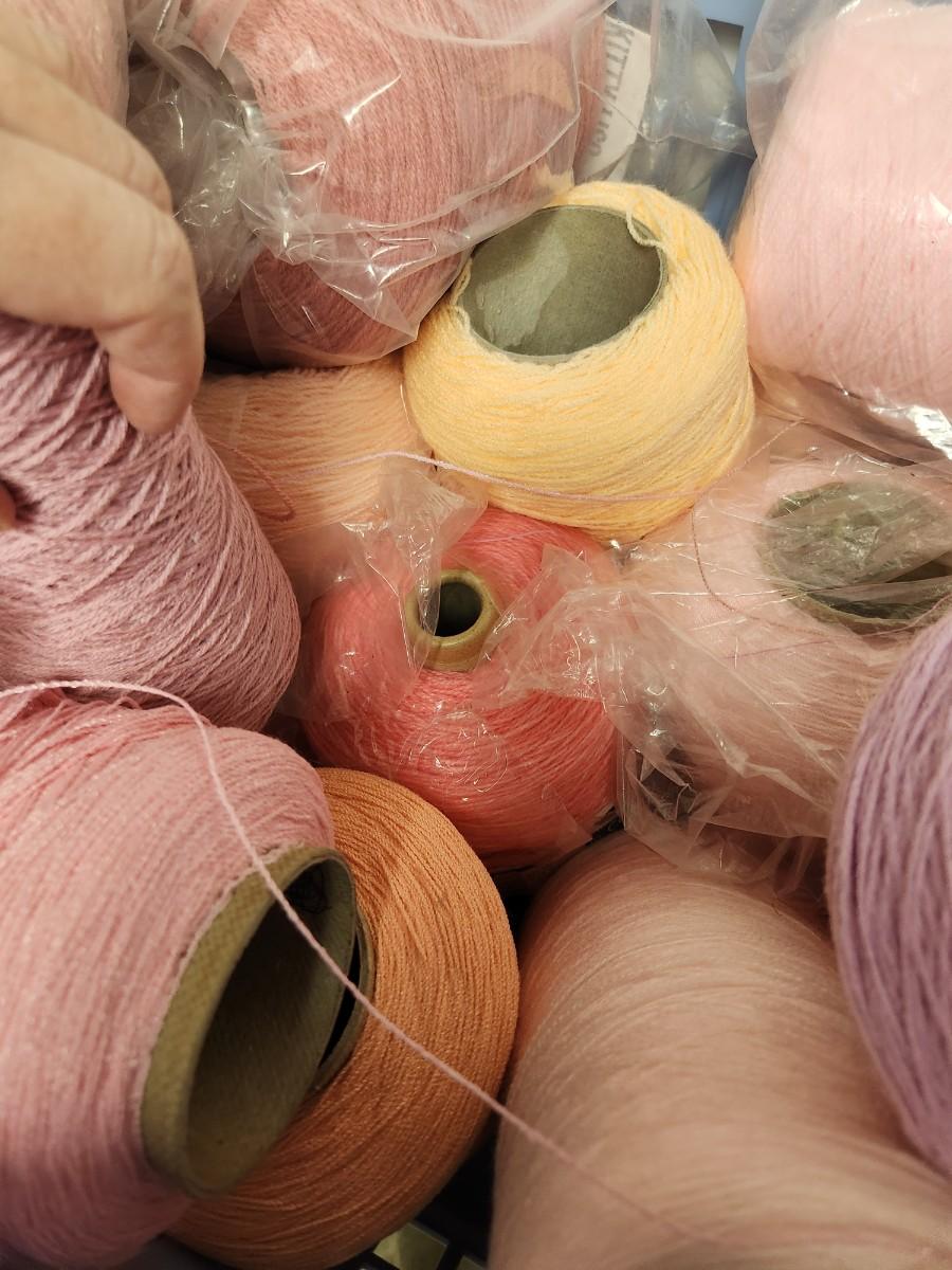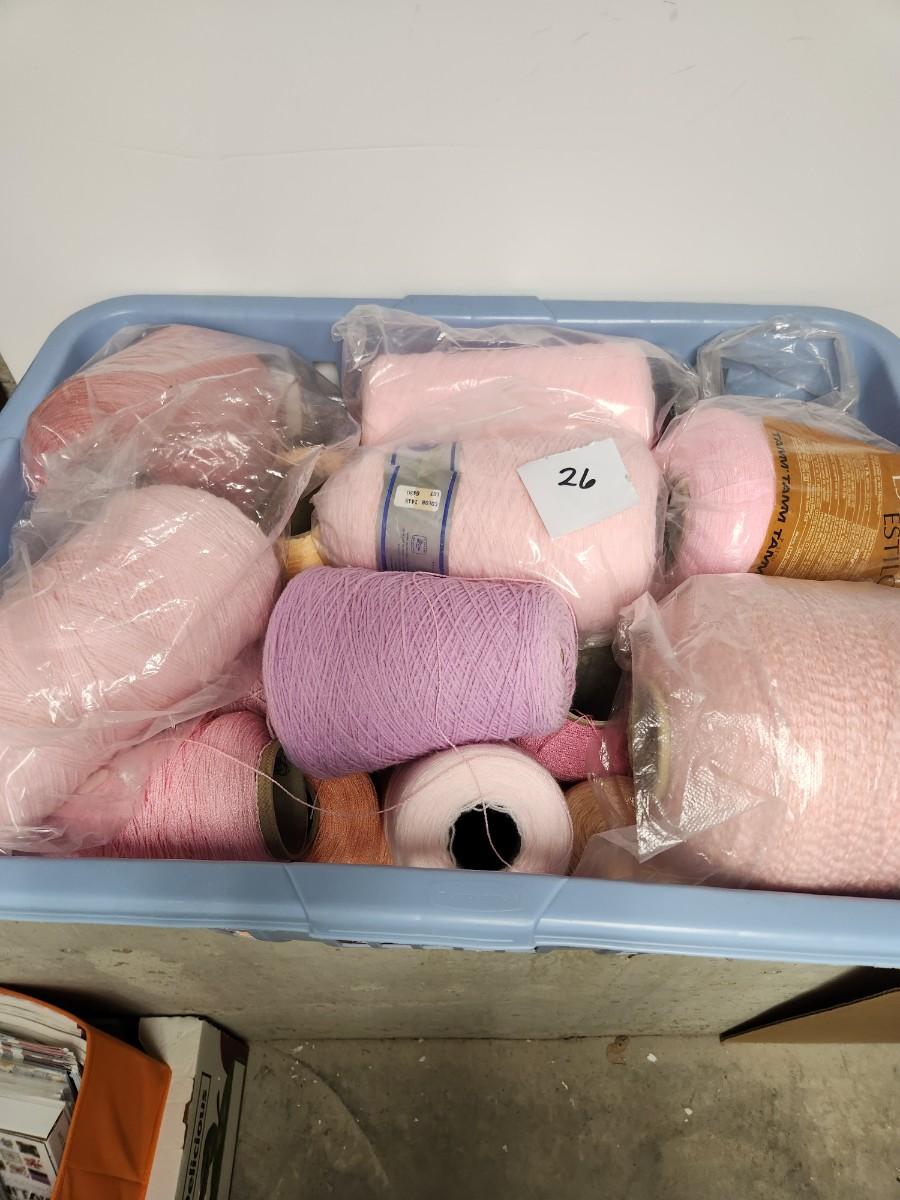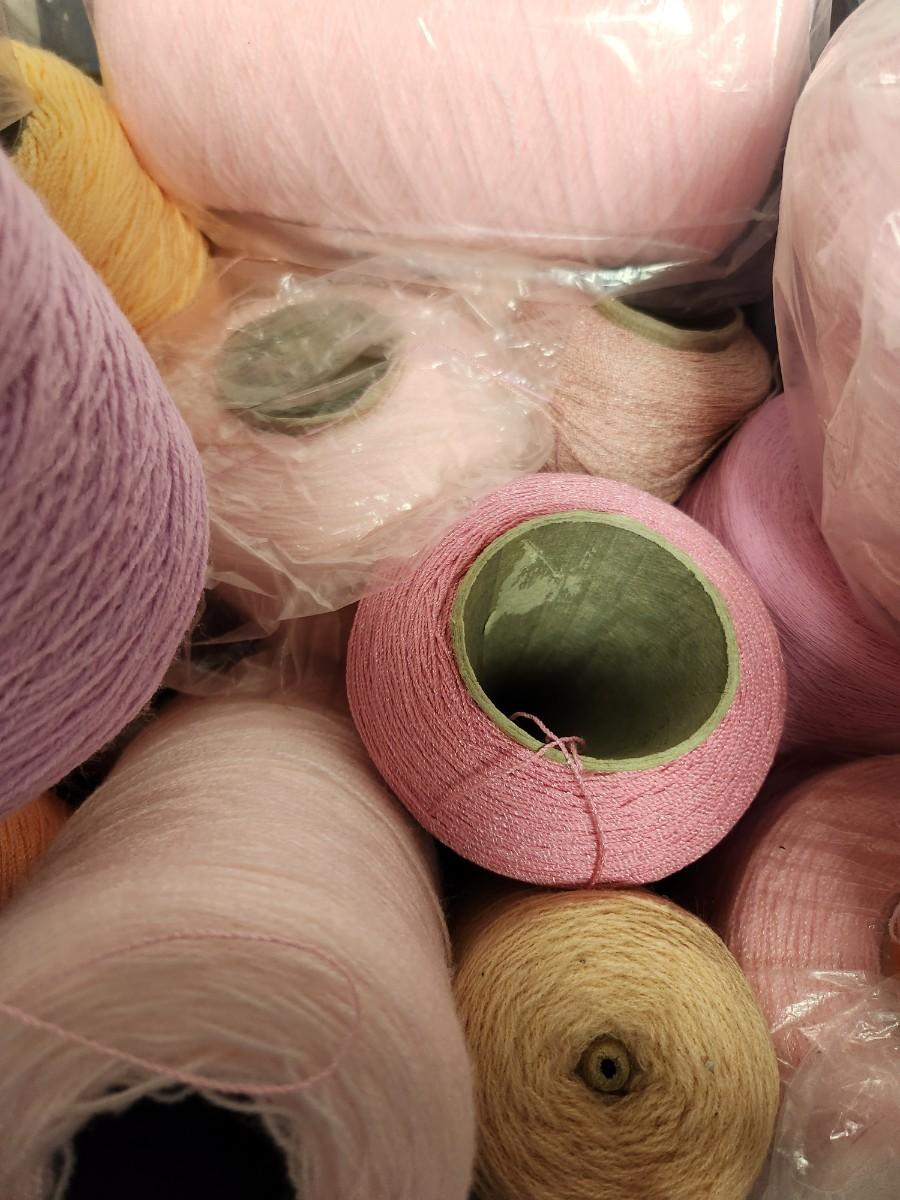 26 cones of weaving yarn in shades of pink