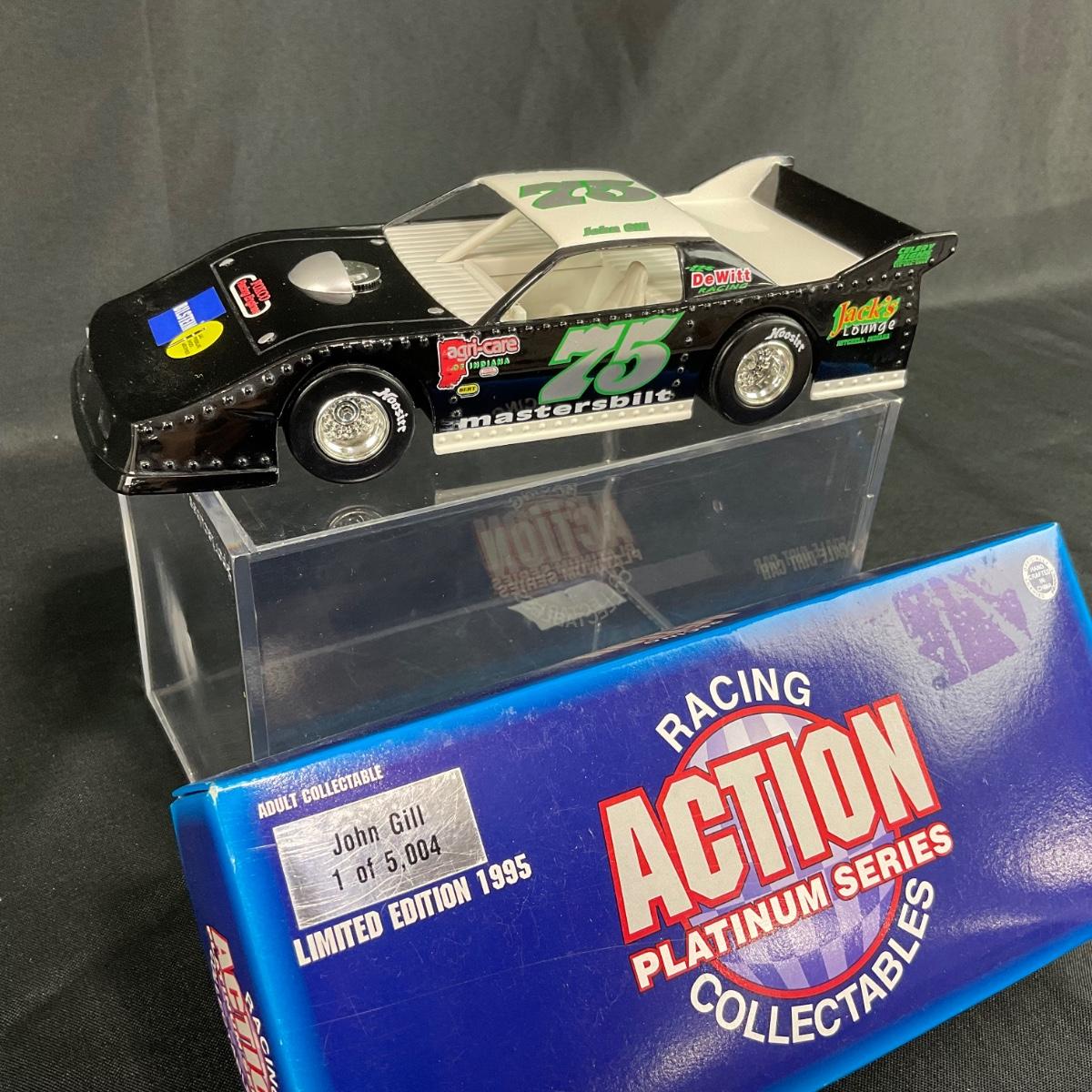 One John Gill dirt car die-cast model. Please see photos for details and condition. Any condition statement is given as a courtesy to a client, is an opinion, and should not be treated as a statement of fact. Reference to condition written, oral or within a condition report shall not be regarded as a full account of condition and may not include all defects, alterations, or restorations. Absence of a condition report does not imply a lot is flawless or lacking imperfections or damage. Katherine’s Auction & Appraisal Service shall have no responsibility for any error or omission. Returns shall not be accepted on the basis of condition. ::: Shipping is available on this lot. If you require shipping you must let us know at the close of the auction. We will coordinate with you after the item has been won. Shipping fees will include insurance up to or exceeding the value of all items being mailed. If you have any questions regarding this lot please contact the auctioneer either via this website, by direct email or by phone. PICK UP TIMES and other important information can be found in the TERMS and DESCRIPTION of the auction. Please take a look for pertinent information. Thanks!