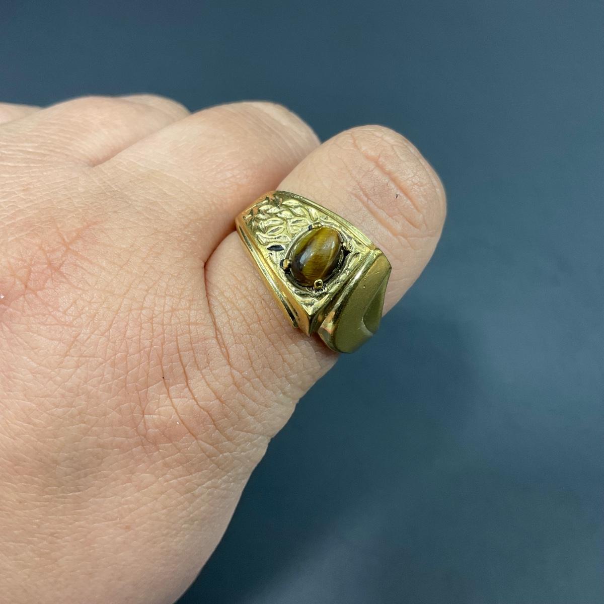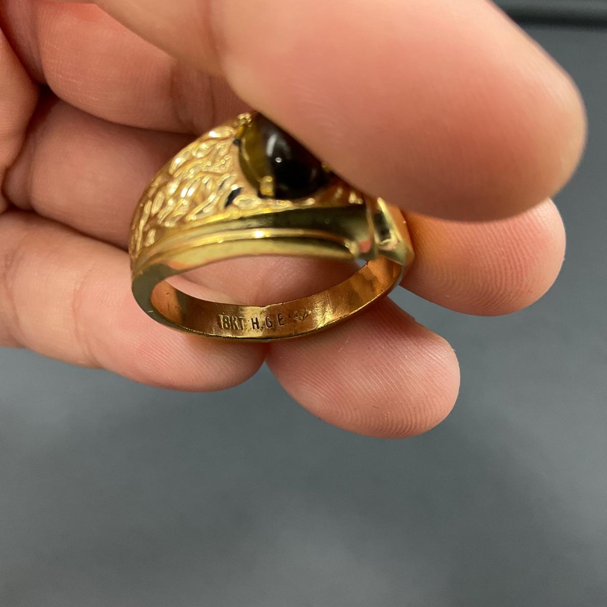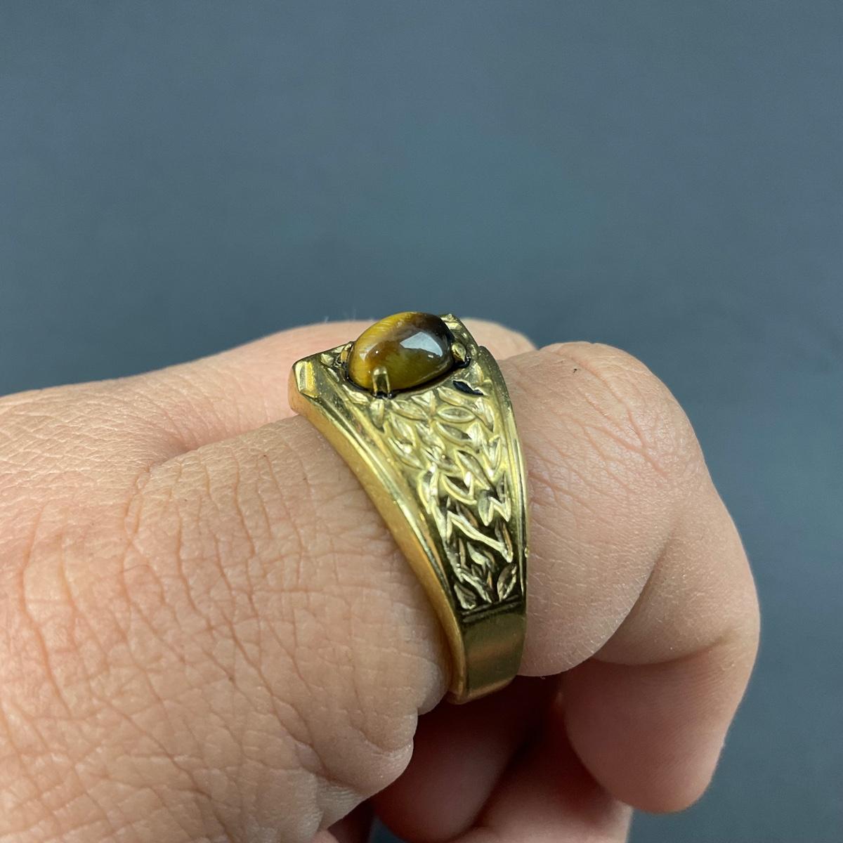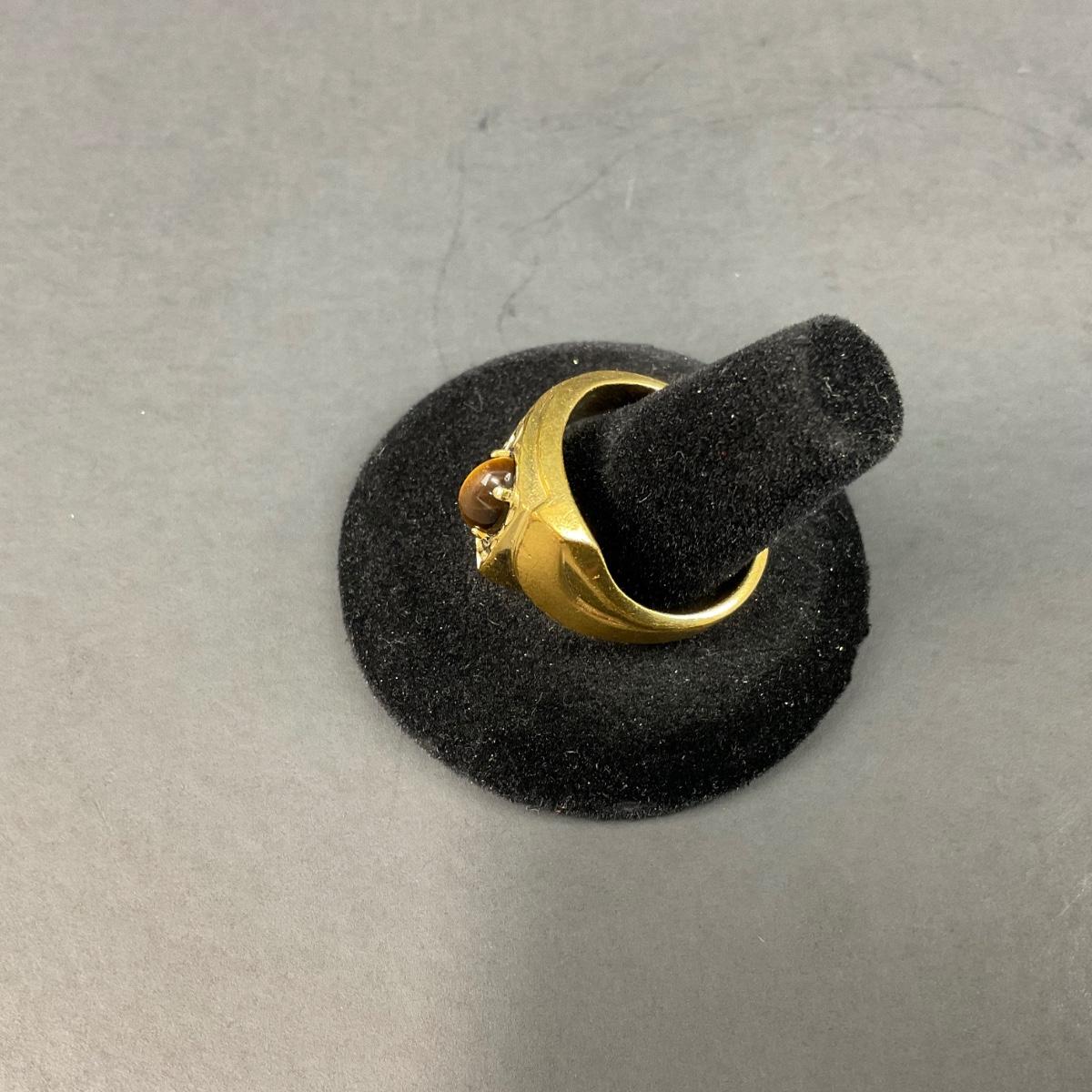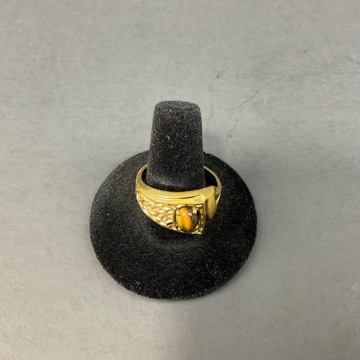 One vintage men’s ring size 11.5. Ring is marked 18KT HGE with what I believe to be a tigers eye stone. This piece does have some scuffs, scratches, marks, or slight damage, but otherwise appears to be in great shape. Please see photos for details and condition. Any condition statement is given as a courtesy to a client, is an opinion, and should not be treated as a statement of fact. Reference to condition written, oral or within a condition report shall not be regarded as a full account of condition and may not include all defects, alterations, or restorations. Absence of a condition report does not imply a lot is flawless or lacking imperfections or damage. Katherine’s Auction & Appraisal Service shall have no responsibility for any error or omission. Returns shall not be accepted on the basis of condition. ::: Shipping is available on this lot. If you require shipping you must let us know at the close of the auction. We will coordinate with you after the item has been won. Shipping fees will include insurance up to or exceeding the value of all items being mailed. If you have any questions regarding this lot please contact the auctioneer either via this website, by direct email or by phone. PICK UP TIMES and other important information can be found in the TERMS and DESCRIPTION of the auction. Please take a look for pertinent information. Thanks!