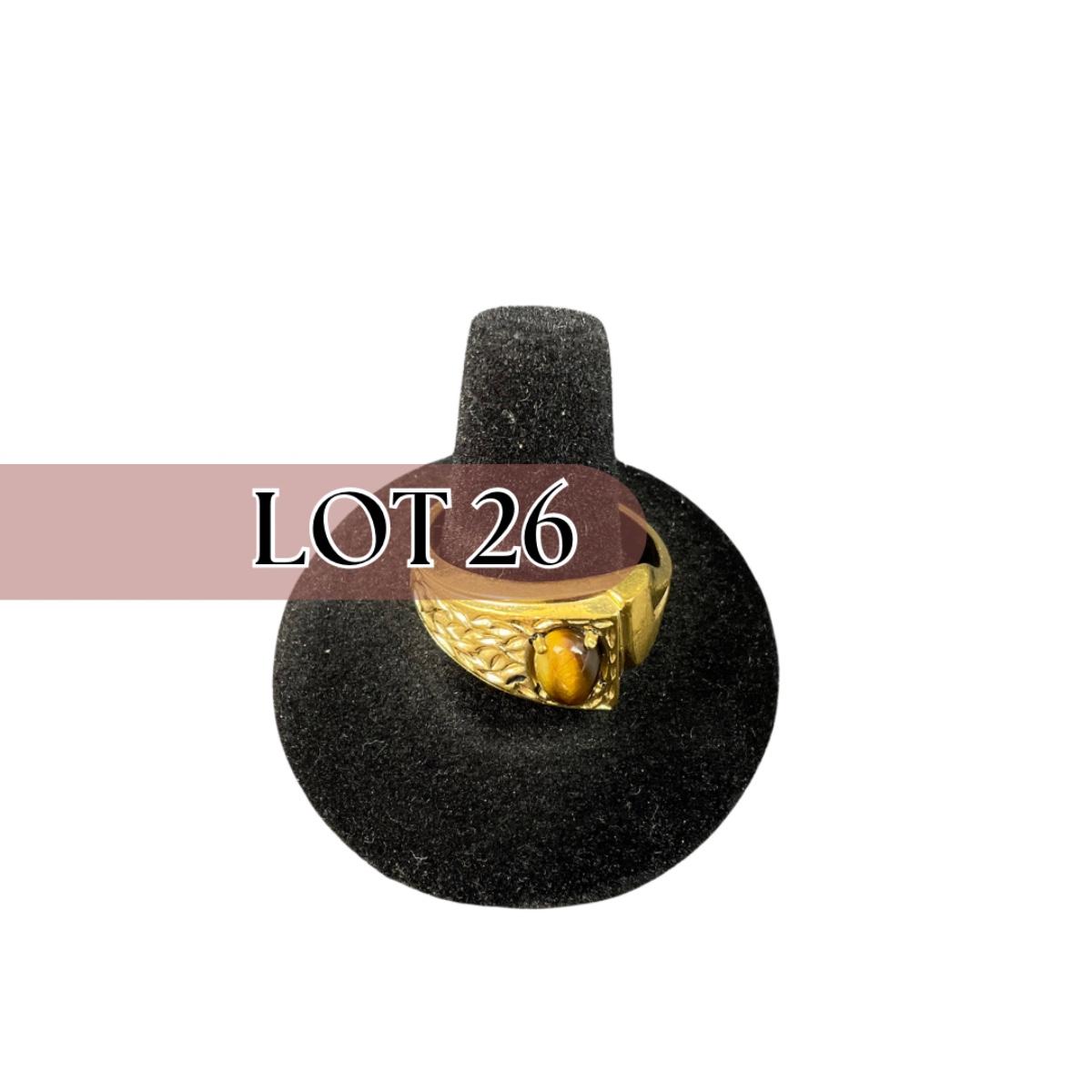 -26- FINE JEWELRY | 18KT HGE Men’s Ring | Tigers Eye Stone