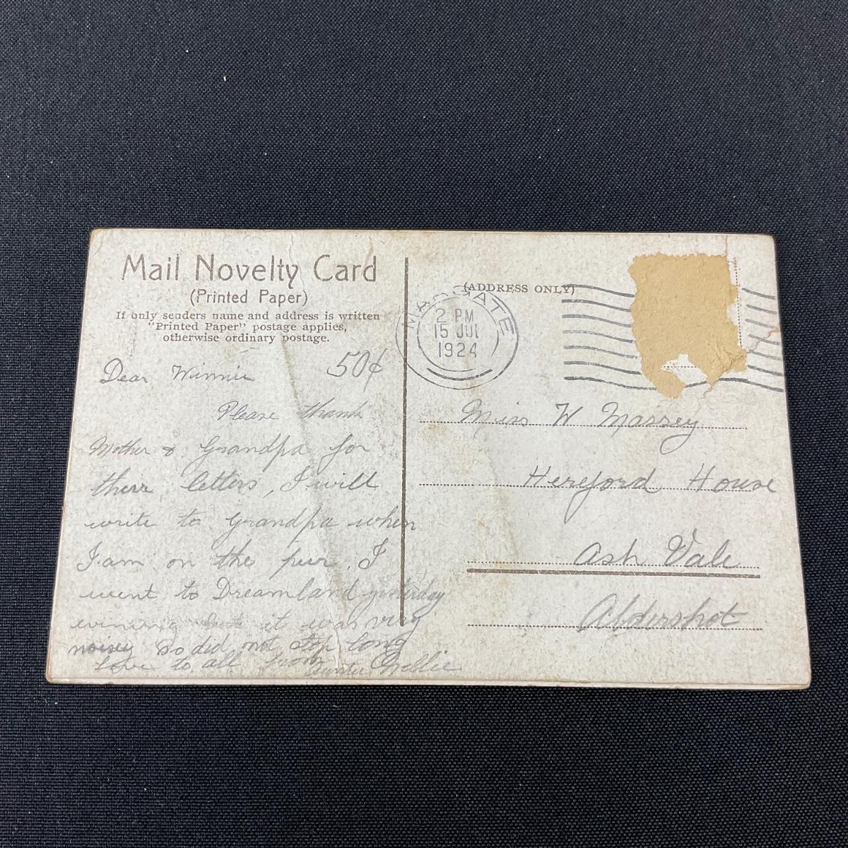 One vintage 1924 interactive “Dozen of the best natives of Margale Pinoto postcard does have some damage on the back of the postcard where it appears a stamp was taken off otherwise appears to be in great shape. Please see photos for details and condition. Any condition statement is given as a courtesy to a client, is an opinion, and should not be treated as a statement of fact. Reference to condition written, oral or within a condition report shall not be regarded as a full account of condition and may not include all defects, alterations, or restorations. Absence of a condition report does not imply a lot is flawless or lacking imperfections or damage. Katherine’s Auction & Appraisal Service shall have no responsibility for any error or omission. Returns shall not be accepted on the basis of condition. ::: Shipping is available on this lot. If you require shipping you must let us know at the close of the auction. We will coordinate with you after the item has been won. Shipping fees will include insurance up to or exceeding the value of all items being mailed. If you have any questions regarding this lot please contact the auctioneer either via this website, by direct email or by phone. PICK UP TIMES and other important information can be found in the TERMS and DESCRIPTION of the auction. Please take a look for pertinent information. Thanks!