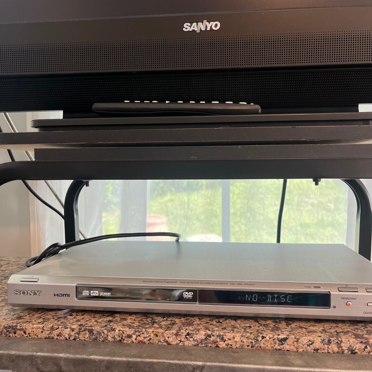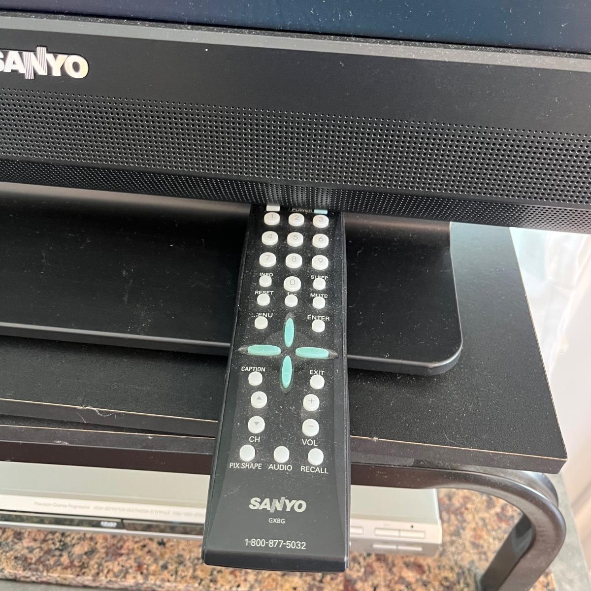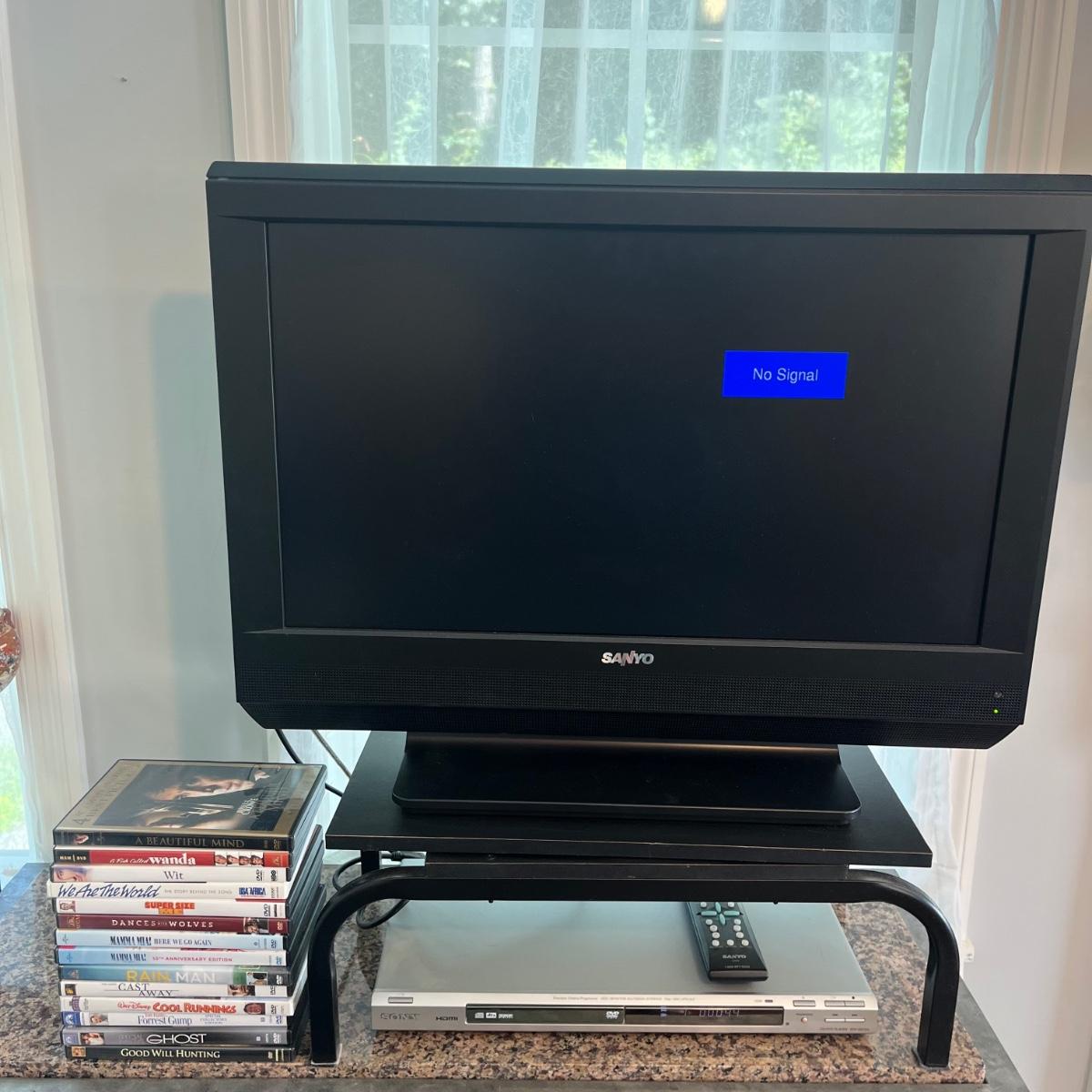 26” Sanyo TV w/ Stand, Sony DVD Player, & DVDs (LR-MG)