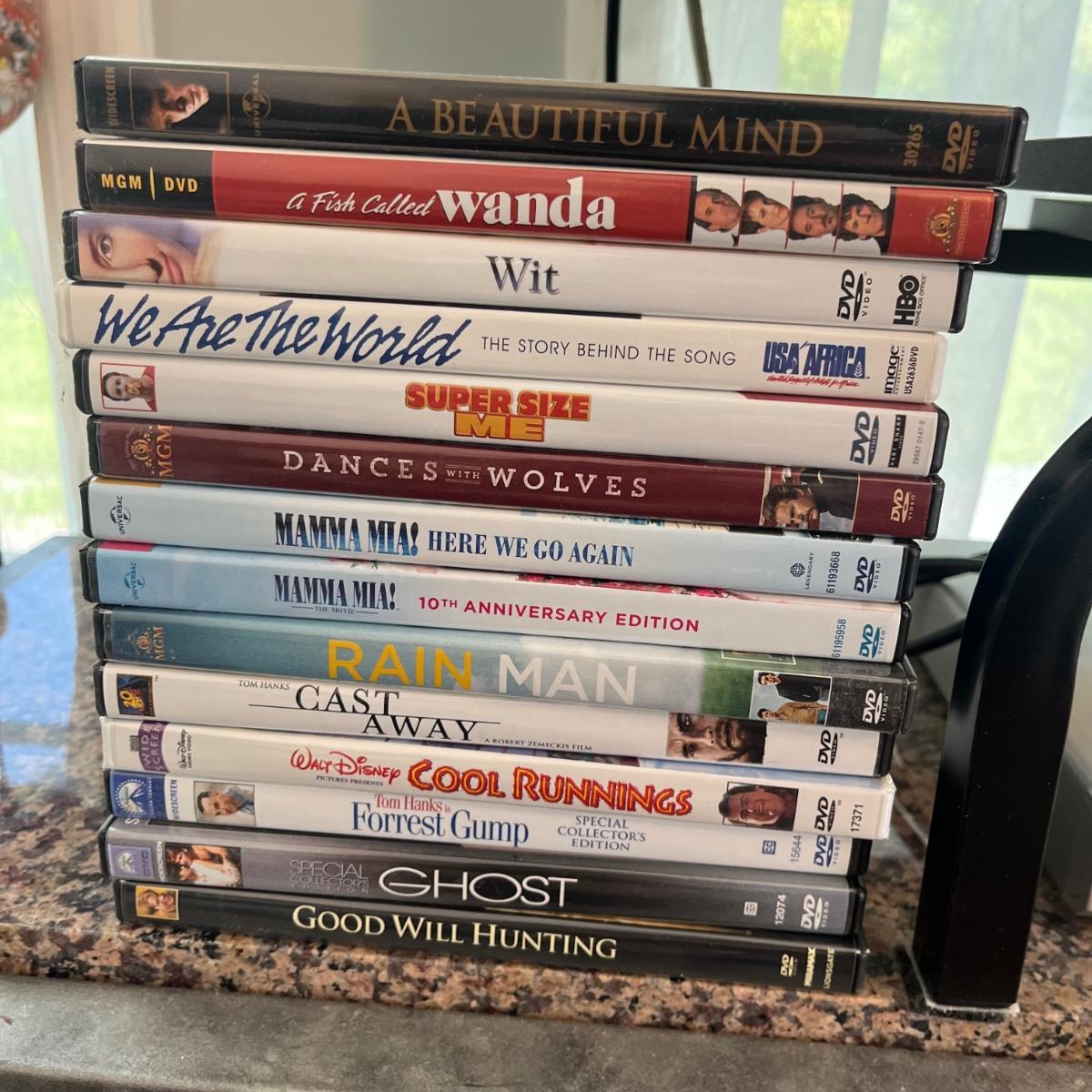 Lot includes a 26” Sanyo TV, Sony DVD player, swivel tv stand and a selection of classic movies on DVD. TV and DVD player both powered on when plugged in.