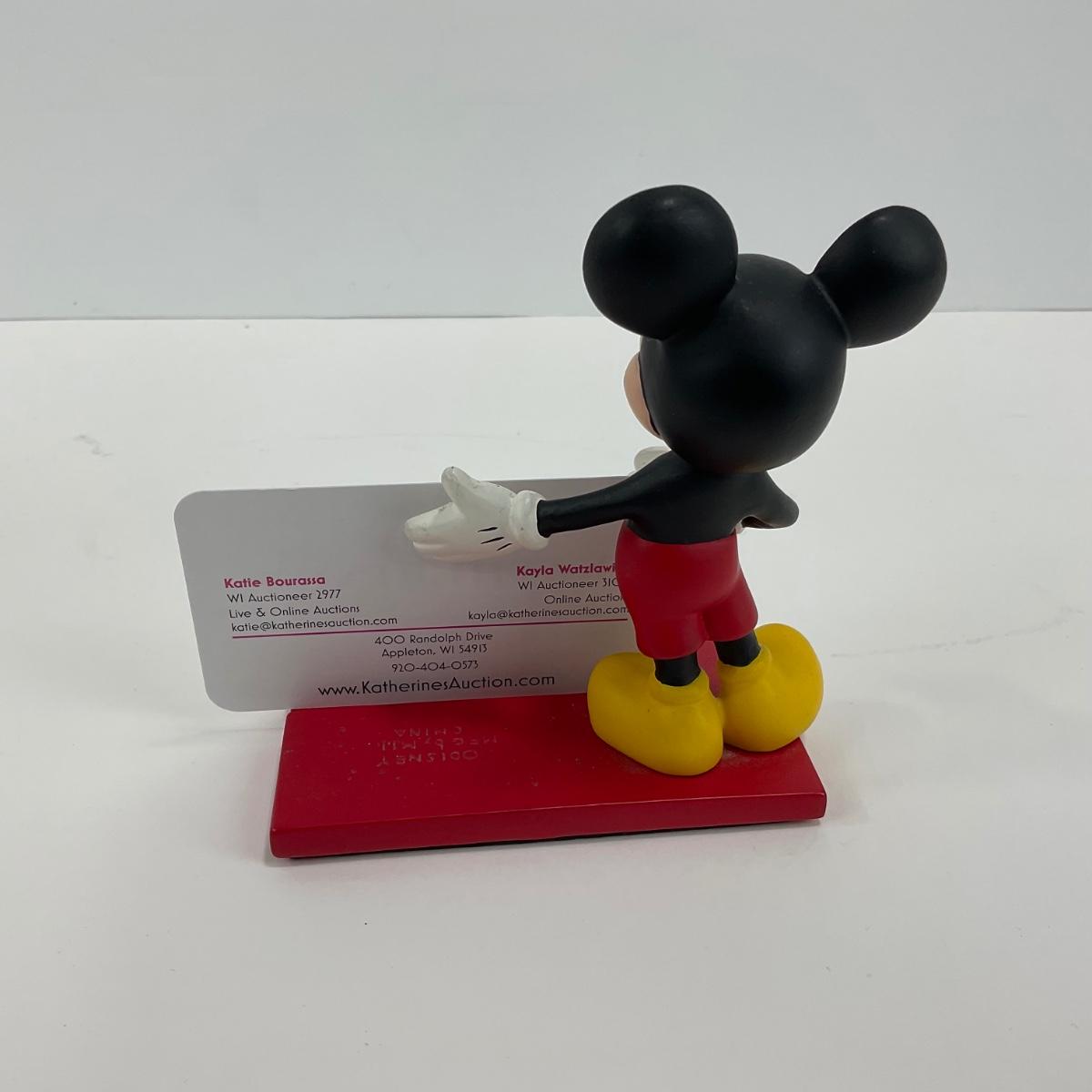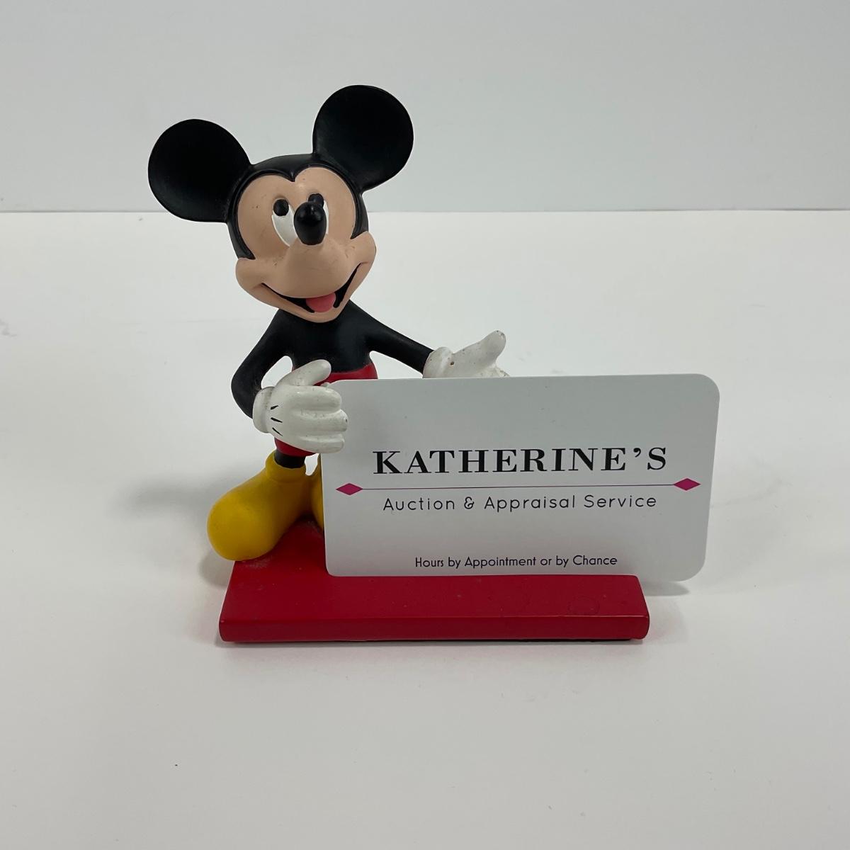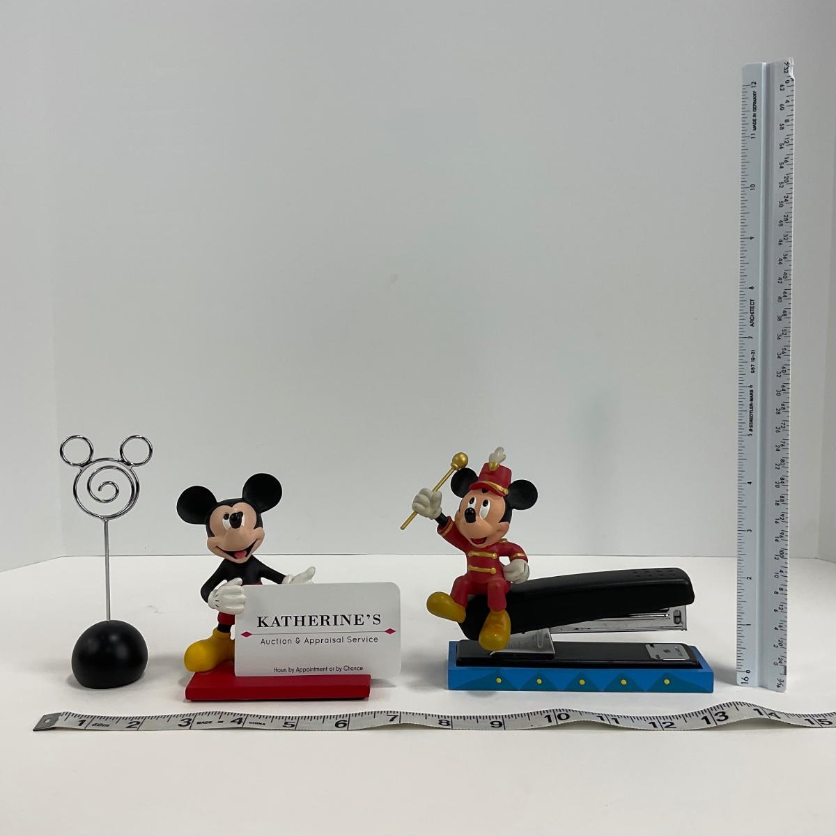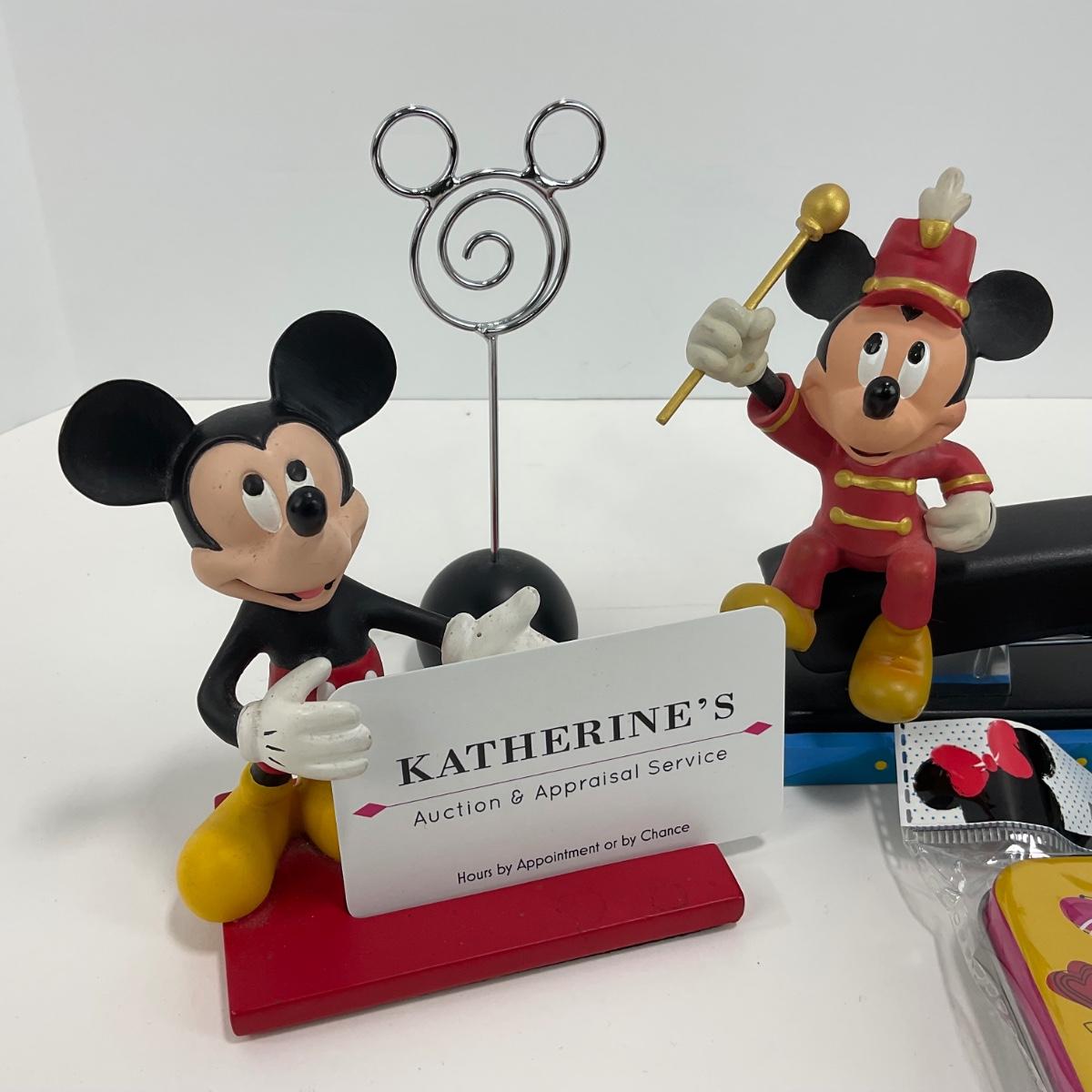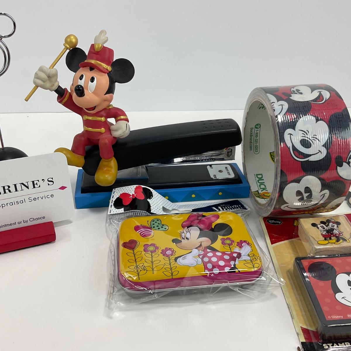 Nine pieces of Mickey Mouse desk/stationary items. Including a business card holder, stapler, duck tape, cotton swab tin, stamps, patch, button, stickers, and photo holder. Please see photos for details and condition. Any condition statement is given as a courtesy to a client, is an opinion, and should not be treated as a statement of fact. Reference to condition written, oral or within a condition report shall not be regarded as a full account of condition and may not include all defects, alterations, or restorations. Absence of a condition report does not imply a lot is flawless or lacking imperfections or damage. Katherine’s Auction & Appraisal Service shall have no responsibility for any error or omission. Returns shall not be accepted on the basis of condition. ::: Shipping is available on this lot. If you require shipping you must let us know at the close of the auction. We will coordinate with you after the item has been won. Shipping fees will include insurance up to or exceeding the value of all items being mailed. If you have any questions regarding this lot please contact the auctioneer either via this website, by direct email or by phone. PICK UP TIMES and other important information can be found in the TERMS and DESCRIPTION of the auction. Please take a look for pertinent information. Thanks!