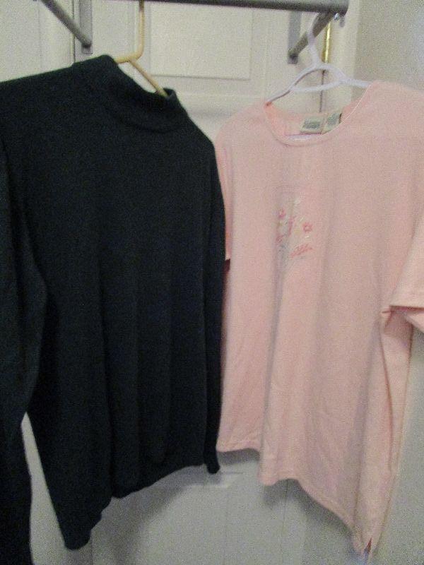 Willow Bay Dark green sweater long sleeve, Classic Elements pink short sleeve t-shirt, both in excellent condition