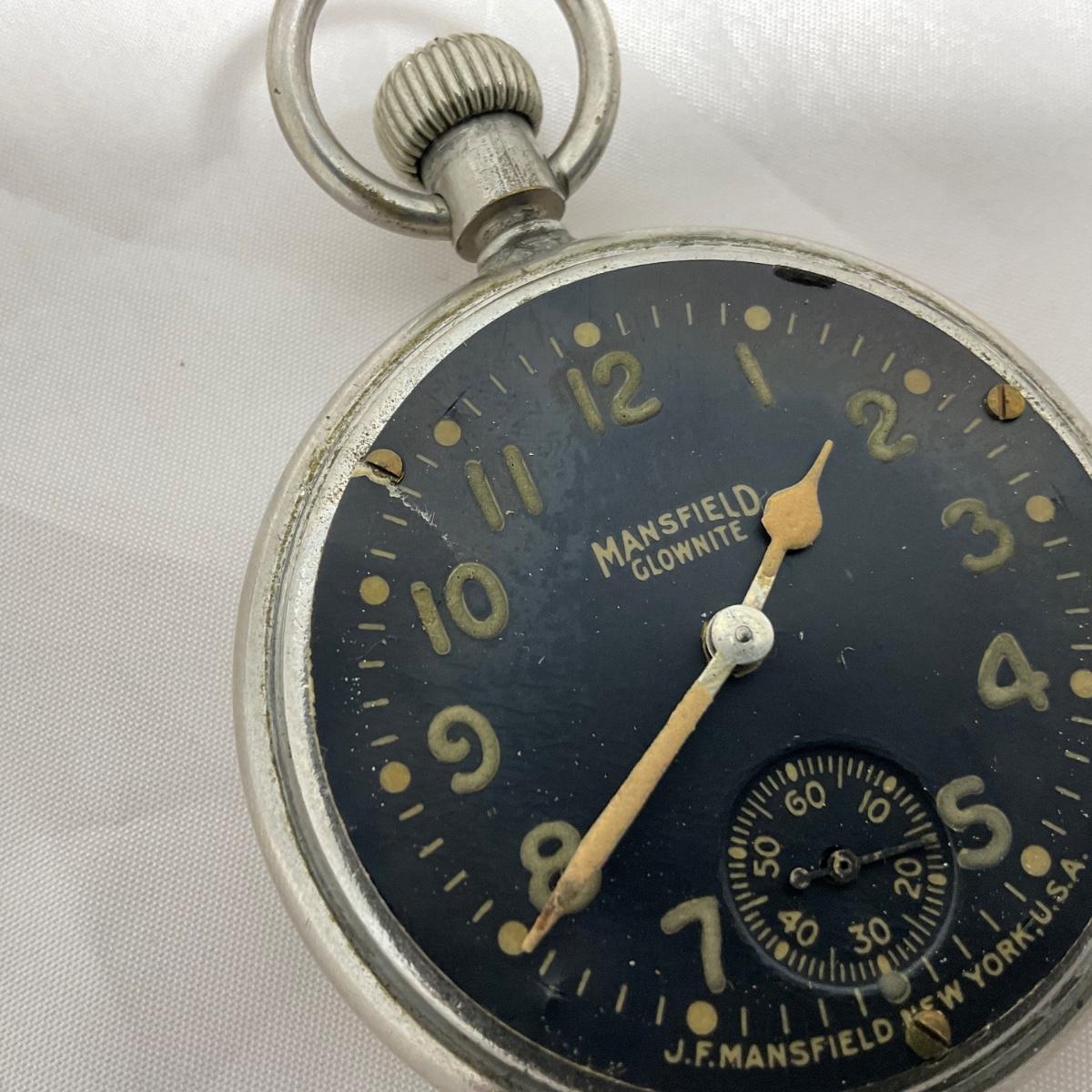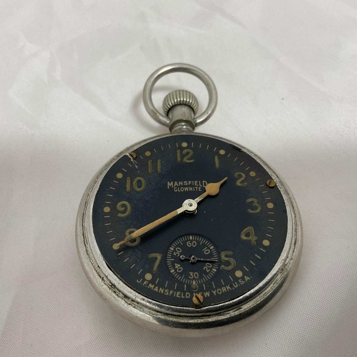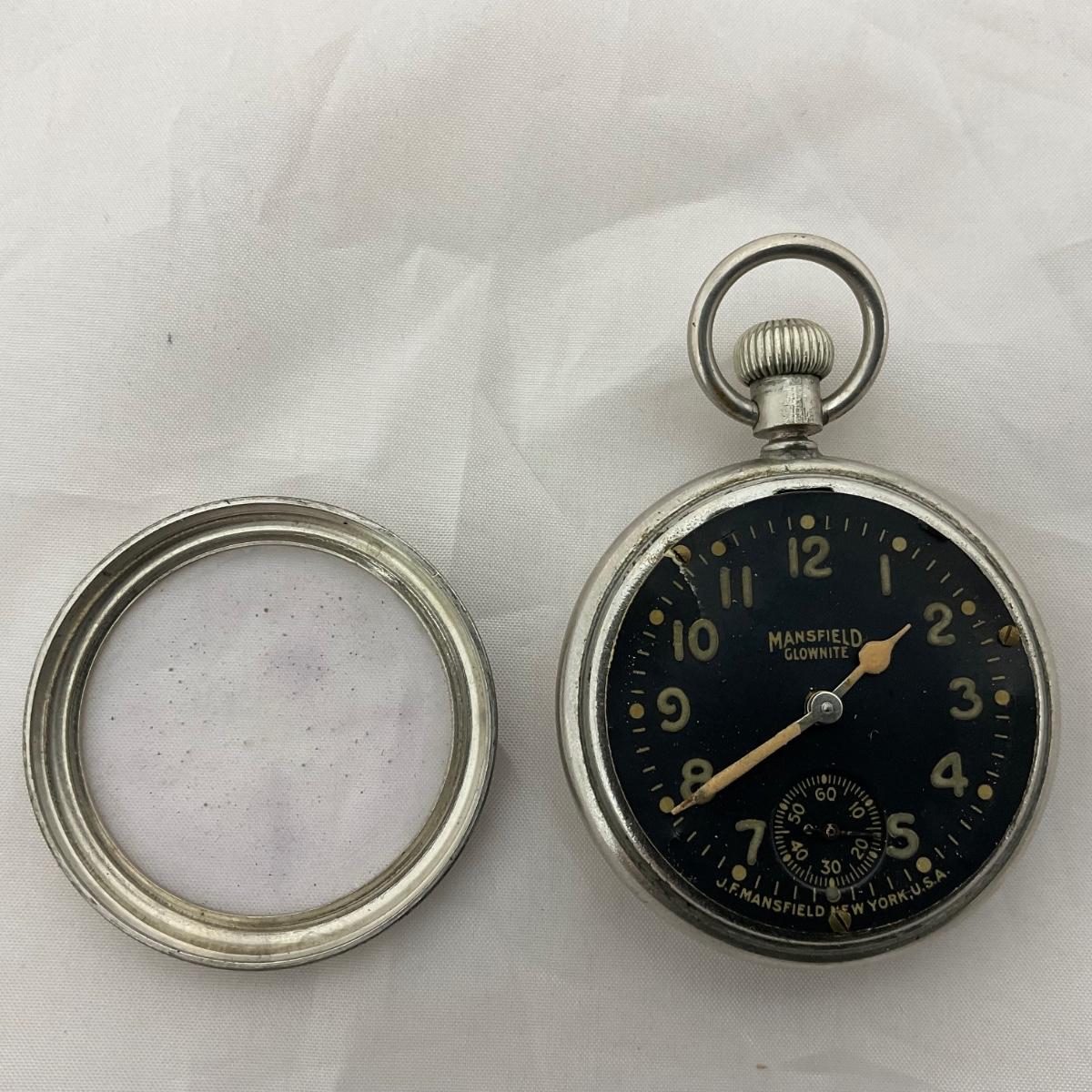 One Mansfield Glownite pocket watch. Believed to not be in working order. This piece would be a great project or extra parts buy. Please see photos for details and condition. ::: Shipping is available on this lot. If you require shipping you must let us know at the close of the auction. We will coordinate with you after the item has been won. Shipping fees will include insurance up to or exceeding the value of all items being mailed. If you have any questions regarding this lot please contact the auctioneer either via this website, by direct email or by phone. PICK UP TIMES and other important information can be found in the TERMS and DESCRIPTION of the auction. Please take a look for pertinent information. Thanks!