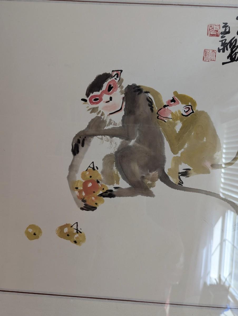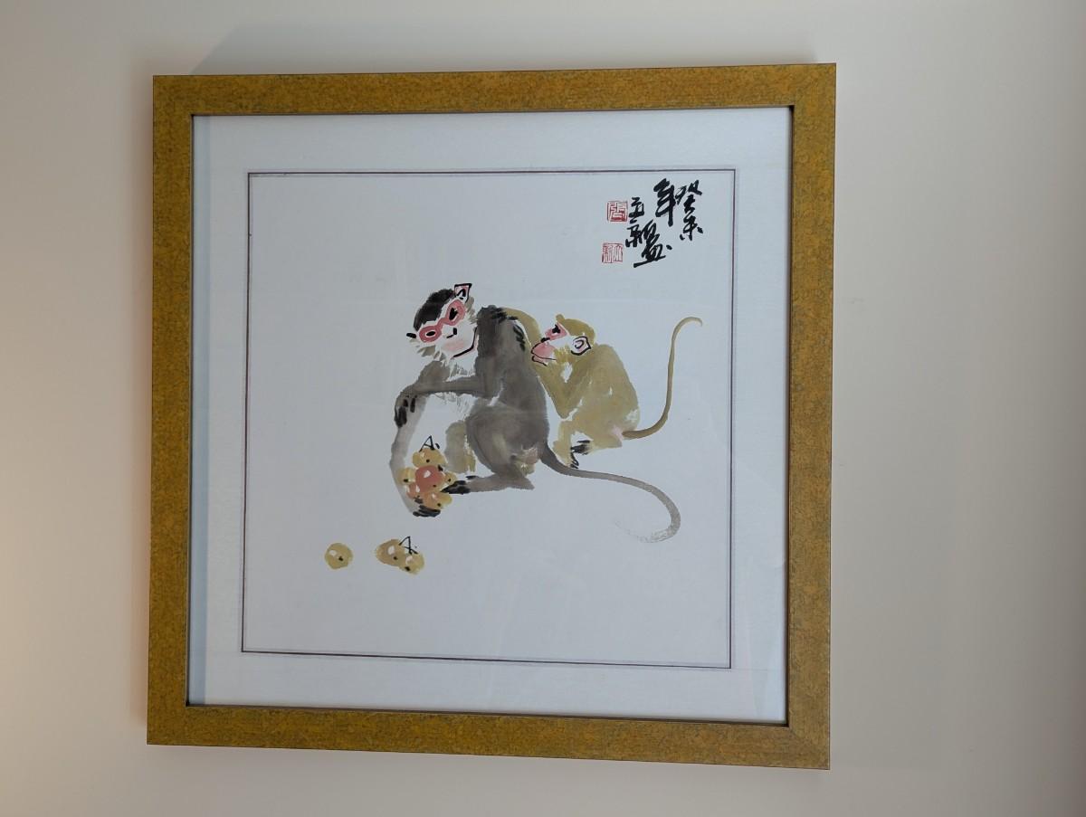 26" x 26" Framed Monkey Art Marked