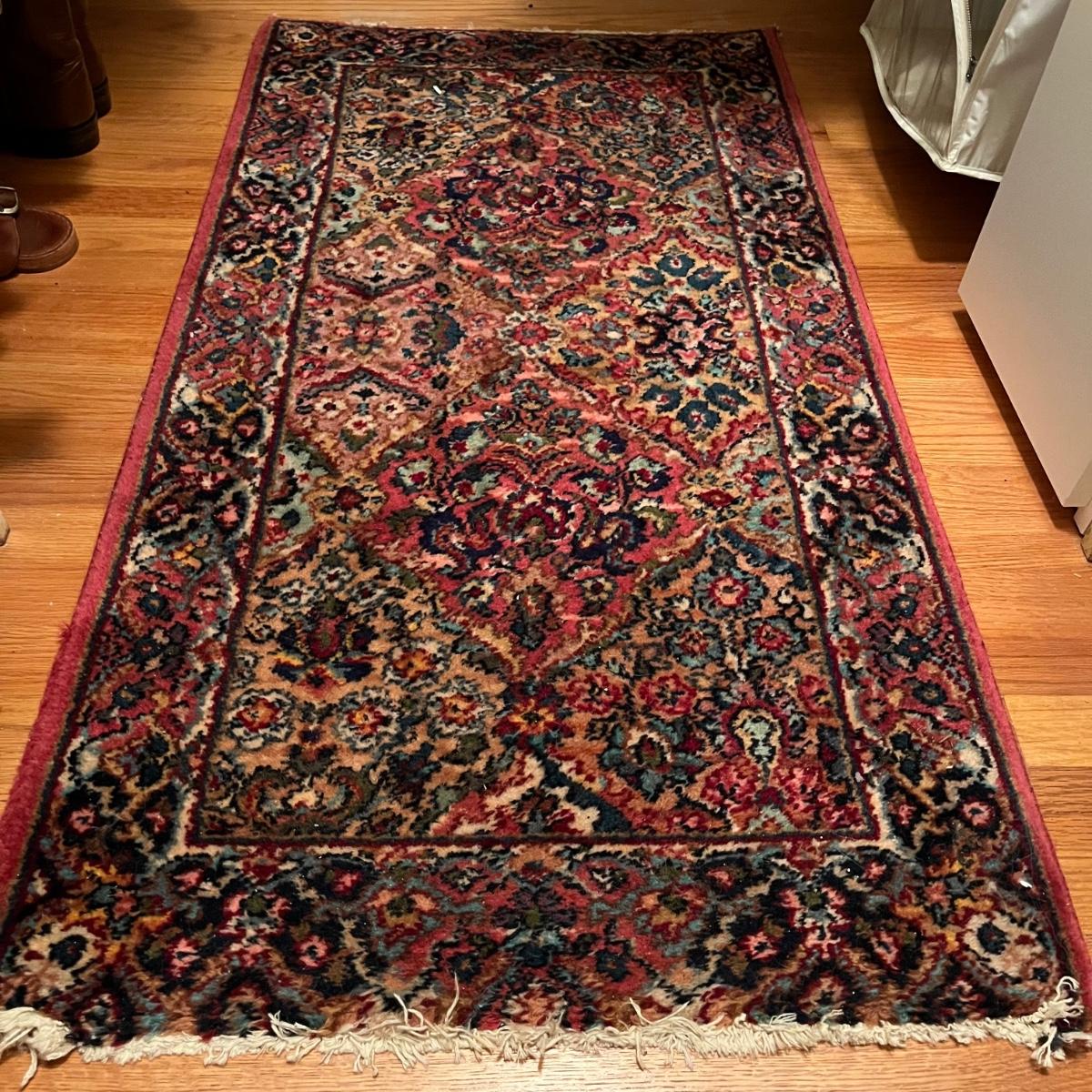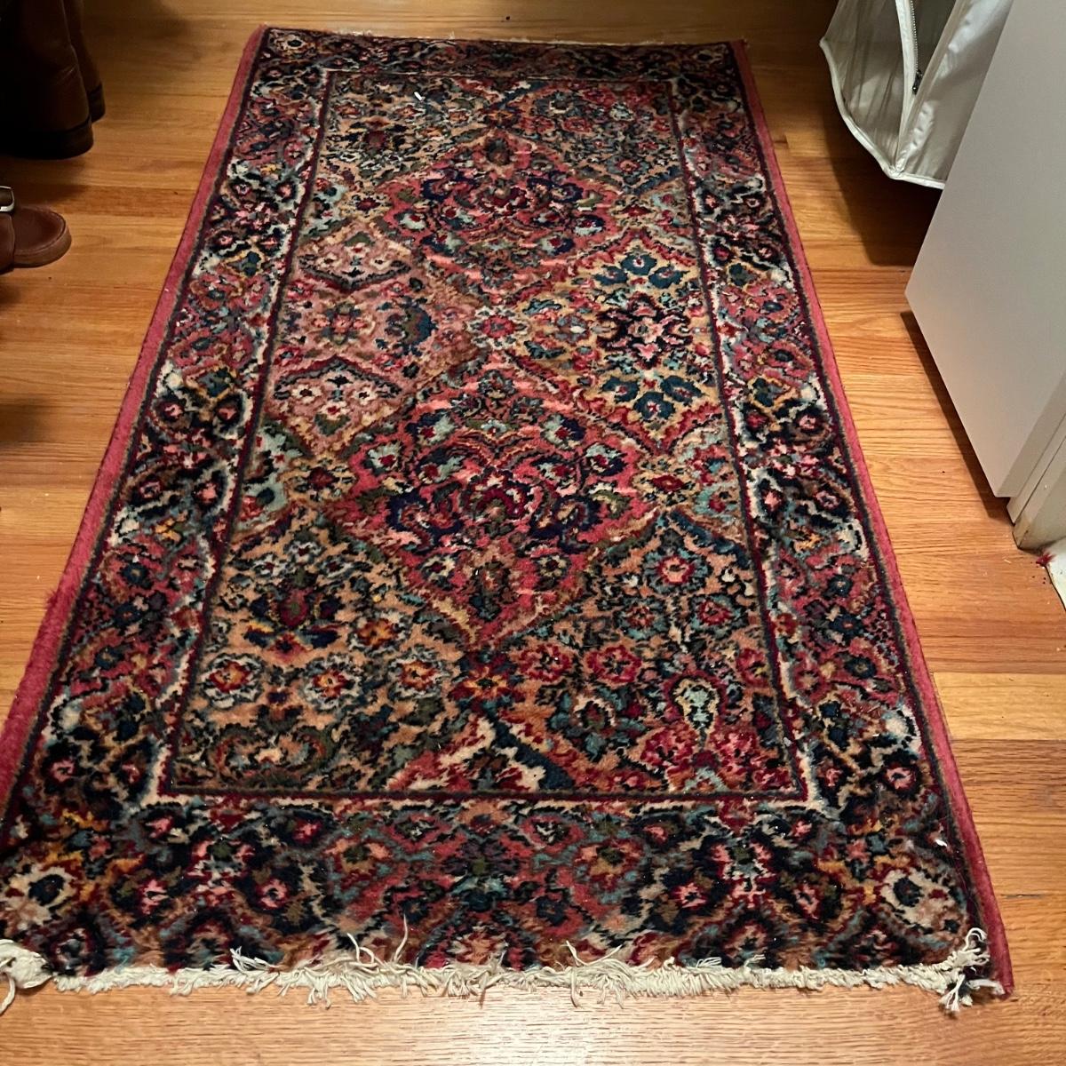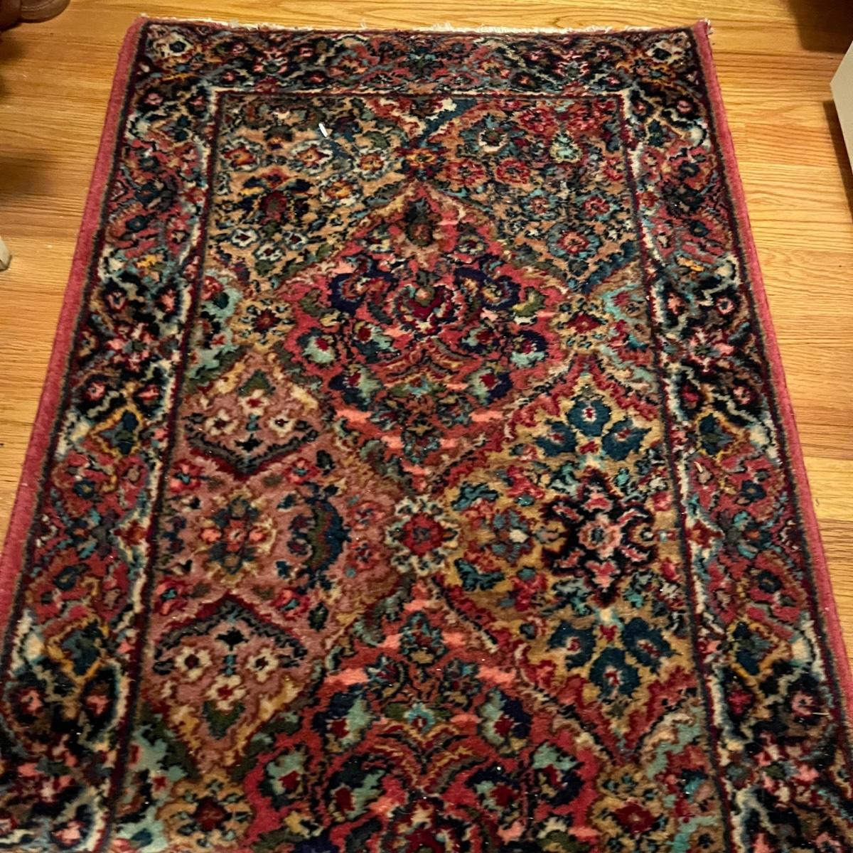 Lot includes an area rug that that appears to be wool and measures 26” x 50”. Fringe does have some minor damage. Local Pickup Only