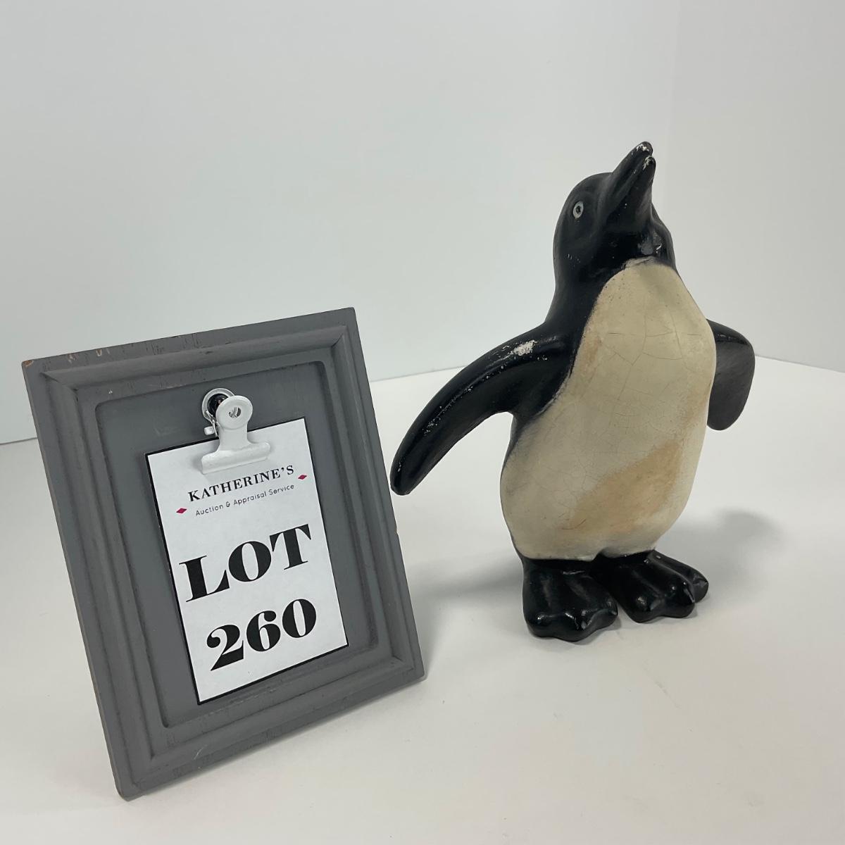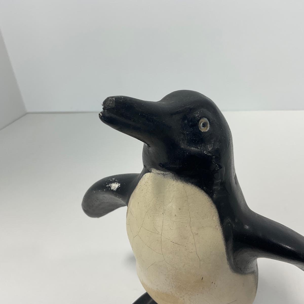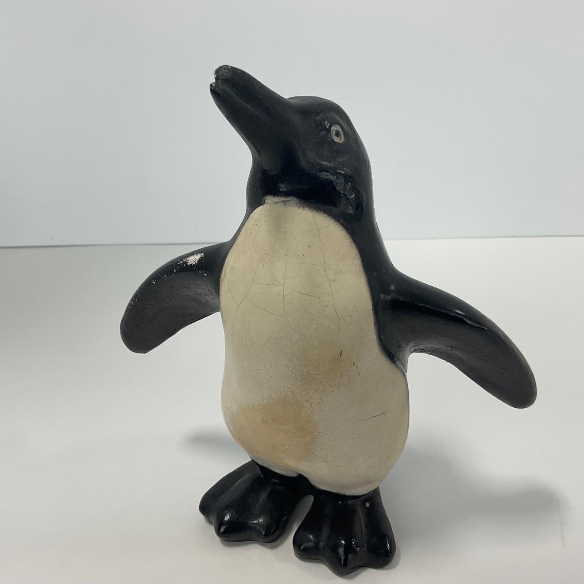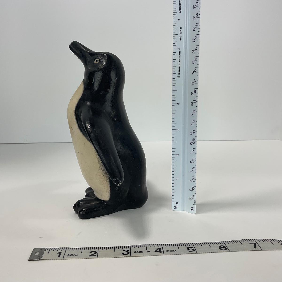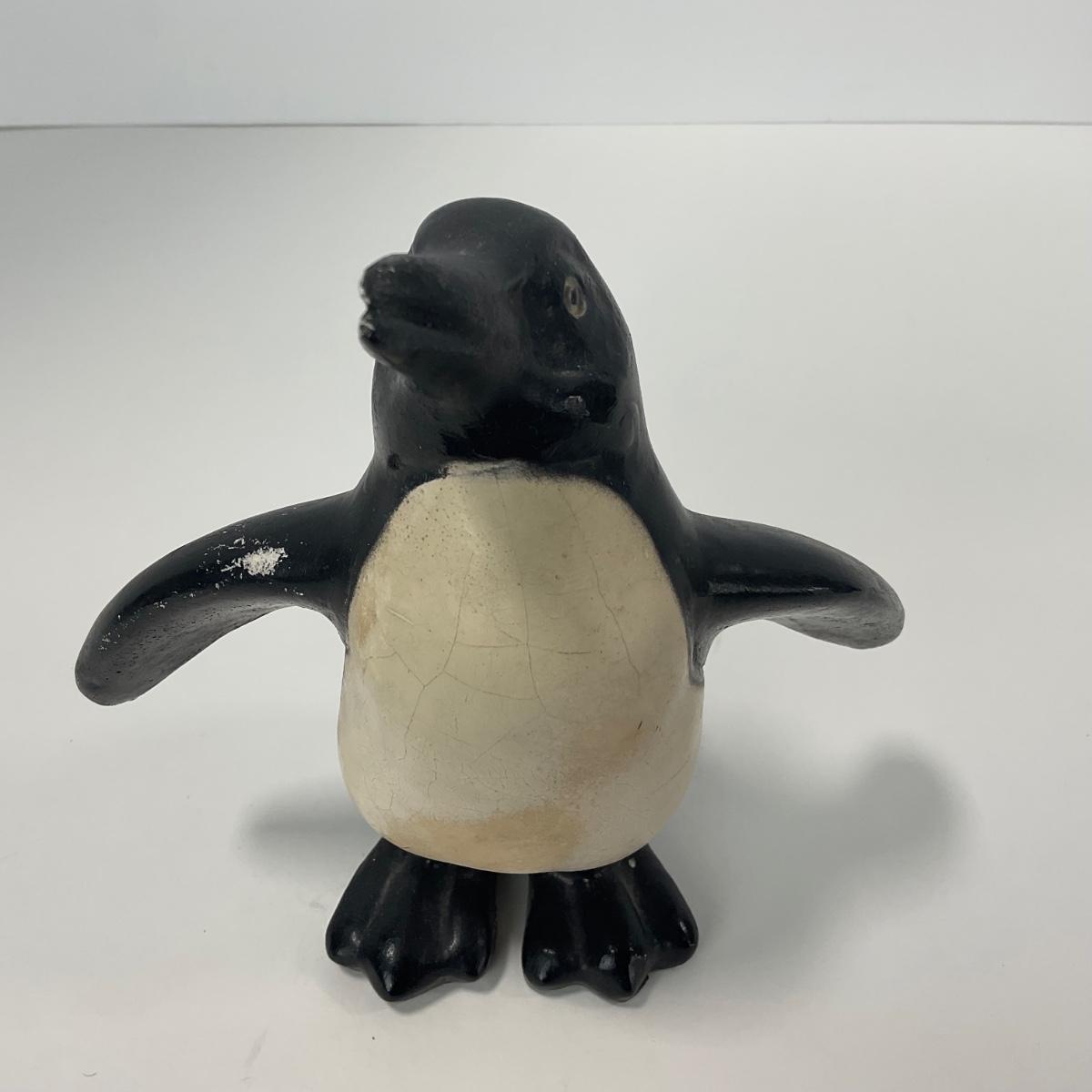 One vintage penguin figure 7 inches tall. Does have some damage and wear. Please see photos for details and condition. ::: Shipping is available on this lot. If you require shipping you must let us know at the close of the auction. We will coordinate with you after the item has been won. Shipping fees will include insurance up to or exceeding the value of all items being mailed. If you have any questions regarding this lot please contact the auctioneer either via this website, by direct email or by phone. PICK UP TIMES and other important information can be found in the TERMS and DESCRIPTION of the auction. Please take a look for pertinent information. Thanks!