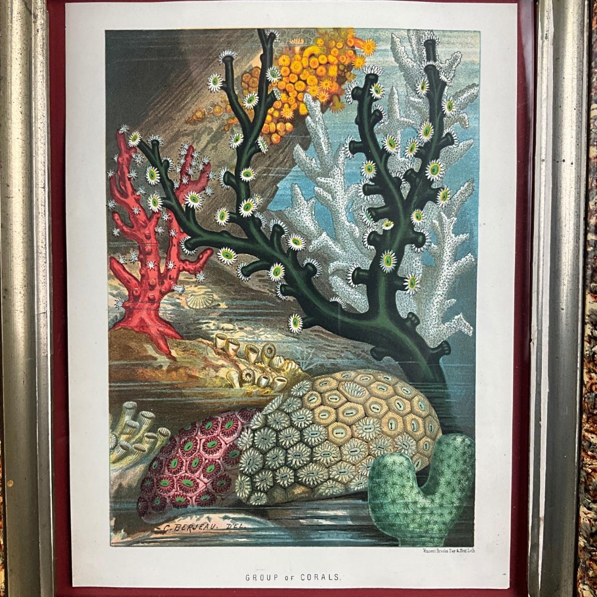 163 Vintage Coral Nautical Sea Plants Framed Color Lithograph