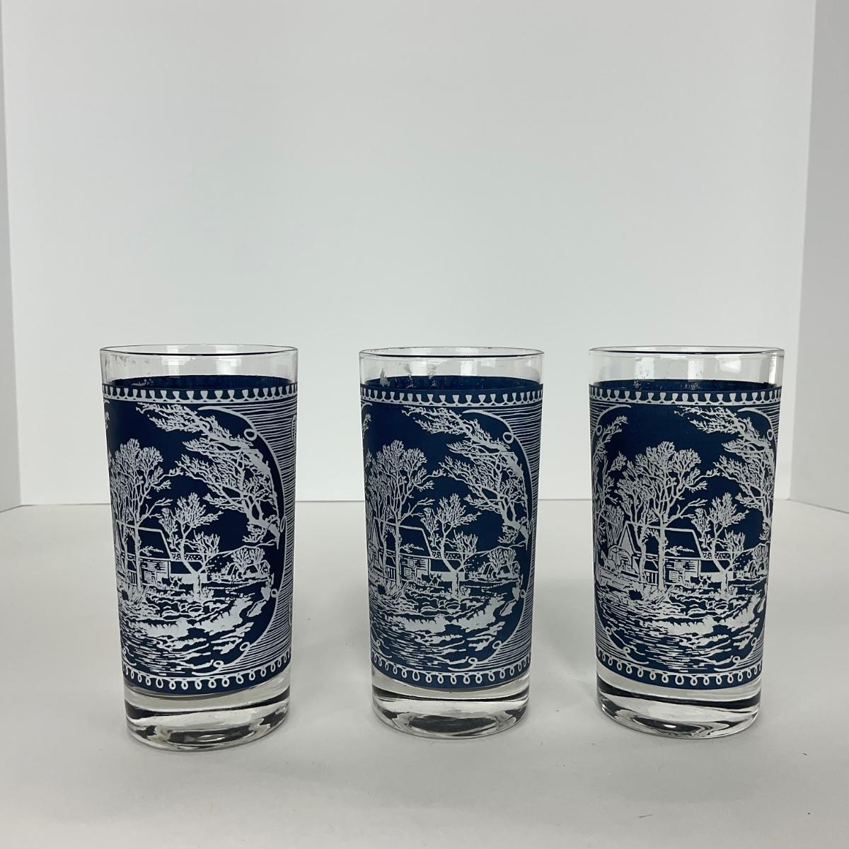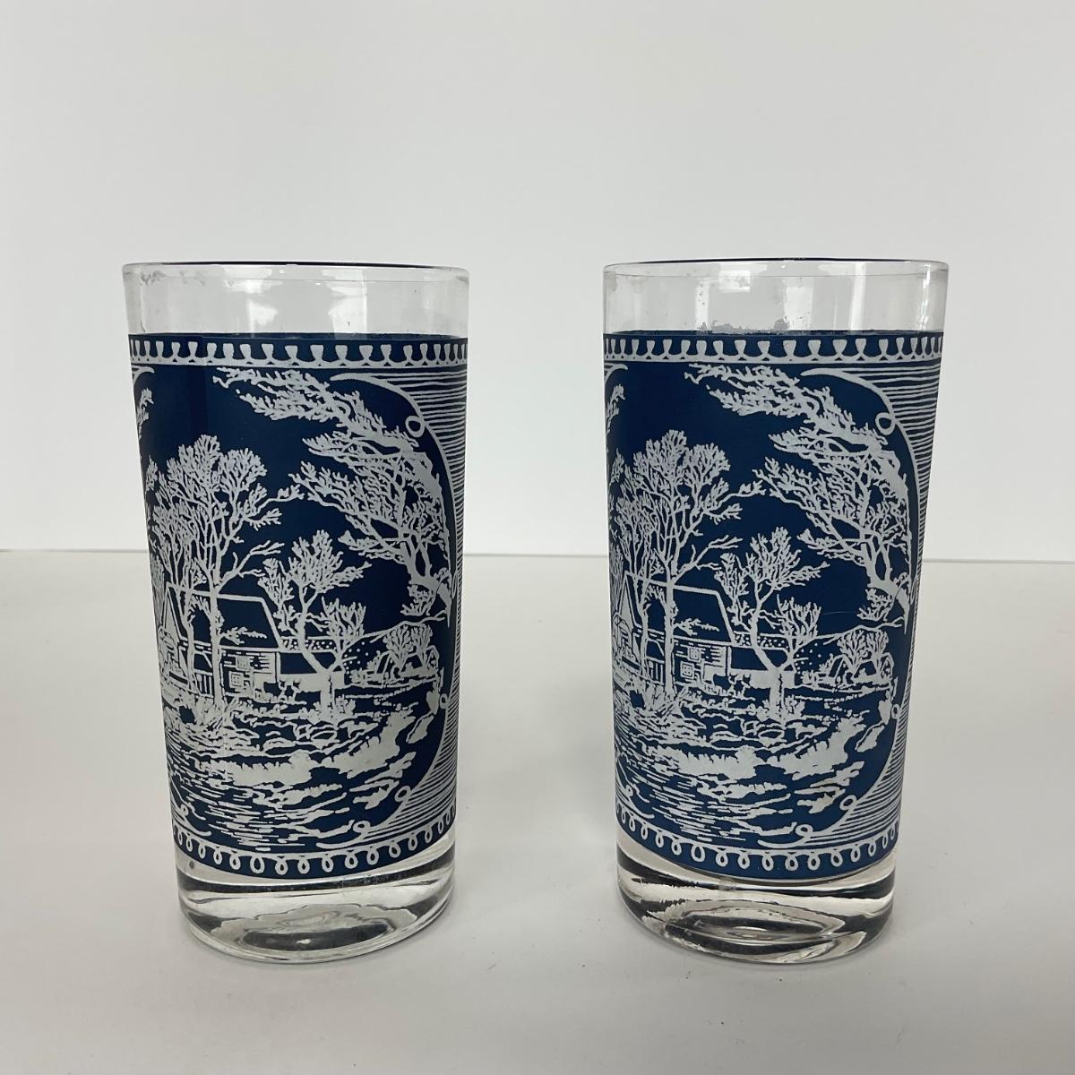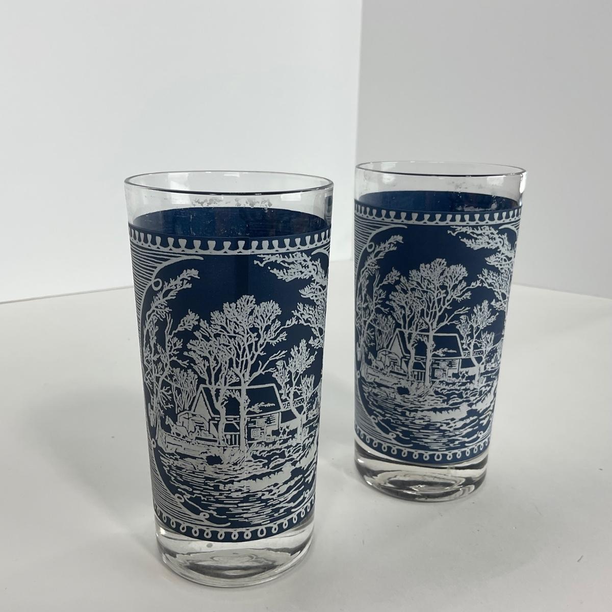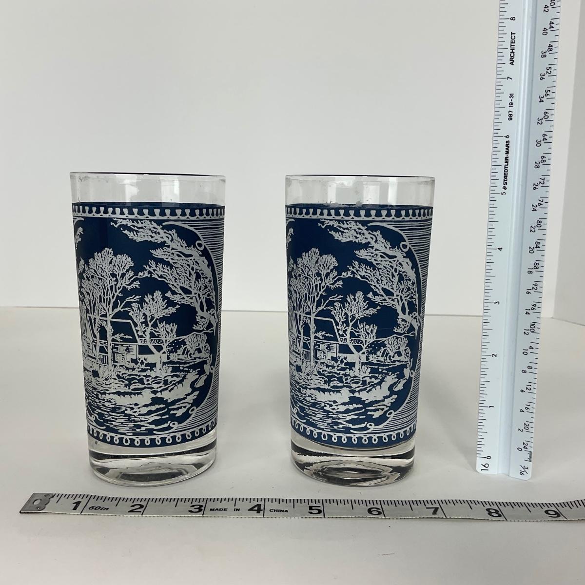 -260- GLASSWARE | Currier & Ives Old Mill Dark Blue Drinking & Juice Glasses