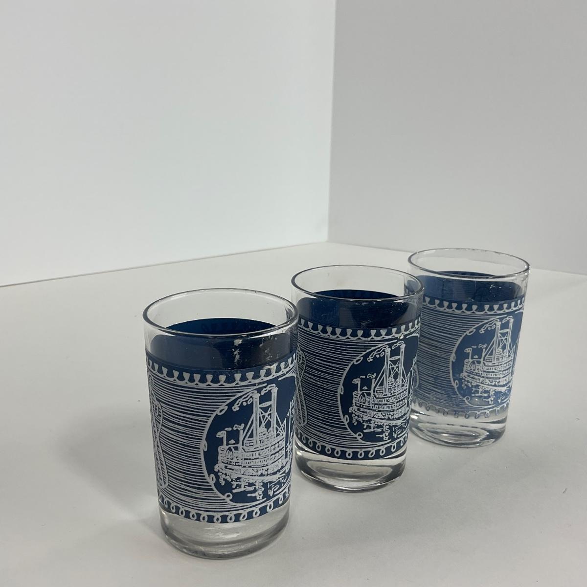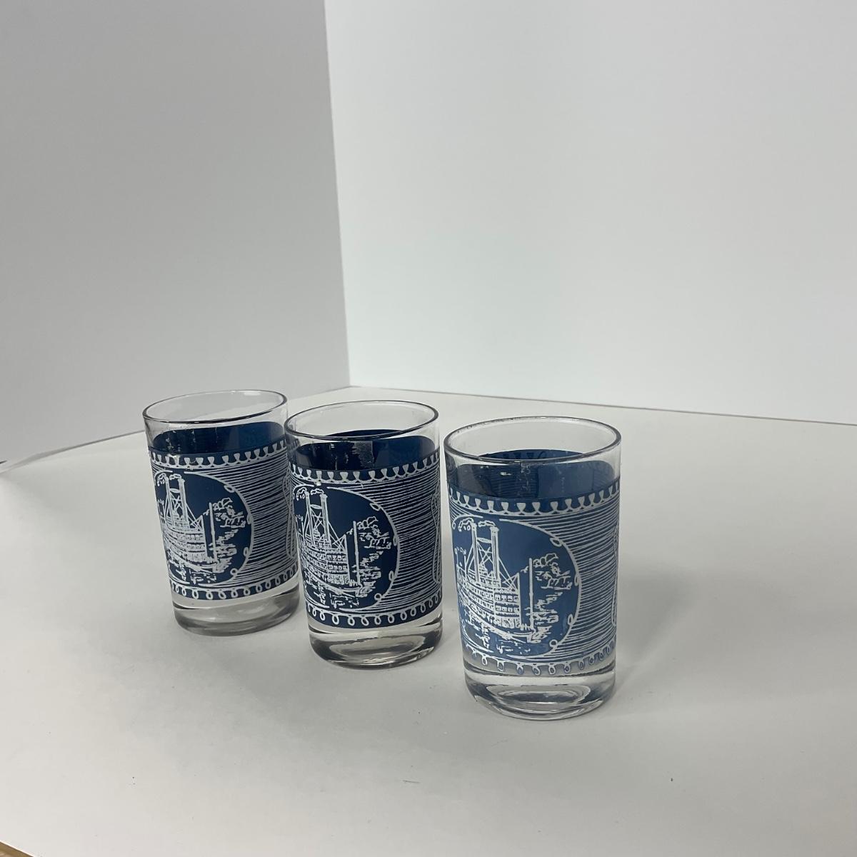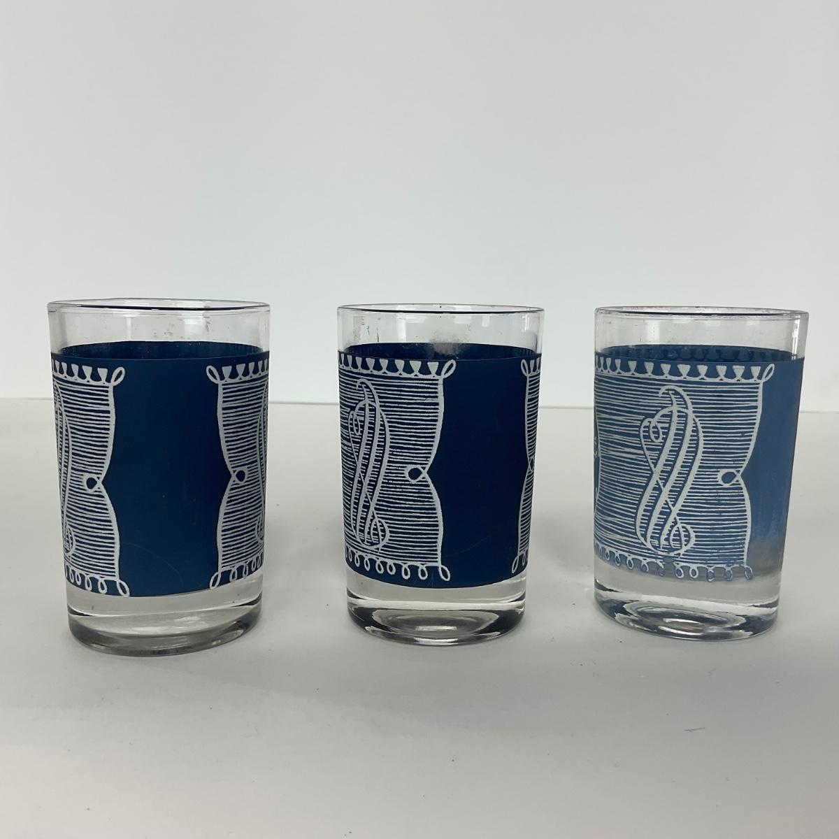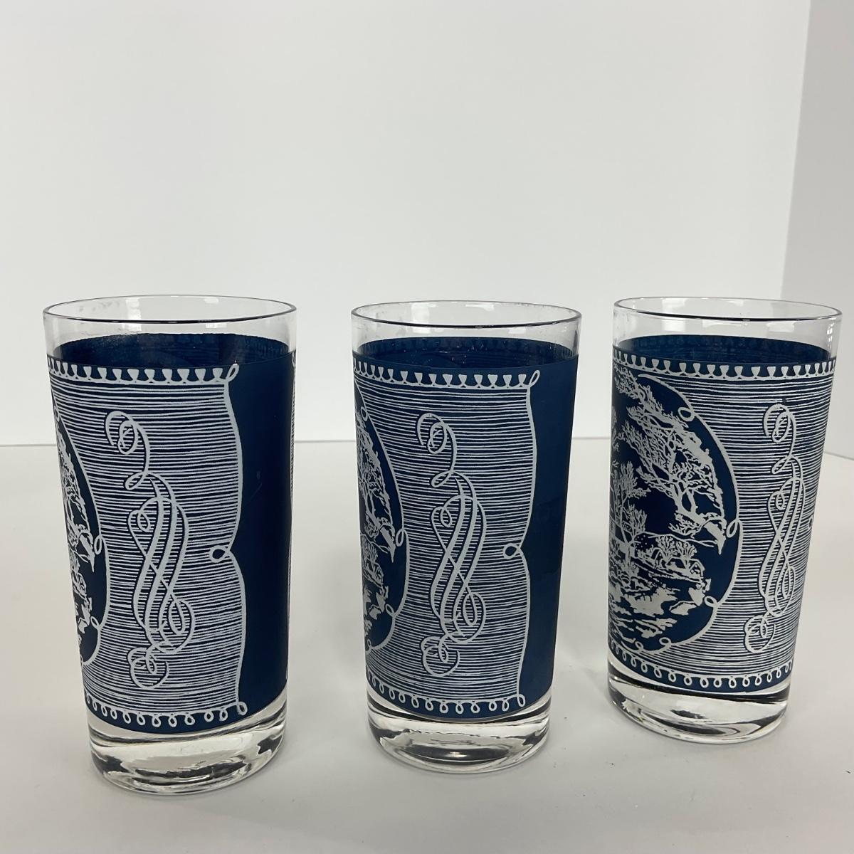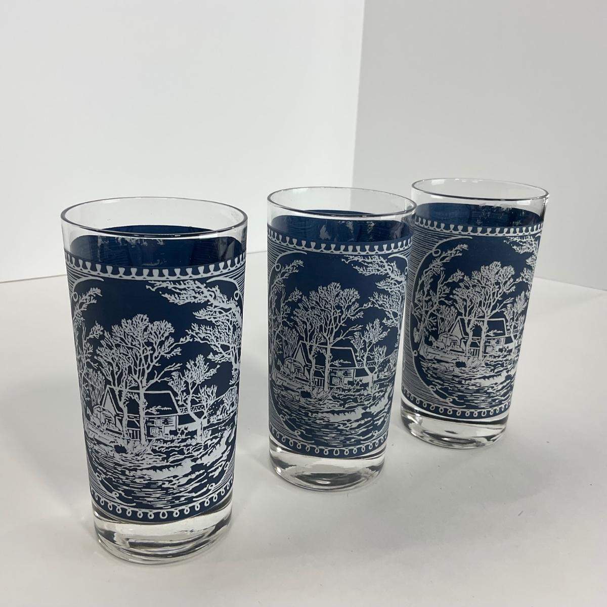 -260- GLASSWARE | Currier & Ives Old Mill Dark Blue Drinking & Juice Glasses