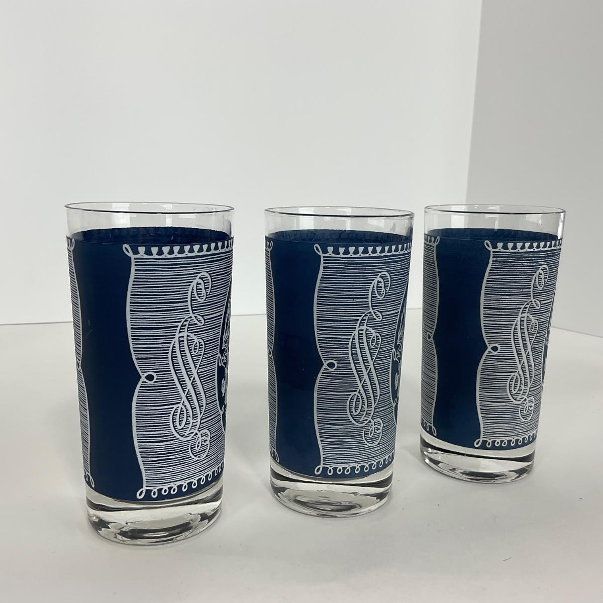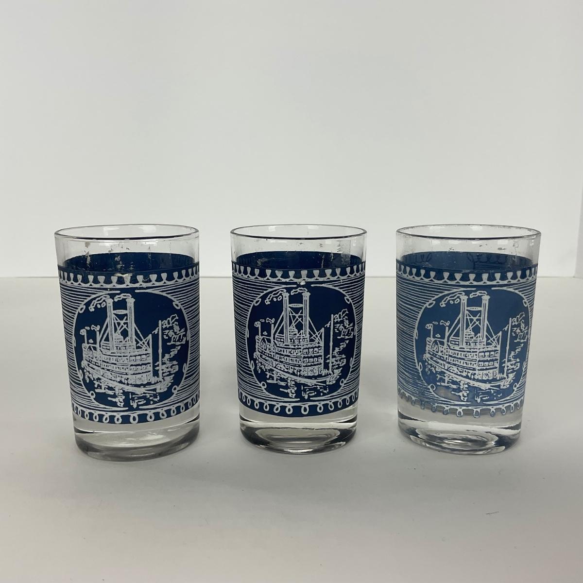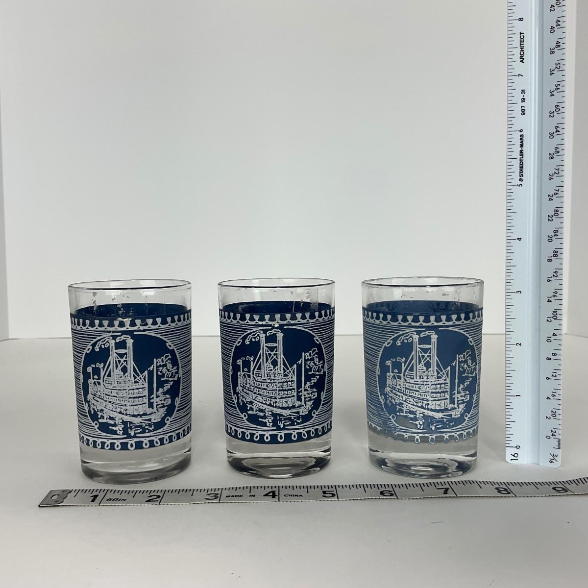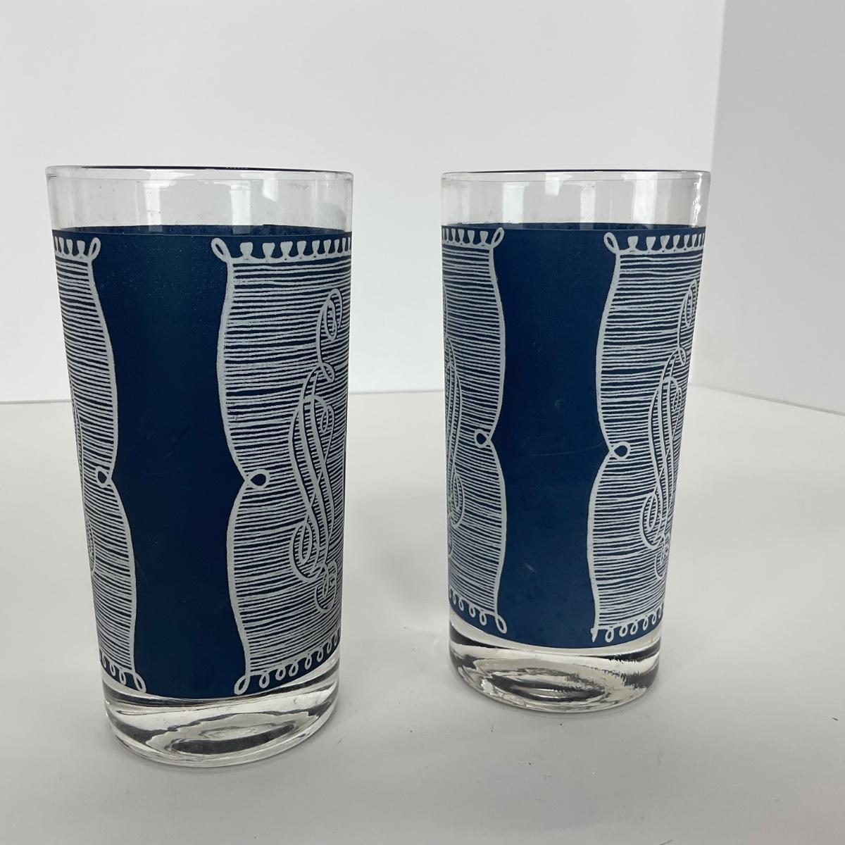 -260- GLASSWARE | Currier & Ives Old Mill Dark Blue Drinking & Juice Glasses