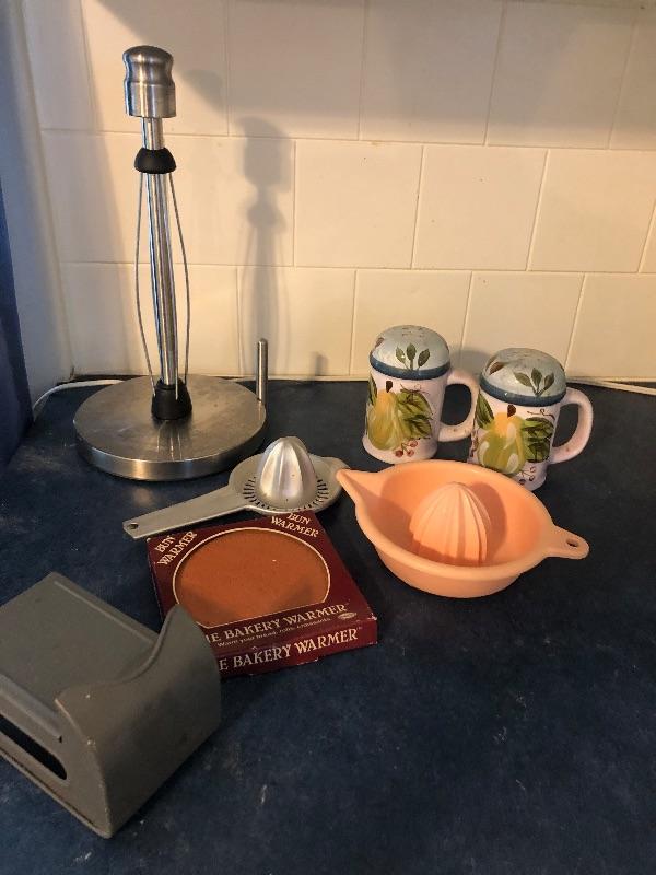 Includes paper towel holder very sturdy to juicers, play warmer, some pepper shakers, and match holder. Great condition. This is an ONSITE Auction all items will need to be picked up on location. Please see auction description for pick up procedures.