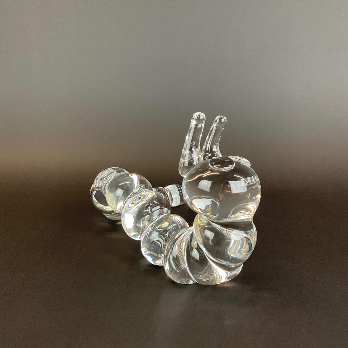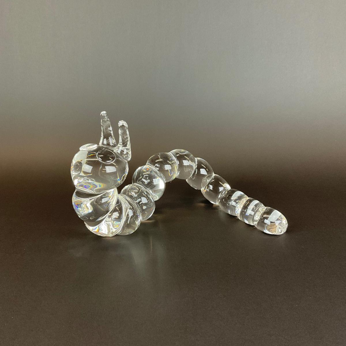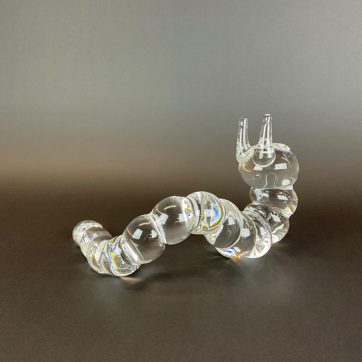 Peter Yenawine ( American , b. 1944 ) for Steuben glass caterpillar sculpture, designed in 1970, signed “Steuben” to underside at end of tail. Provenance from a 177 75th Street Collection.
