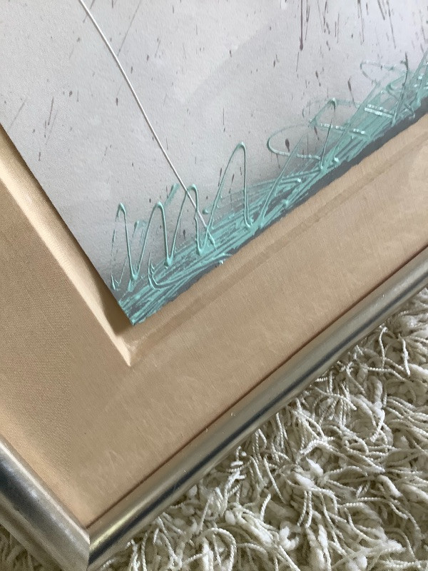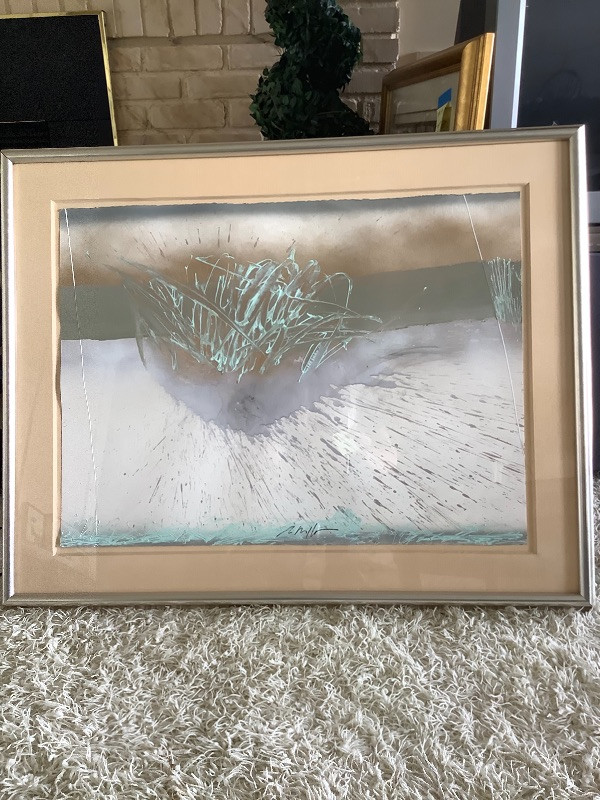 “Splash” wall art the artist is unknown. The piece measures 40” x 32”.