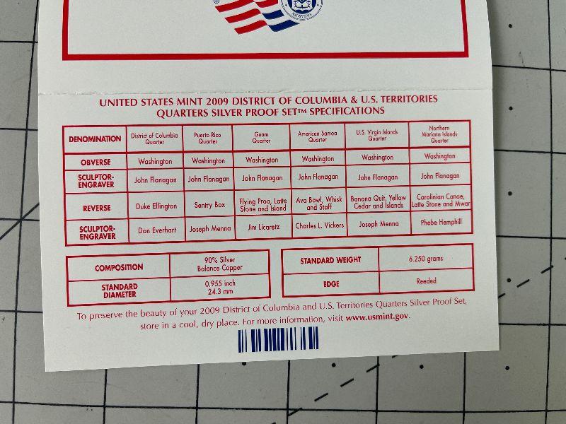 #261 2009 U.S. Mint District of Columbia & U.S. Territories Silver Proof Set