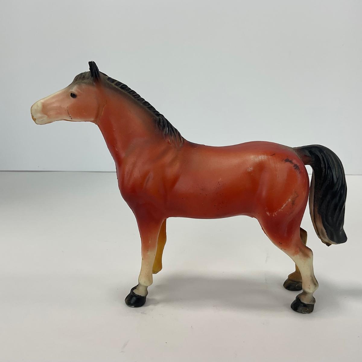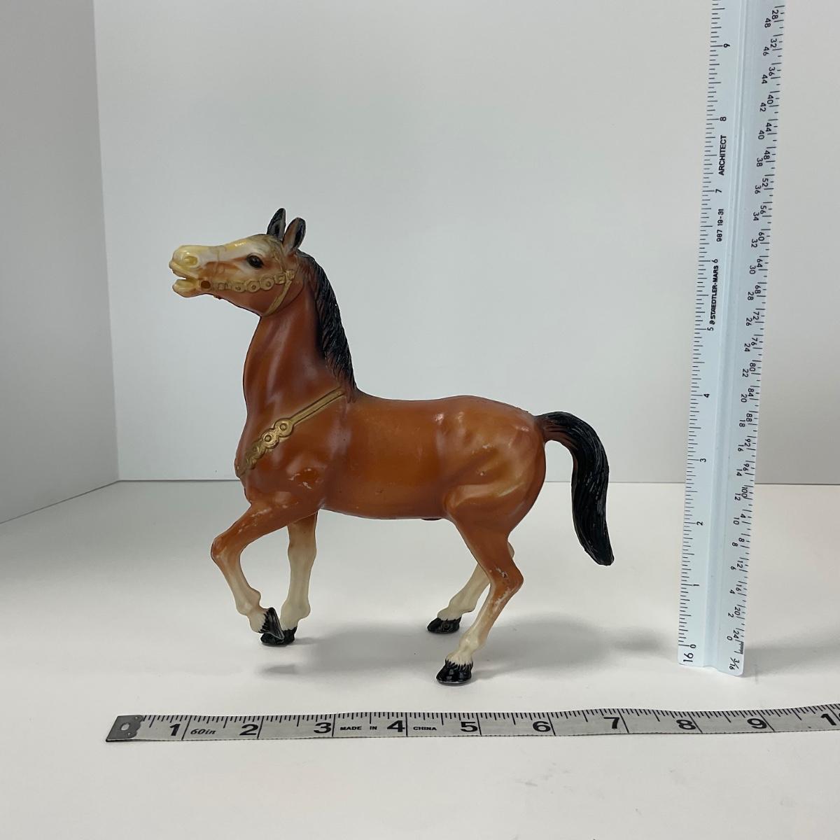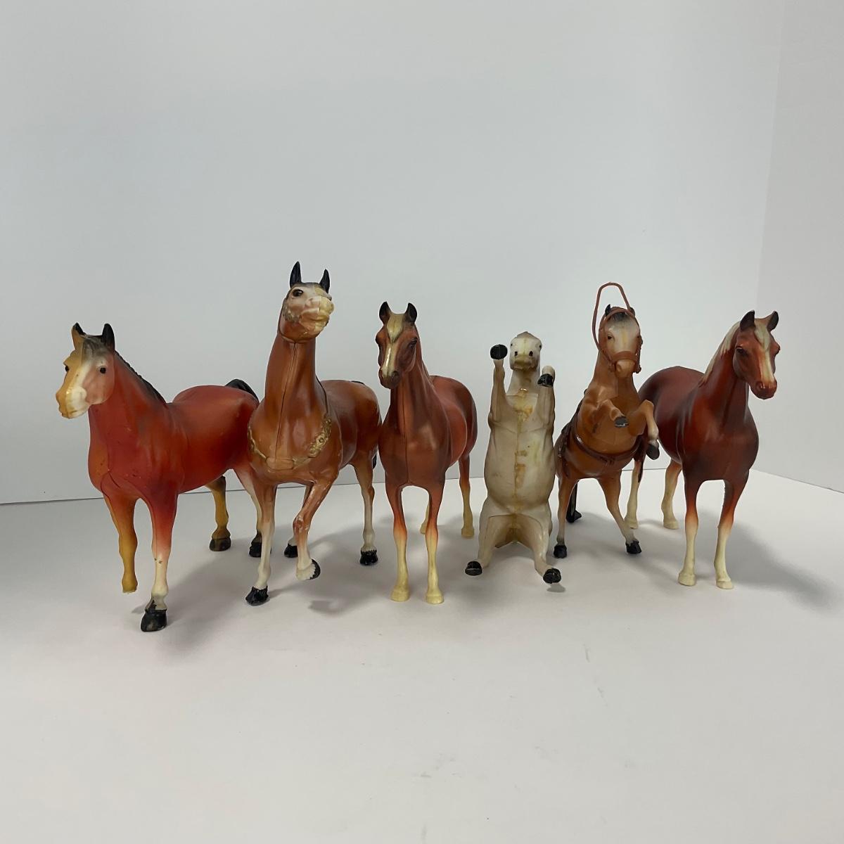 Six vintage plastic horses, one is missing a tail one is missing a foot and most have damage or issues that have been fixed. Please see photos for details and condition. ::: Shipping is available on this lot. If you require shipping you must let us know at the close of the auction. We will coordinate with you after the item has been won. Shipping fees will include insurance up to or exceeding the value of all items being mailed. If you have any questions regarding this lot please contact the auctioneer either via this website, by direct email or by phone. PICK UP TIMES and other important information can be found in the TERMS and DESCRIPTION of the auction. Please take a look for pertinent information. Thanks!