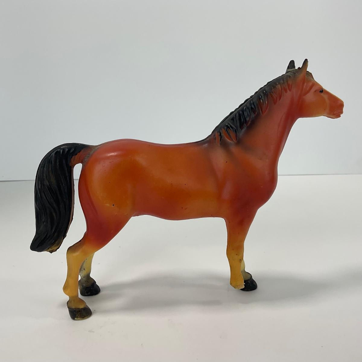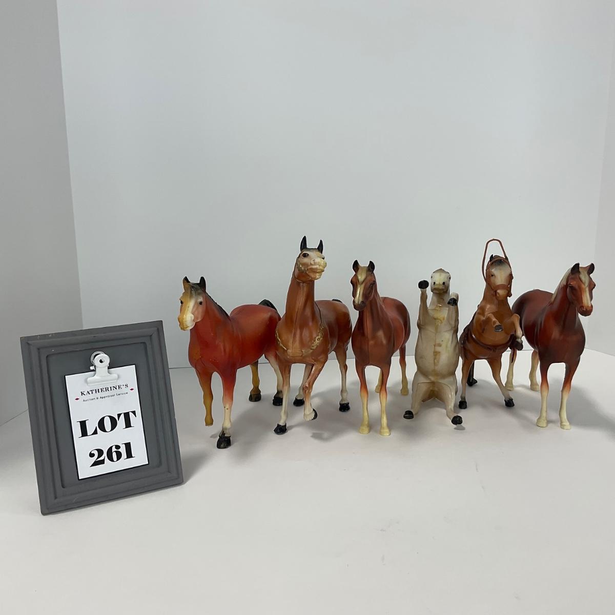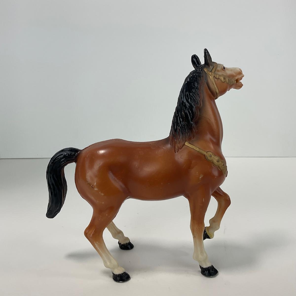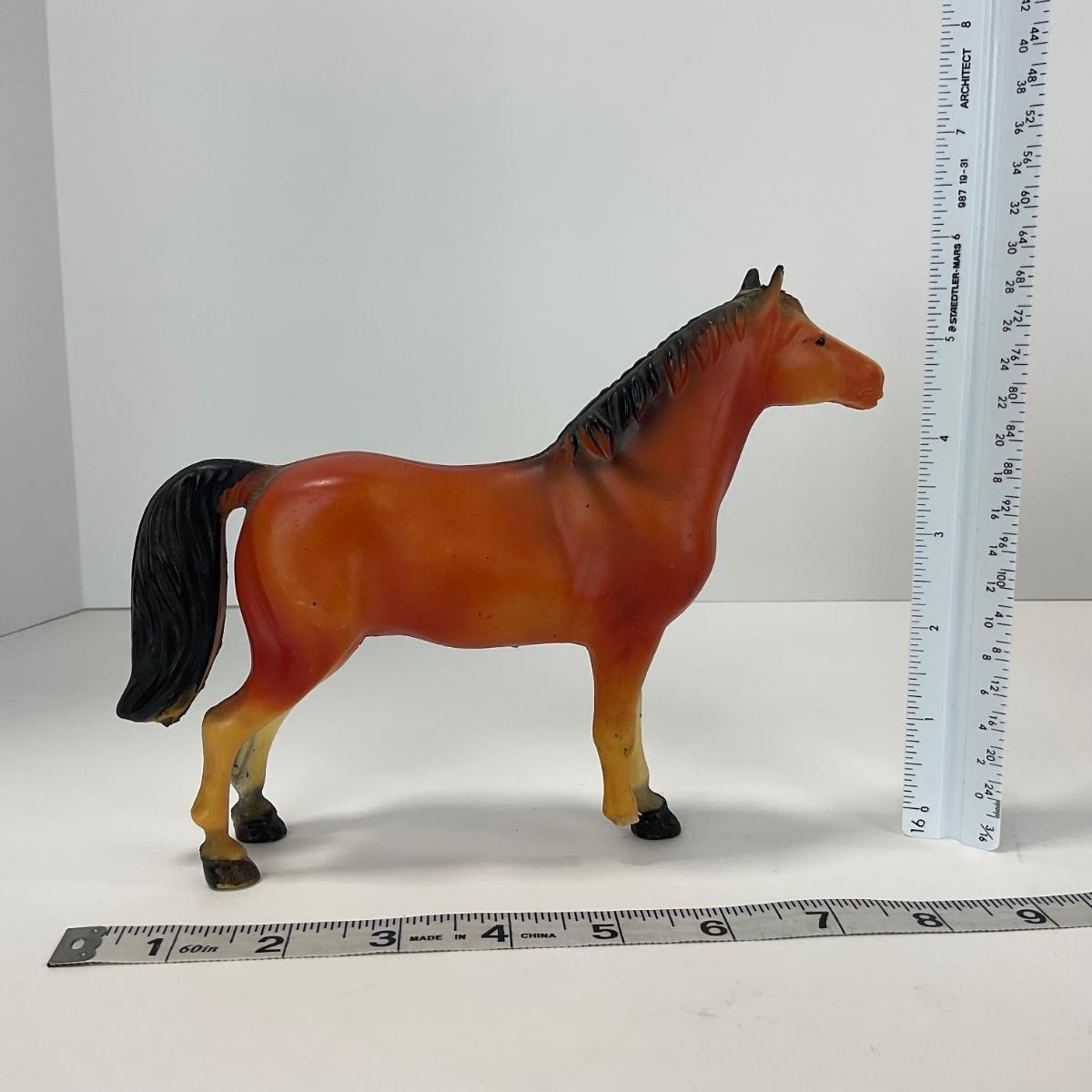 Six vintage plastic horses, one is missing a tail one is missing a foot and most have damage or issues that have been fixed. Please see photos for details and condition. ::: Shipping is available on this lot. If you require shipping you must let us know at the close of the auction. We will coordinate with you after the item has been won. Shipping fees will include insurance up to or exceeding the value of all items being mailed. If you have any questions regarding this lot please contact the auctioneer either via this website, by direct email or by phone. PICK UP TIMES and other important information can be found in the TERMS and DESCRIPTION of the auction. Please take a look for pertinent information. Thanks!