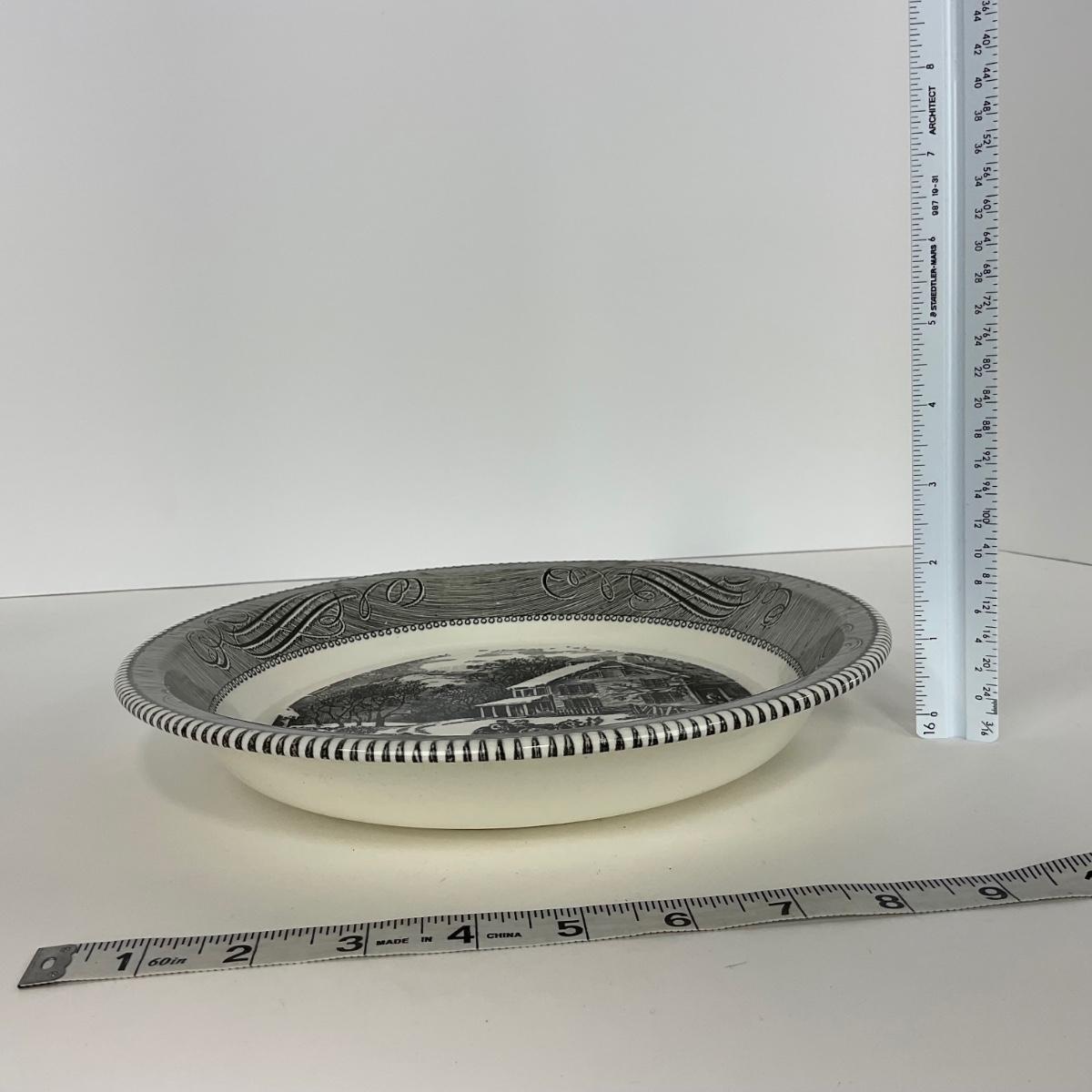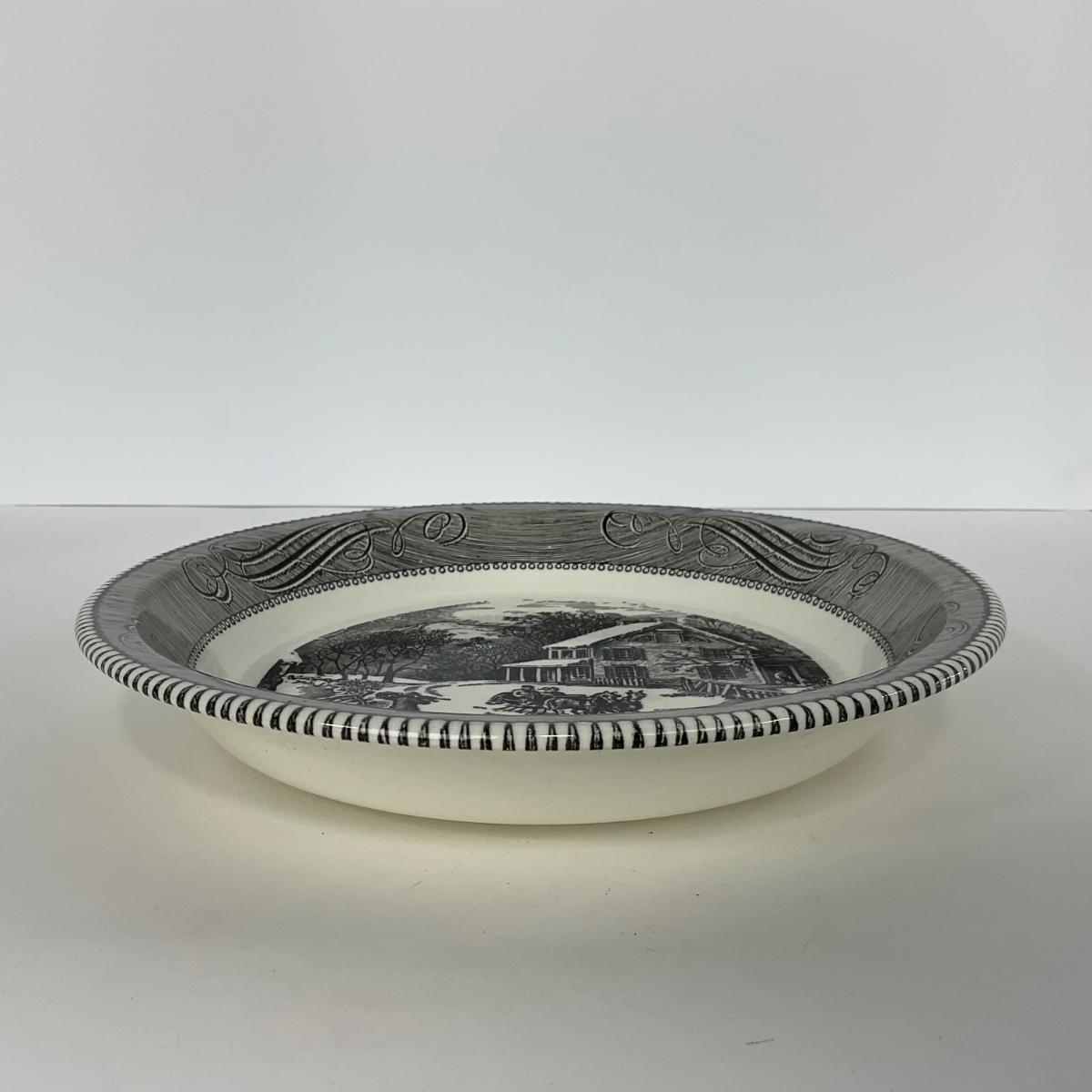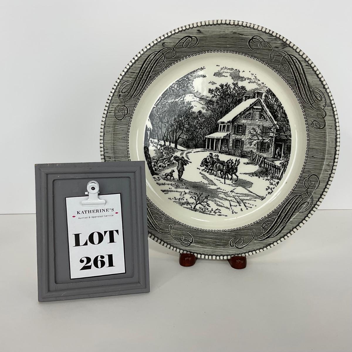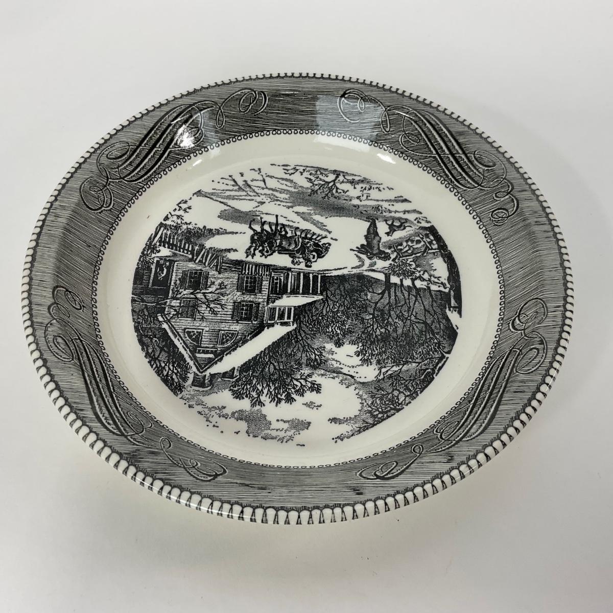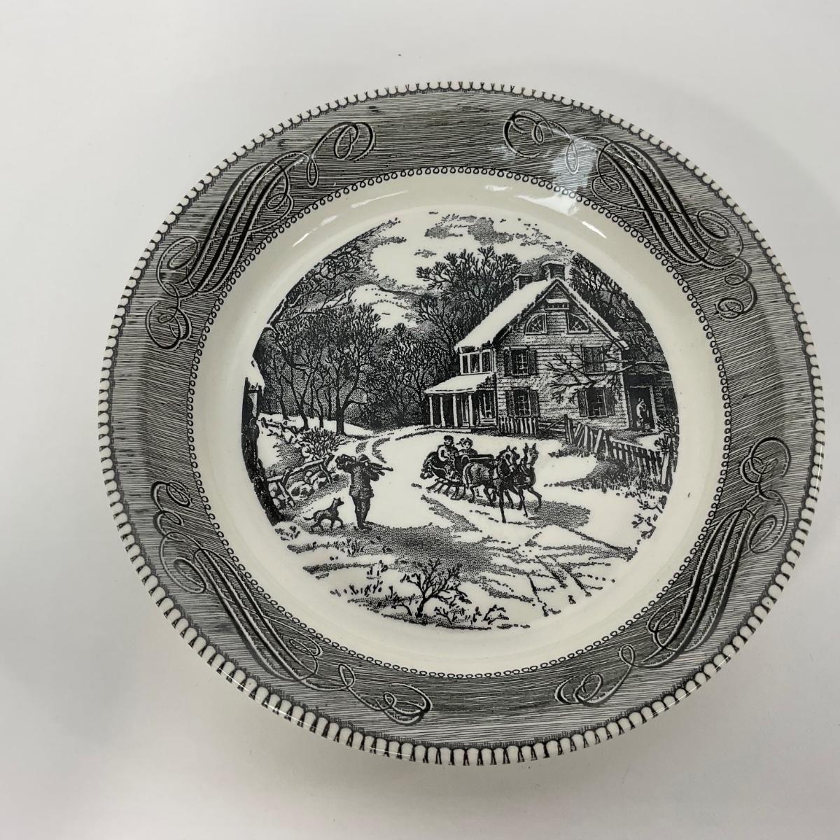 One Royal China Currier & Ives large serving plate black grey and white. Please see photos for details and condition. ::: Shipping is available on this lot. If you require shipping you must let us know at the close of the auction. We will coordinate with you after the item has been won. Shipping fees will include insurance up to or exceeding the value of all items being mailed. If you have any questions regarding this lot please contact the auctioneer either via this website, by direct email or by phone. PICK UP TIMES and other important information can be found in the TERMS and DESCRIPTION of the auction. Please take a look for pertinent information. Thanks!