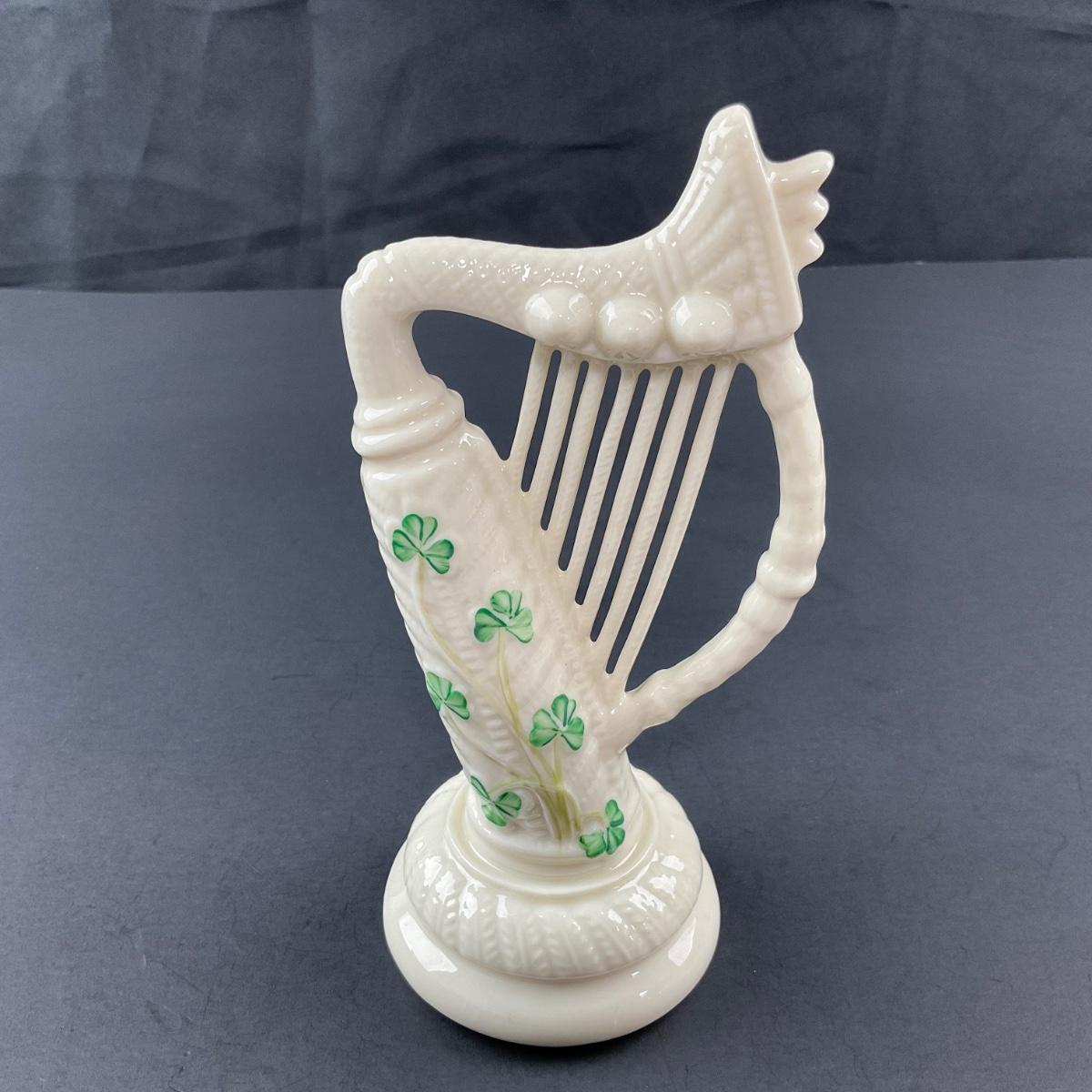 -262- BELLEEK | Donegal Irish Harp Shamrock Figure | 7th Mark