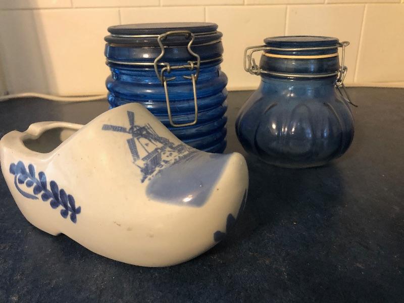 #262 Blue Canisters & Dutch Shoe Ashtray.
