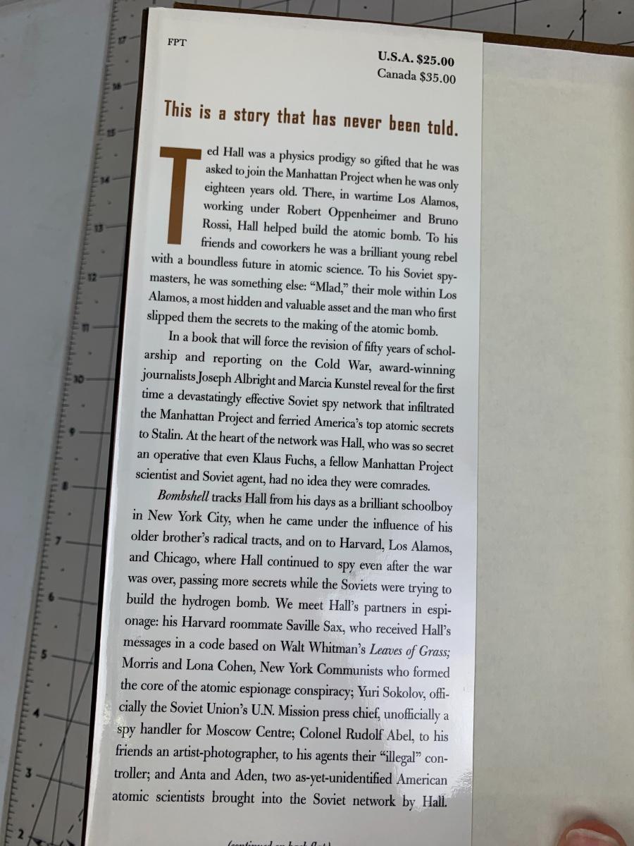 #262 Bombshell (Secret Atomic Spy Conspiracy) By Albright & Kunstel -Hardback Book