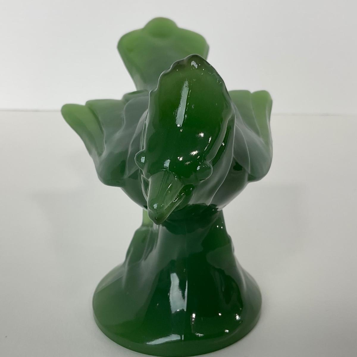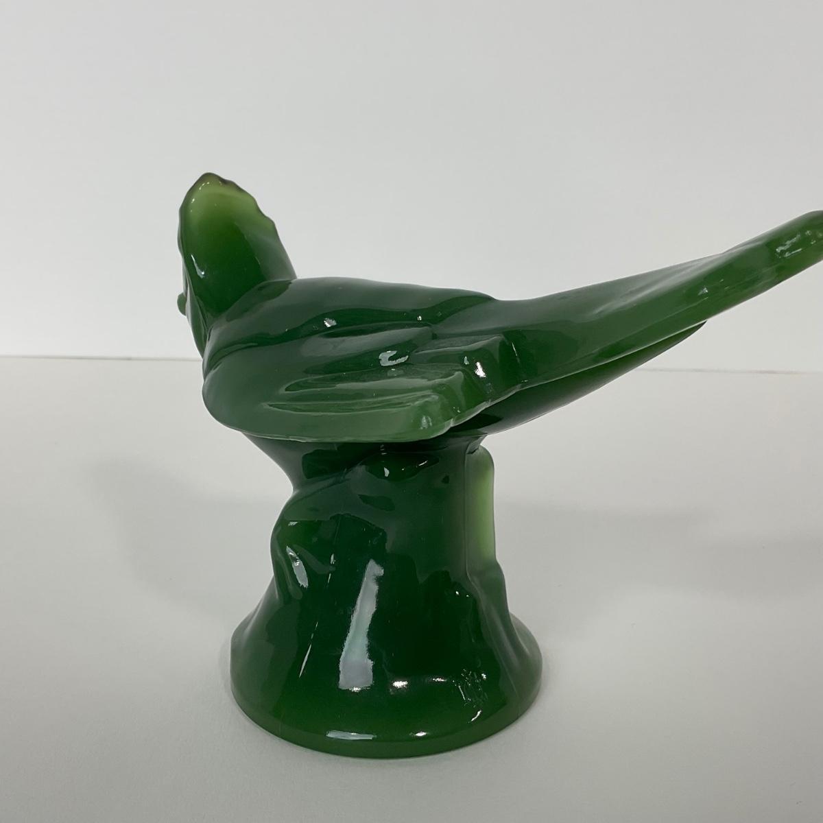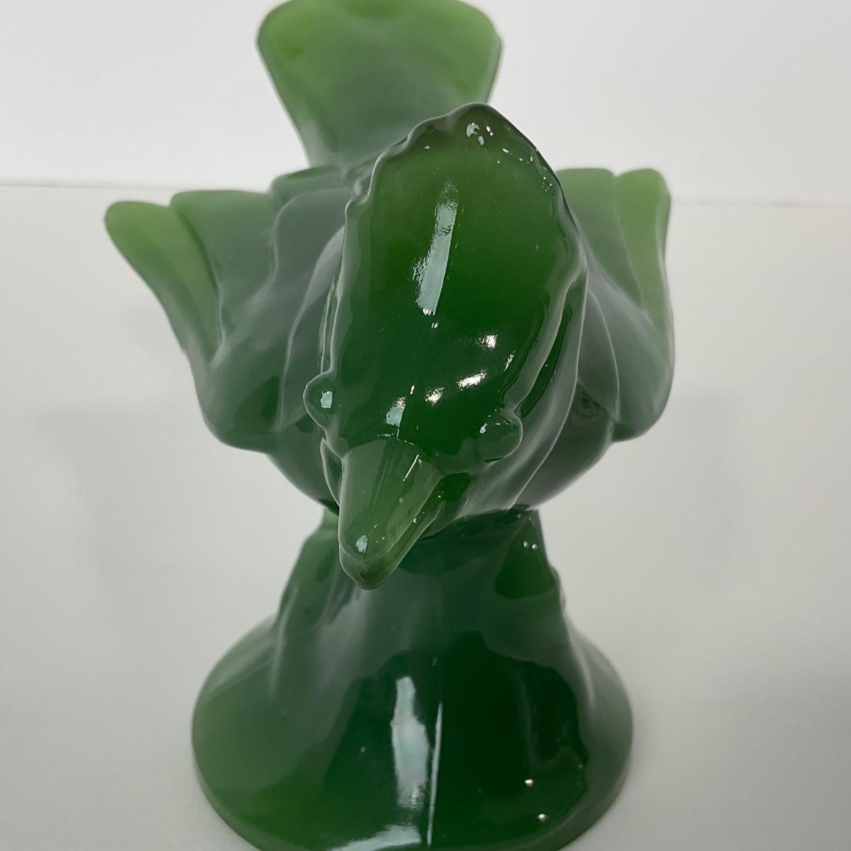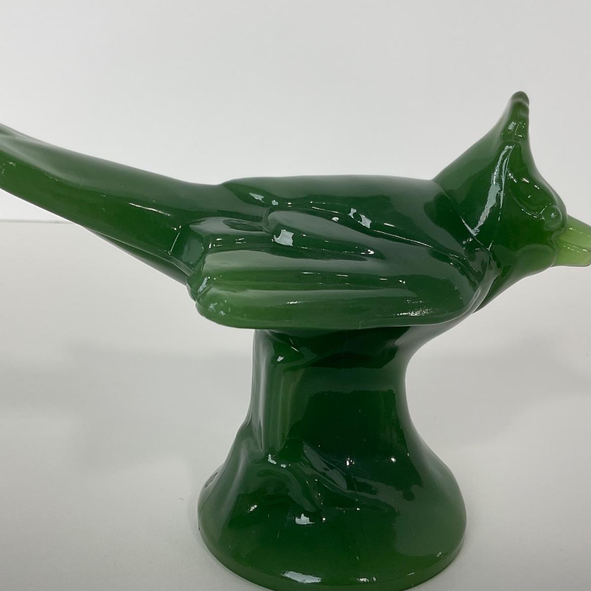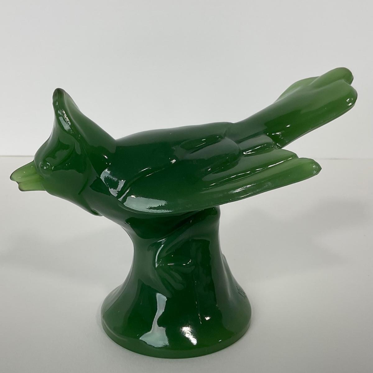 One marked Imperial jade by Lenox cardinal. 4 3/4 inches tall by 7 inches wide. This piece has no damage, and appears to be in great shape with no visable chips, cracks, or broken pieces. Please see photos for details and condition. Any condition statement is given as a courtesy to a client, is an opinion, and should not be treated as a statement of fact. Reference to condition written, oral or within a condition report shall not be regarded as a full account of condition and may not include all defects, alterations, or restorations. Absence of a condition report does not imply a lot is flawless or lacking imperfections or damage. Katherine’s Auction & Appraisal Service shall have no responsibility for any error or omission. Returns shall not be accepted on the basis of condition. ::: Shipping is available on this lot. If you require shipping you must let us know at the close of the auction. We will coordinate with you after the item has been won. Shipping fees will include insurance up to or exceeding the value of all items being mailed. If you have any questions regarding this lot please contact the auctioneer either via this website, by direct email or by phone. PICK UP TIMES and other important information can be found in the TERMS and DESCRIPTION of the auction. Please take a look for pertinent information. Thanks!