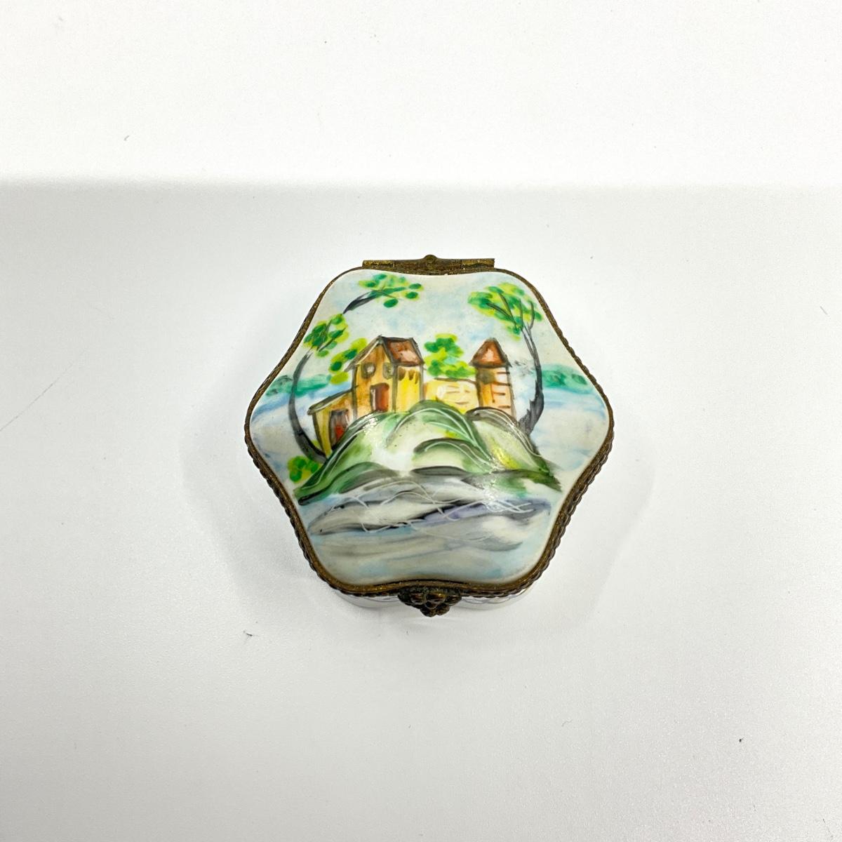 262 Limoges France Lys Royal Cottage on Island Scene Porcelain Box