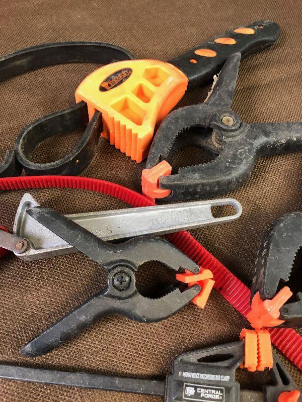 Strap, bar, pincher clamp and more clamps.