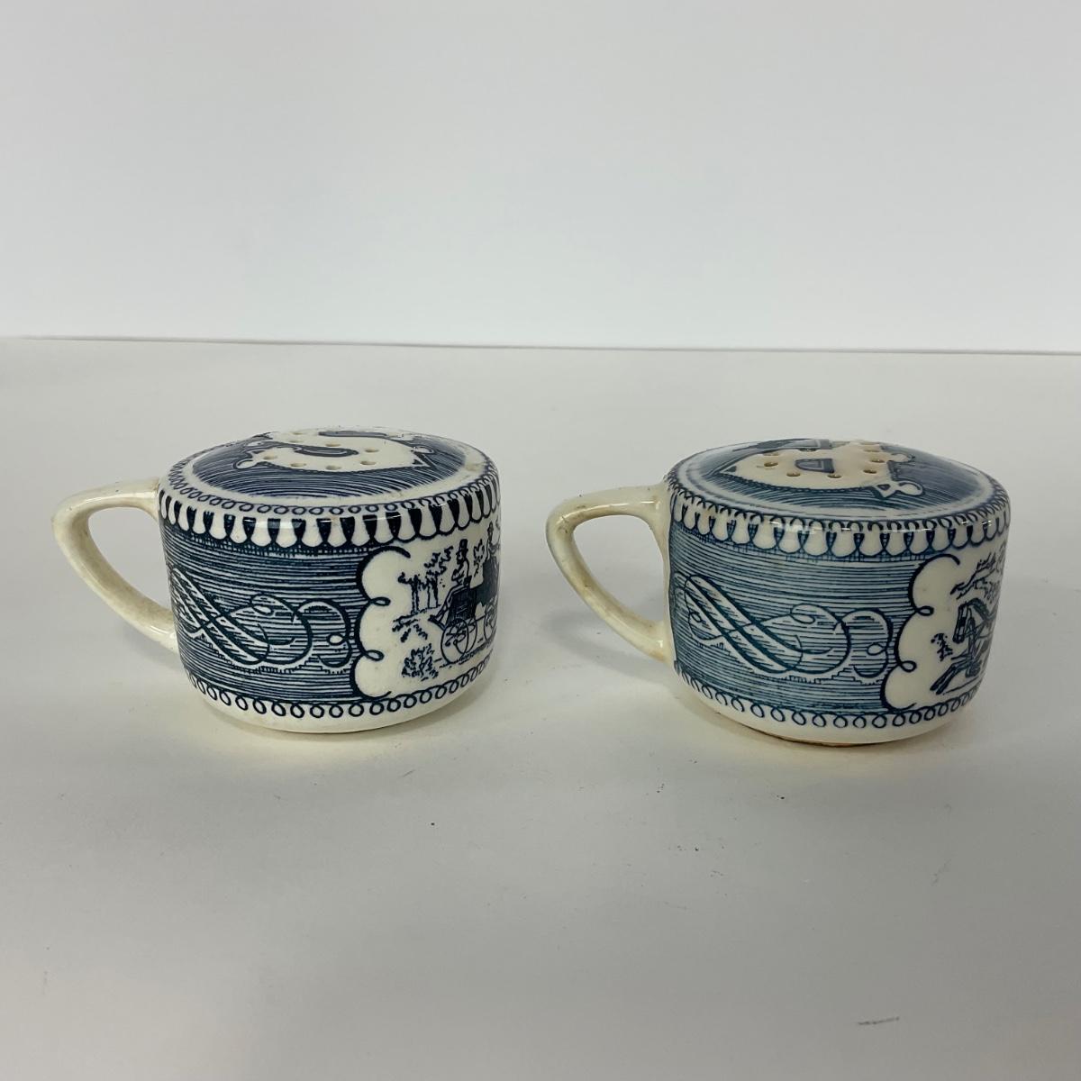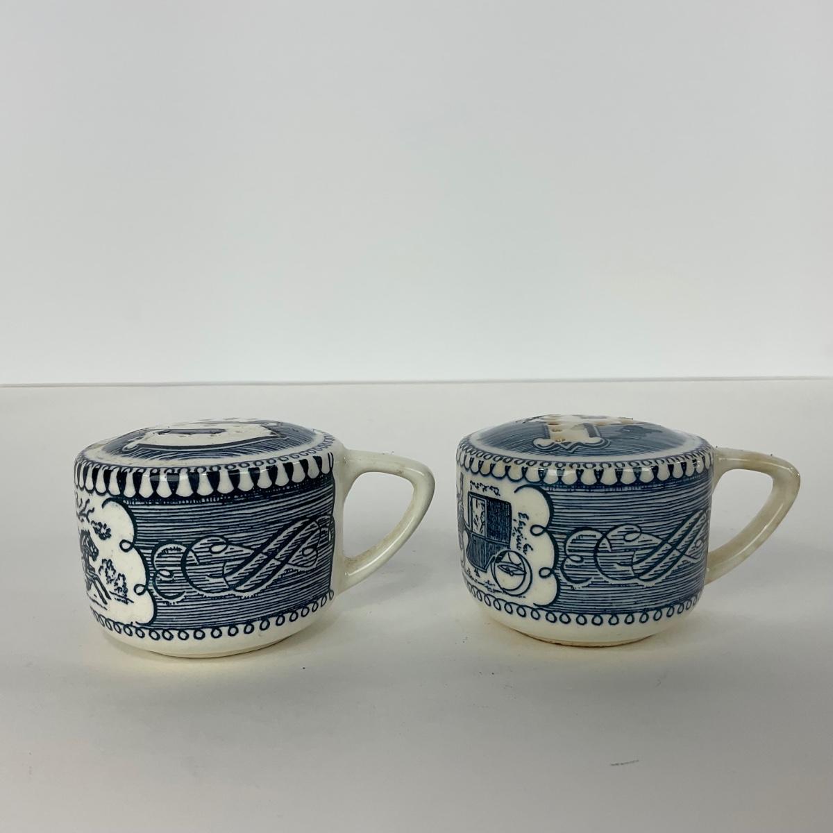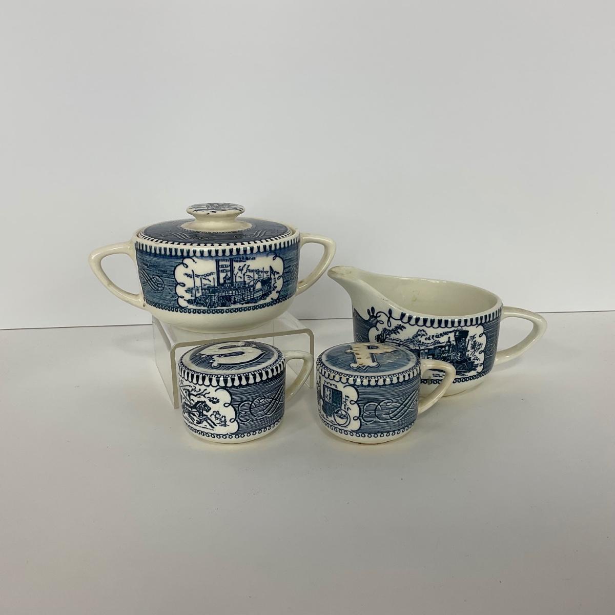 Five pieces of Currier and Ives including one covered sugar container, one creamer, and one salt & pepper shakers. Please see photos for details and condition. ::: Shipping is available on this lot. If you require shipping you must let us know at the close of the auction. We will coordinate with you after the item has been won. Shipping fees will include insurance up to or exceeding the value of all items being mailed. If you have any questions regarding this lot please contact the auctioneer either via this website, by direct email or by phone. PICK UP TIMES and other important information can be found in the TERMS and DESCRIPTION of the auction. Please take a look for pertinent information. Thanks!
