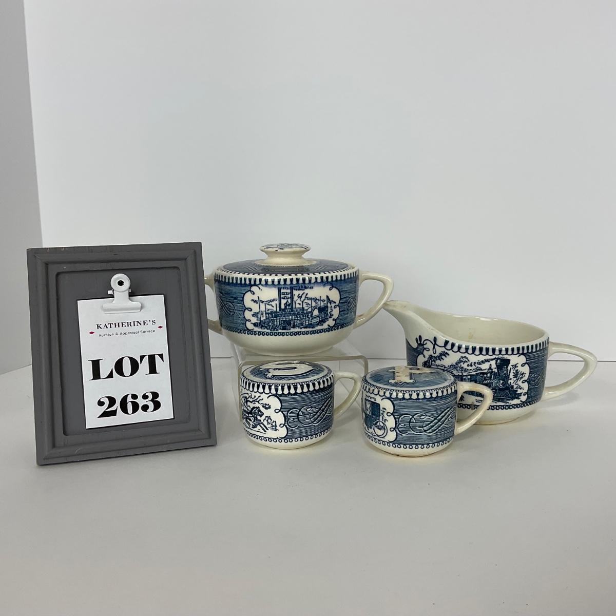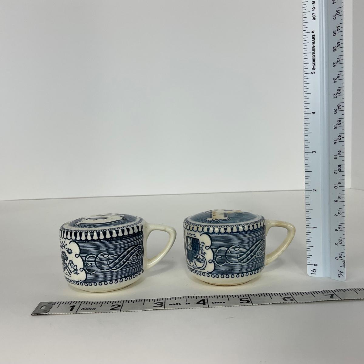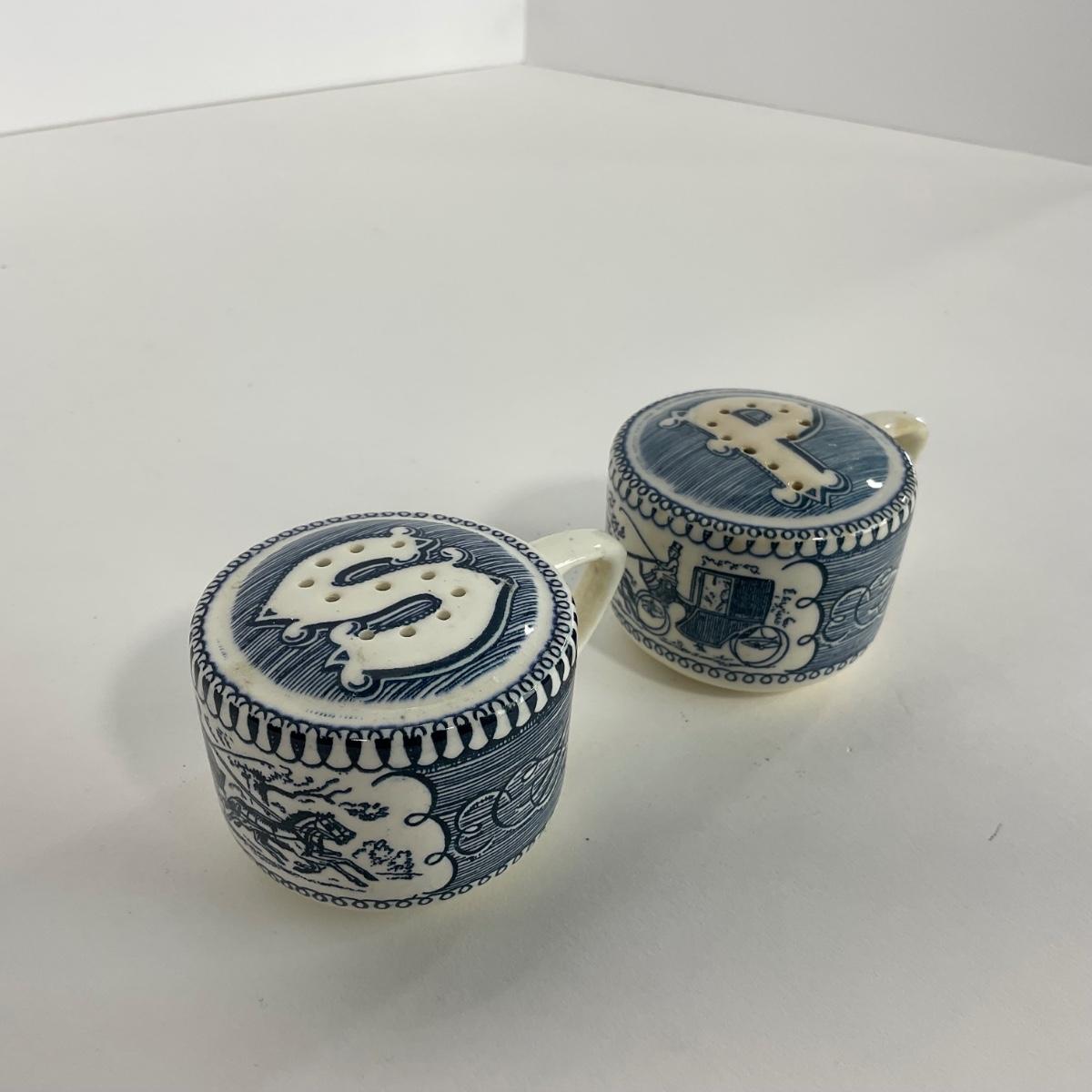 Five pieces of Currier and Ives including one covered sugar container, one creamer, and one salt & pepper shakers. Please see photos for details and condition. ::: Shipping is available on this lot. If you require shipping you must let us know at the close of the auction. We will coordinate with you after the item has been won. Shipping fees will include insurance up to or exceeding the value of all items being mailed. If you have any questions regarding this lot please contact the auctioneer either via this website, by direct email or by phone. PICK UP TIMES and other important information can be found in the TERMS and DESCRIPTION of the auction. Please take a look for pertinent information. Thanks!