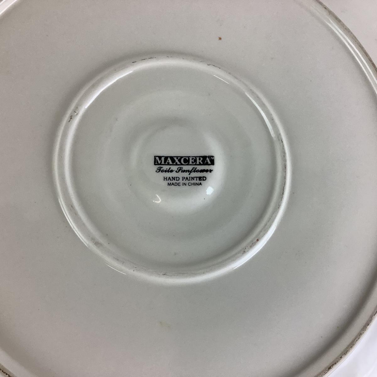 Sunflower plate has center dip bowl attached and measures 14" diameter