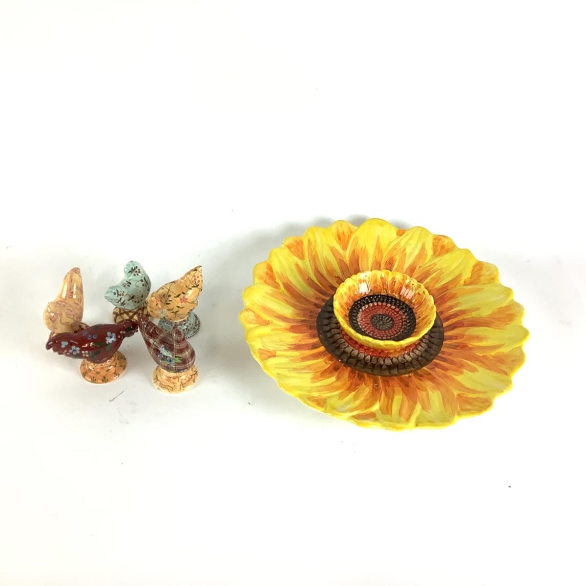 263 Large Sunflower Pottery Serving Bowl/Plate with Tracy Porter Decorative Chicks
