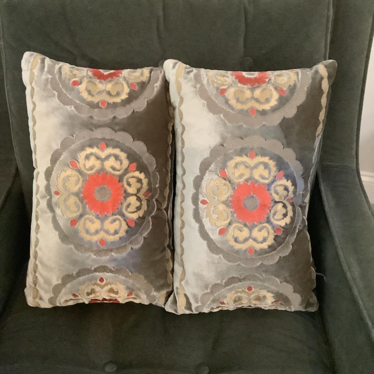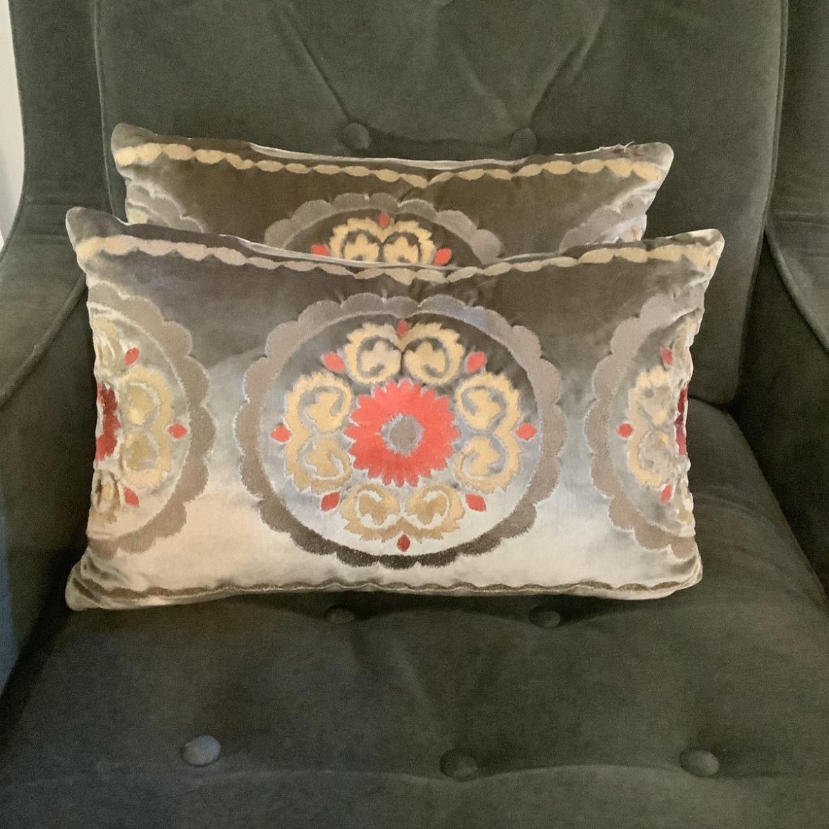 263 Pair of Velvet Lumbar Rectangle Pillow with Medallion Design