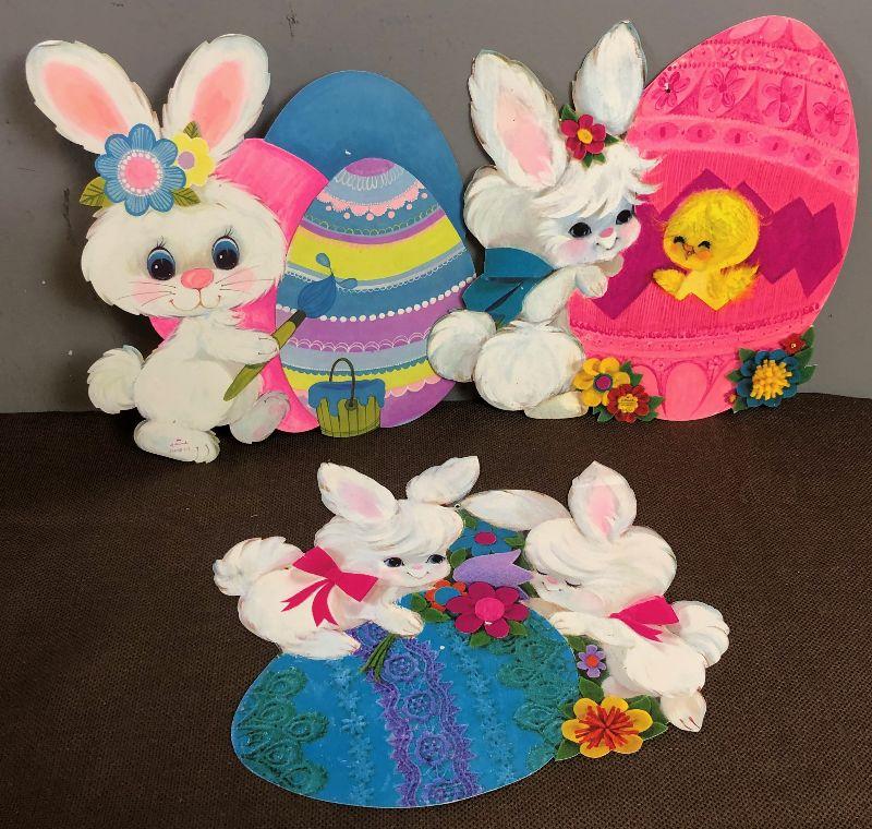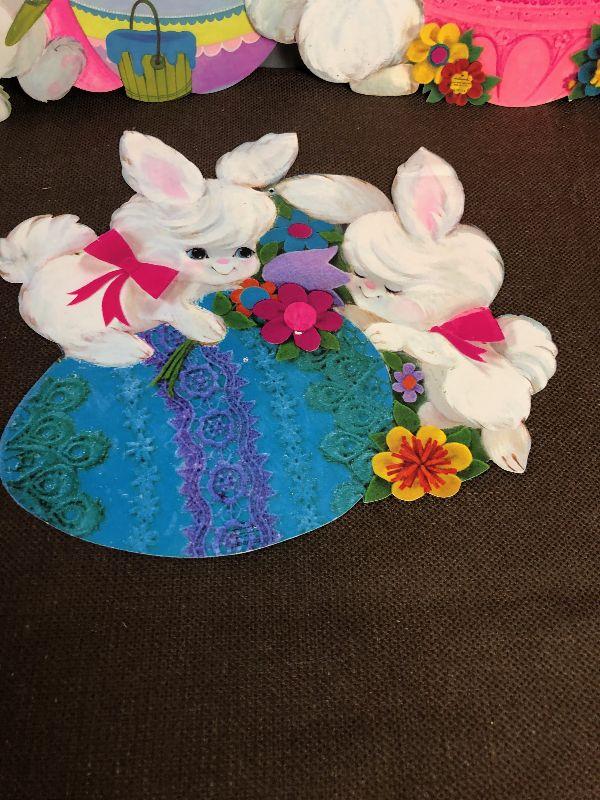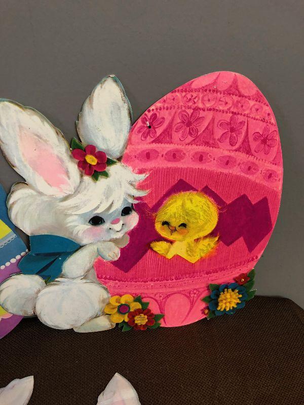 1960's Easter Cardboard Décor 10" 3 of them. Rabbits with strangely human faces