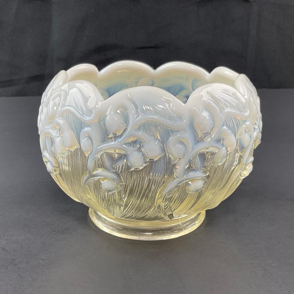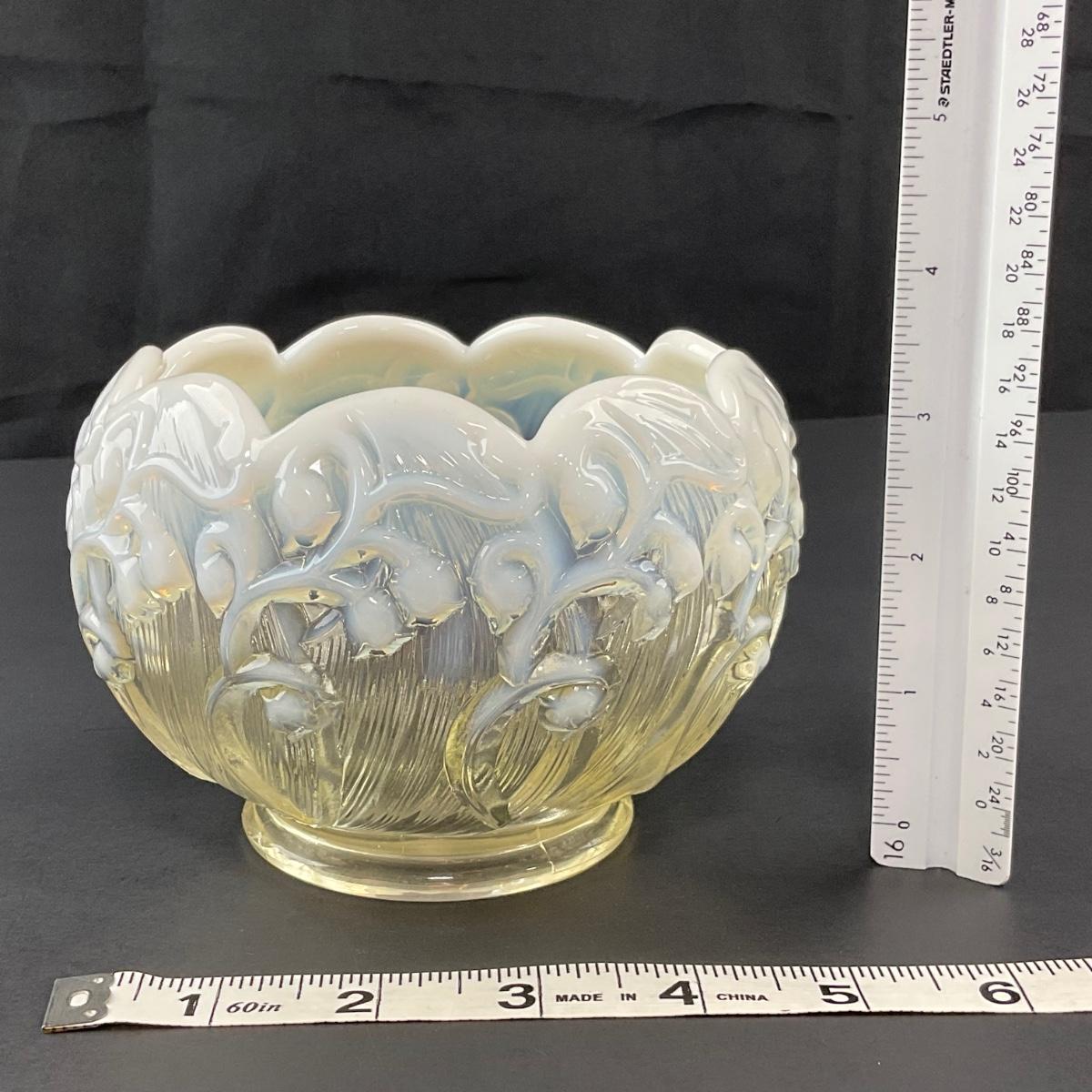 -264- FENTON | Opalescent White Lily Of The Valley Bowl | Marked