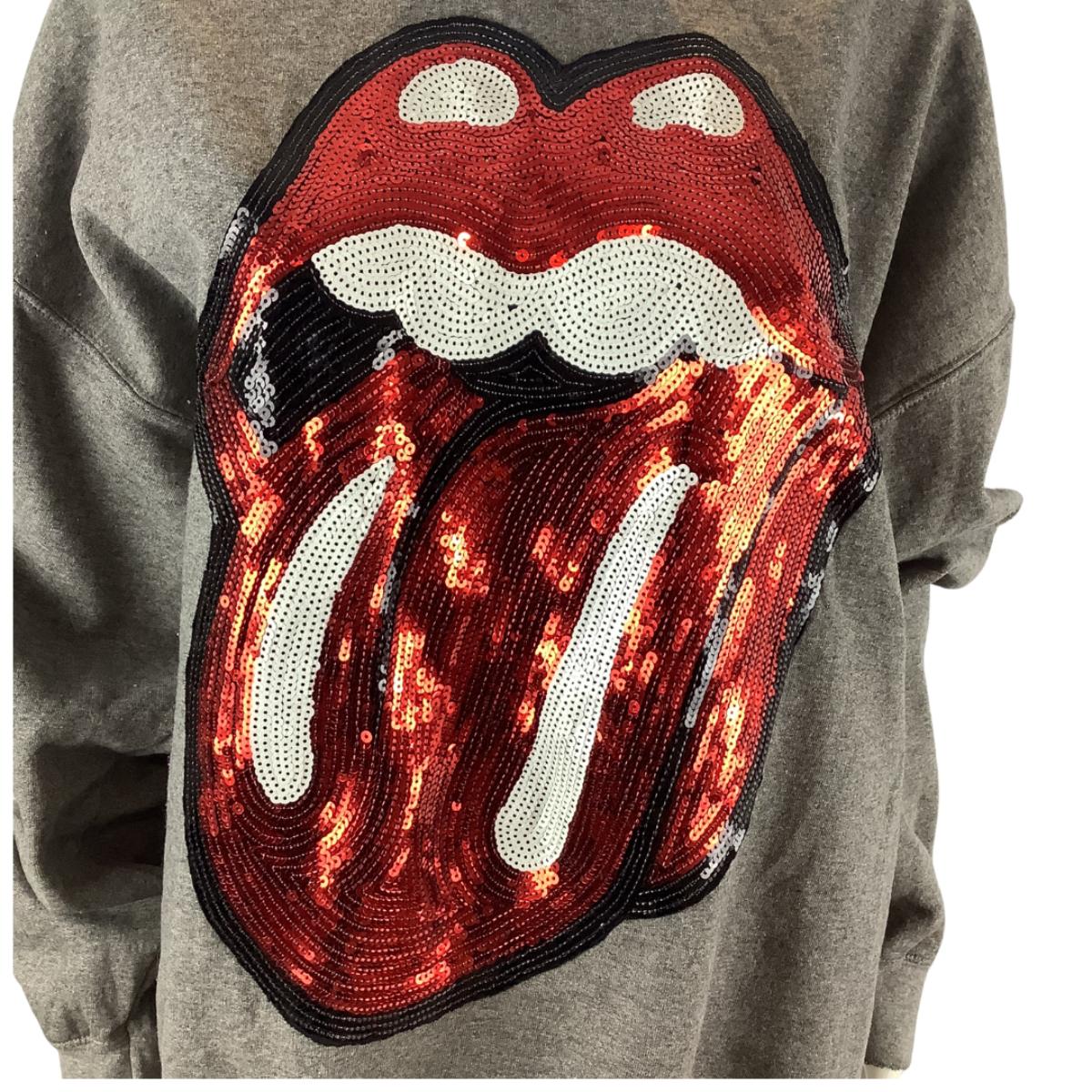 Features the iconic Rolling Stones sequin tongue logo.