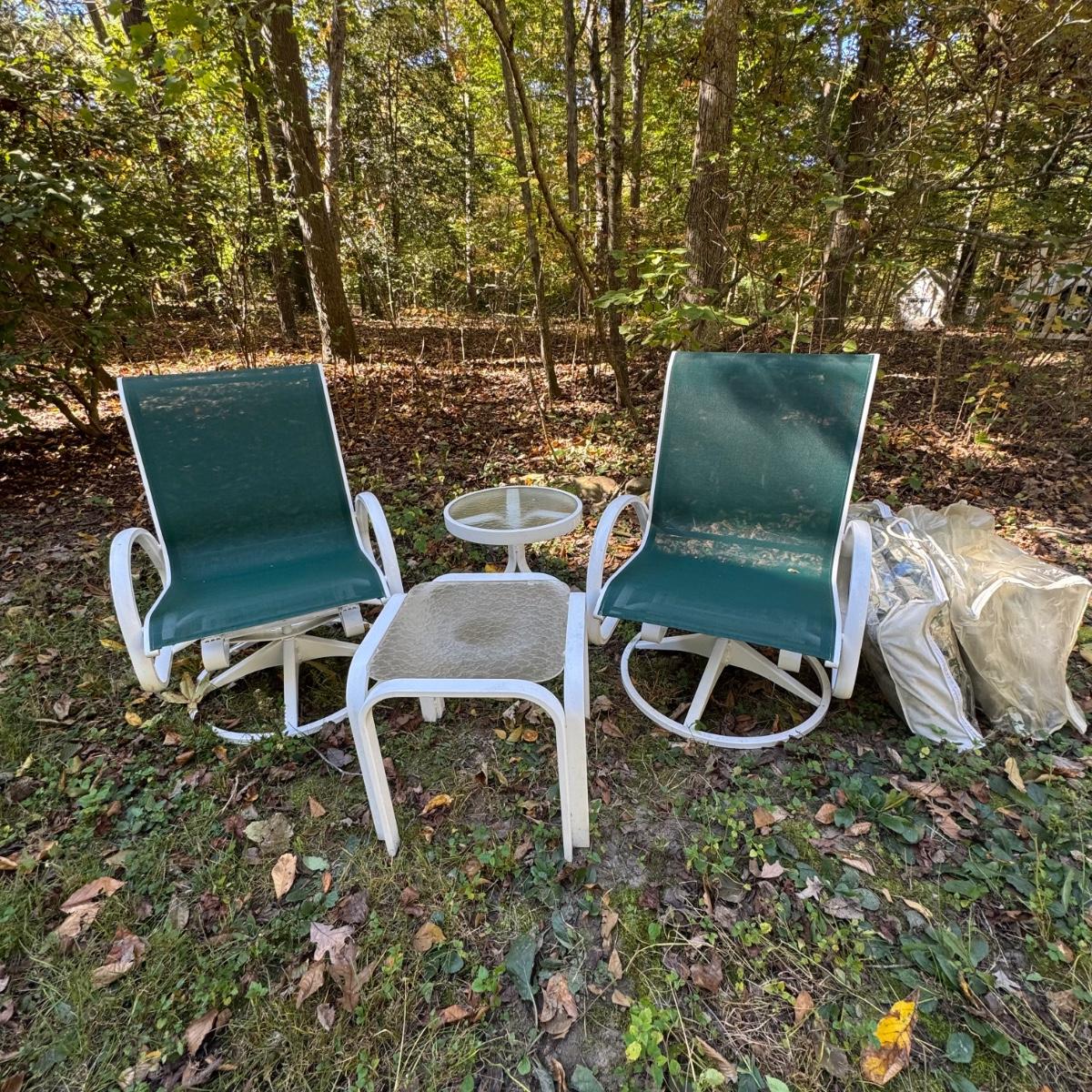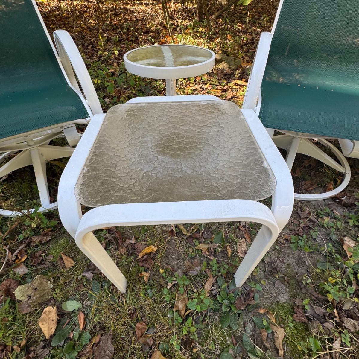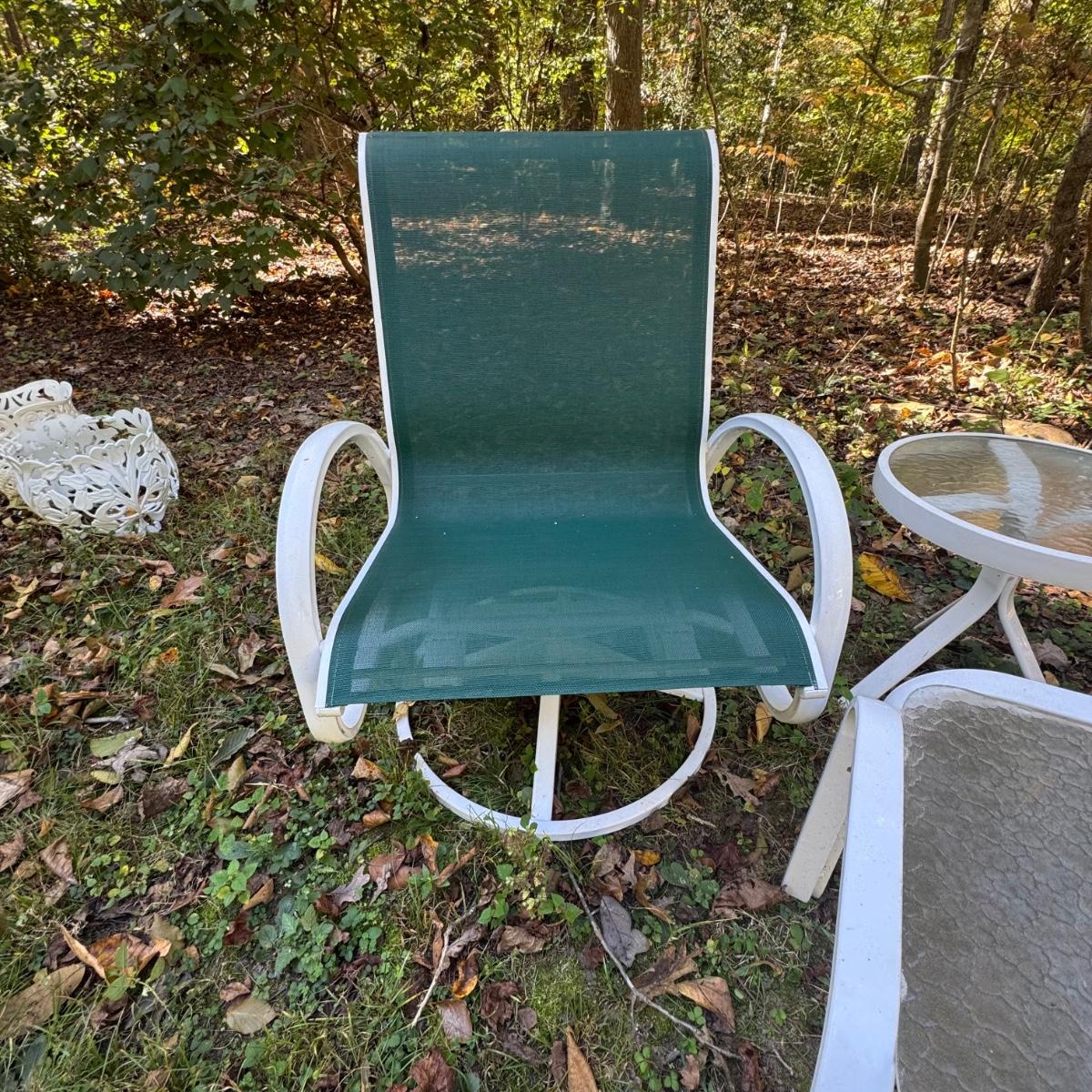 Pair of Aluminum Green and White Swivel Chairs. Overall good condition.