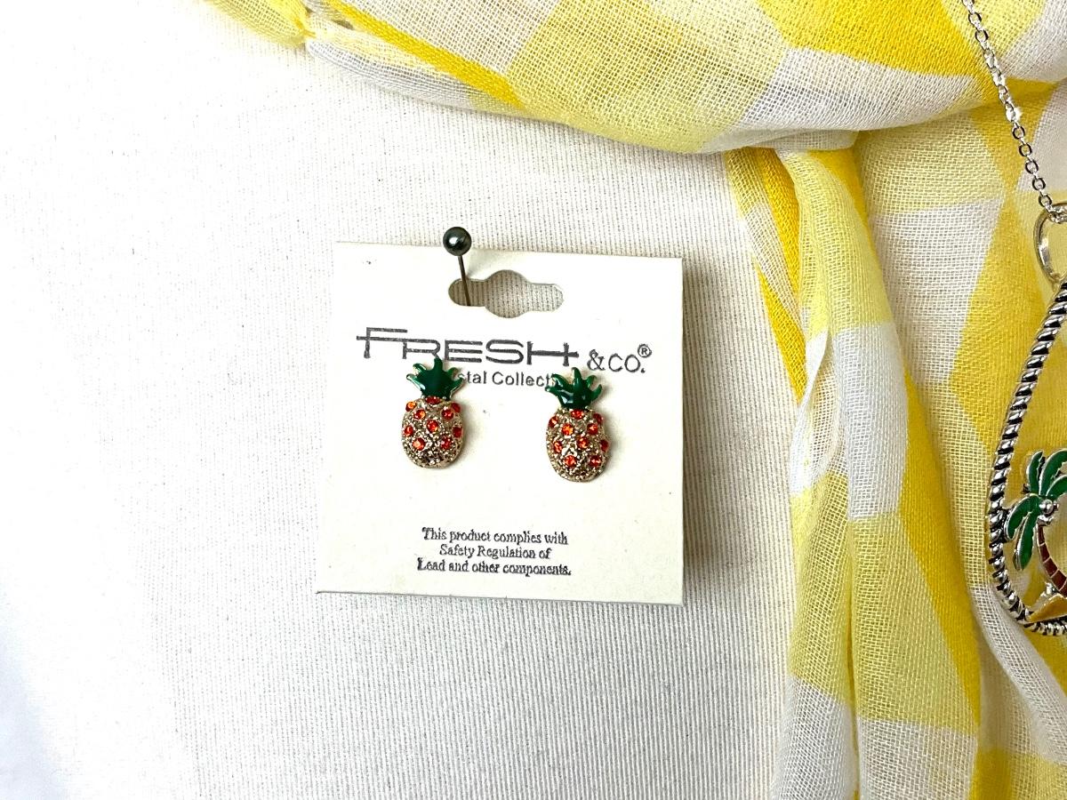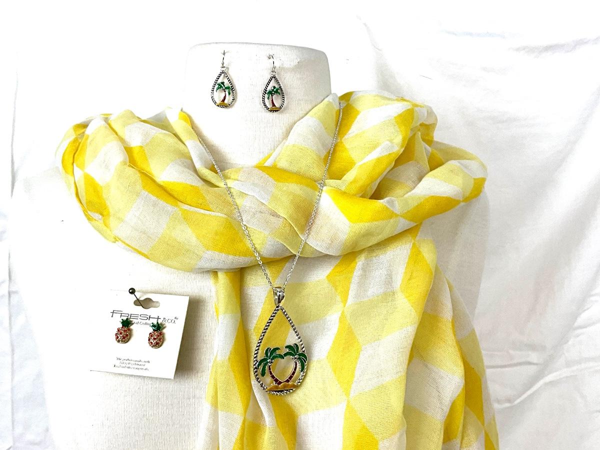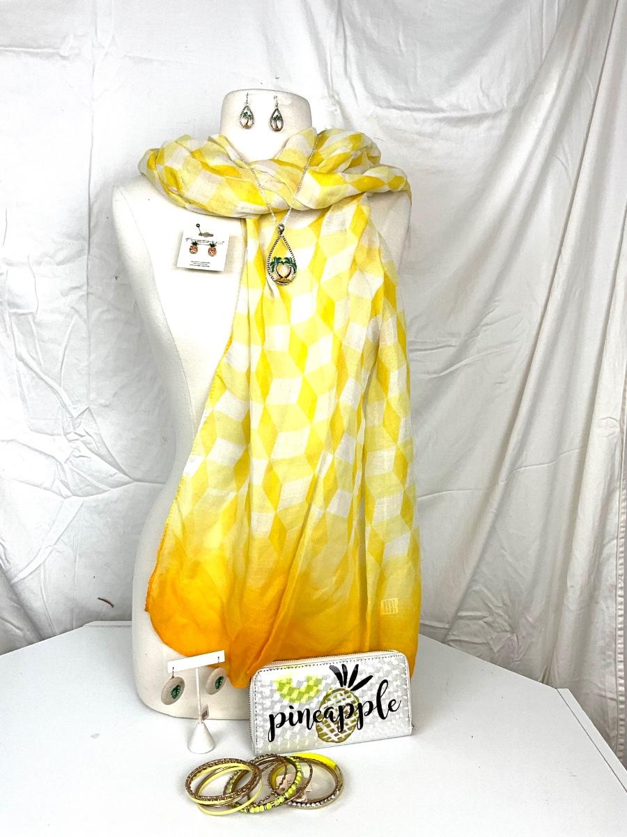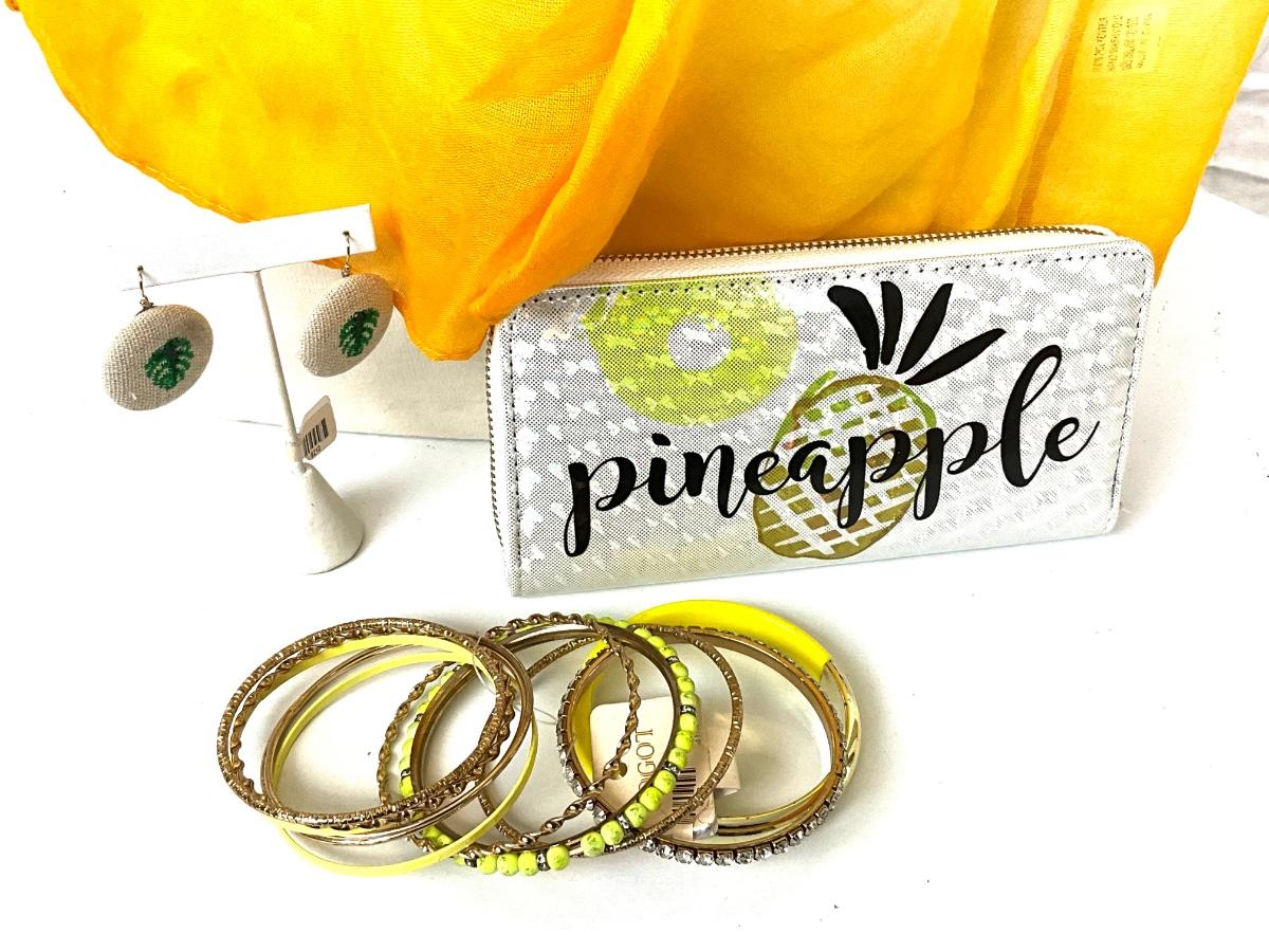 264 Pineapple Crush Lot, Clutch, Bangles, Earrings, Palm Earrings, Shawl, Palm Tree Necklace Set