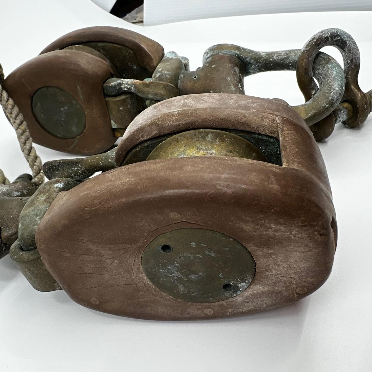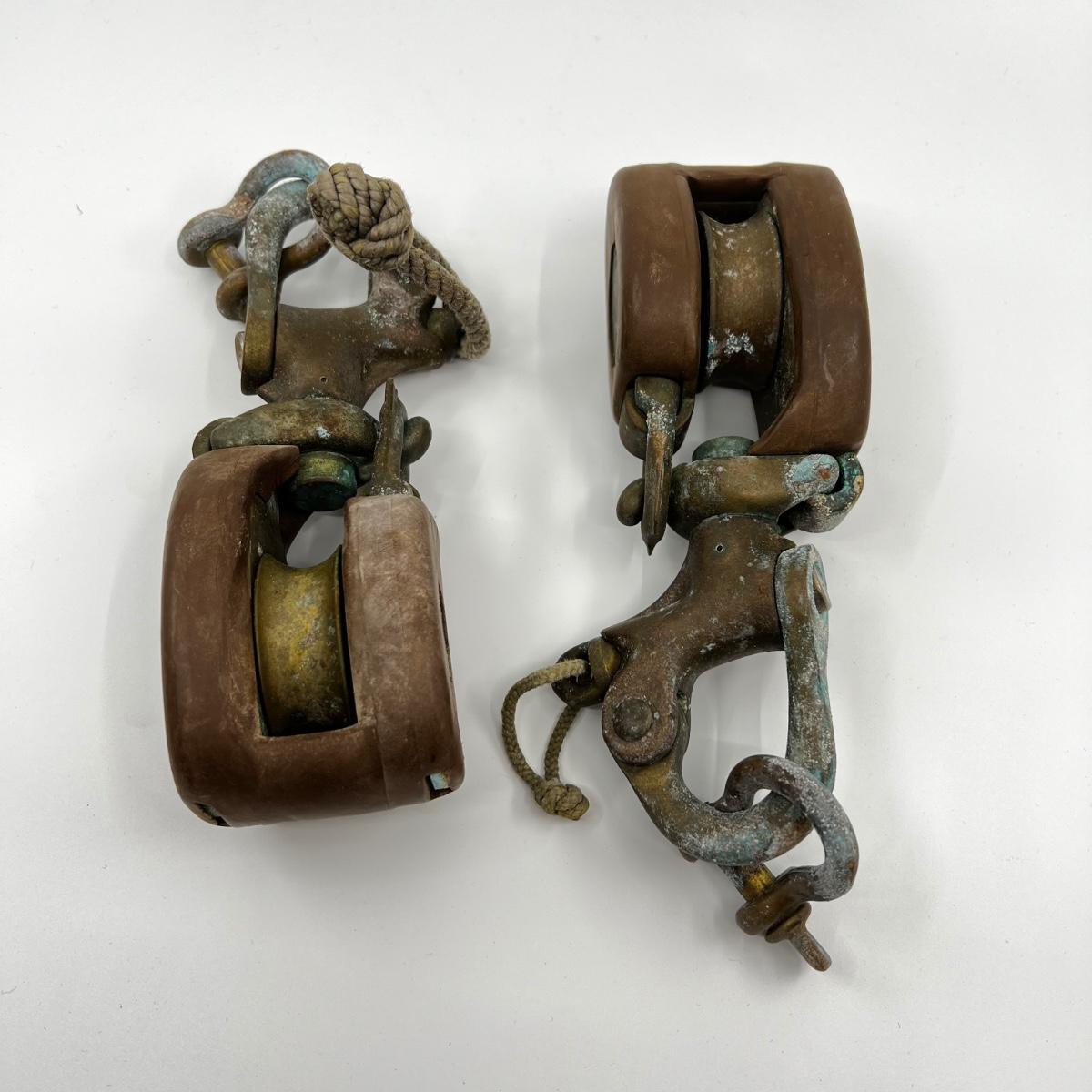 N264 Vintage Pair of Brass Snatch Blocks