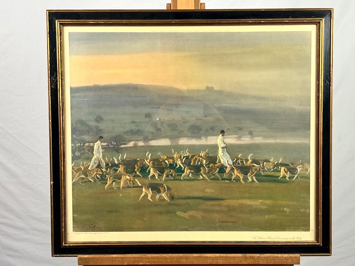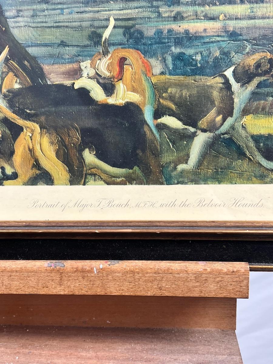 Portrait of Major T. Bouche with Belvoir hounds and Belvoir hounds exercising in the park prints. Published 1956