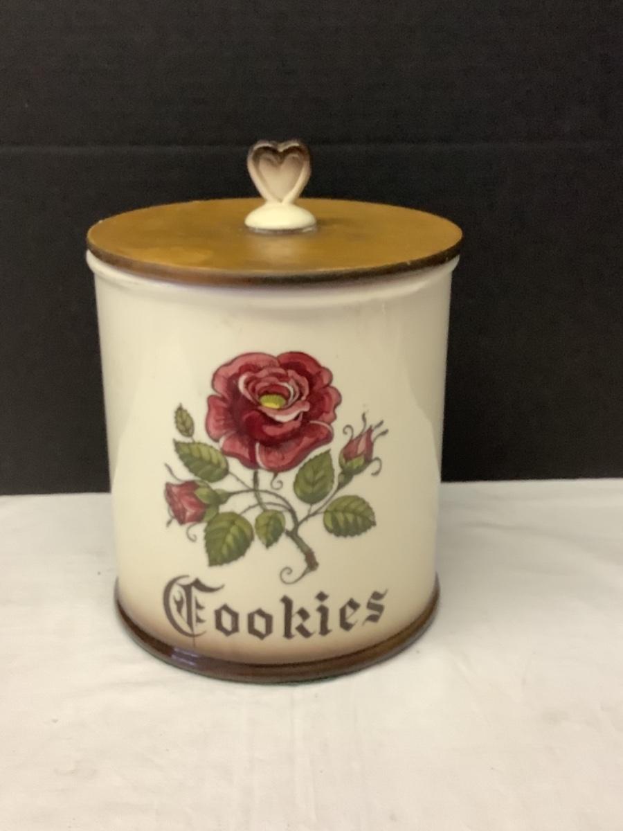 265 Antique Cookie Jar with Wooden Lid & Oinking Pig Inside